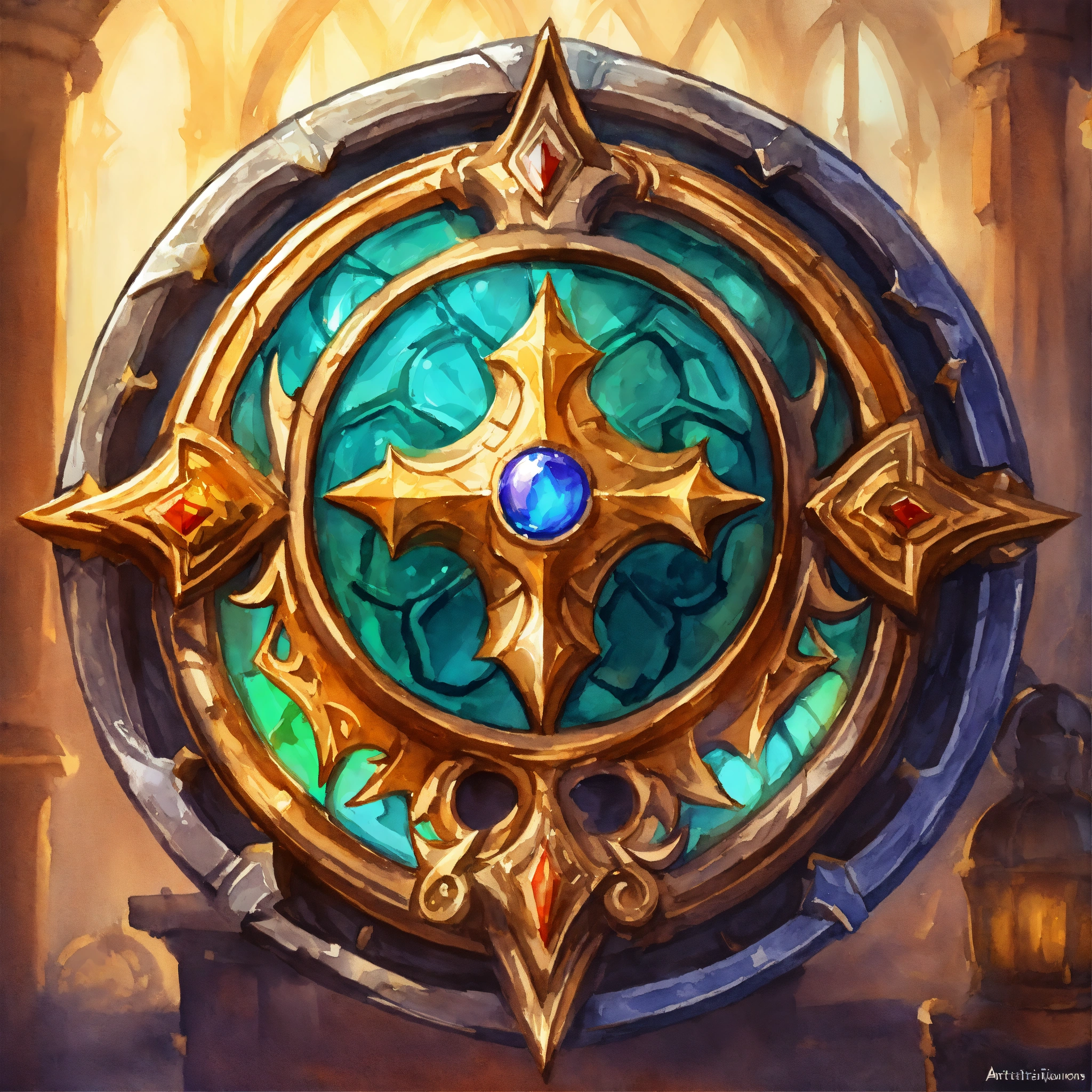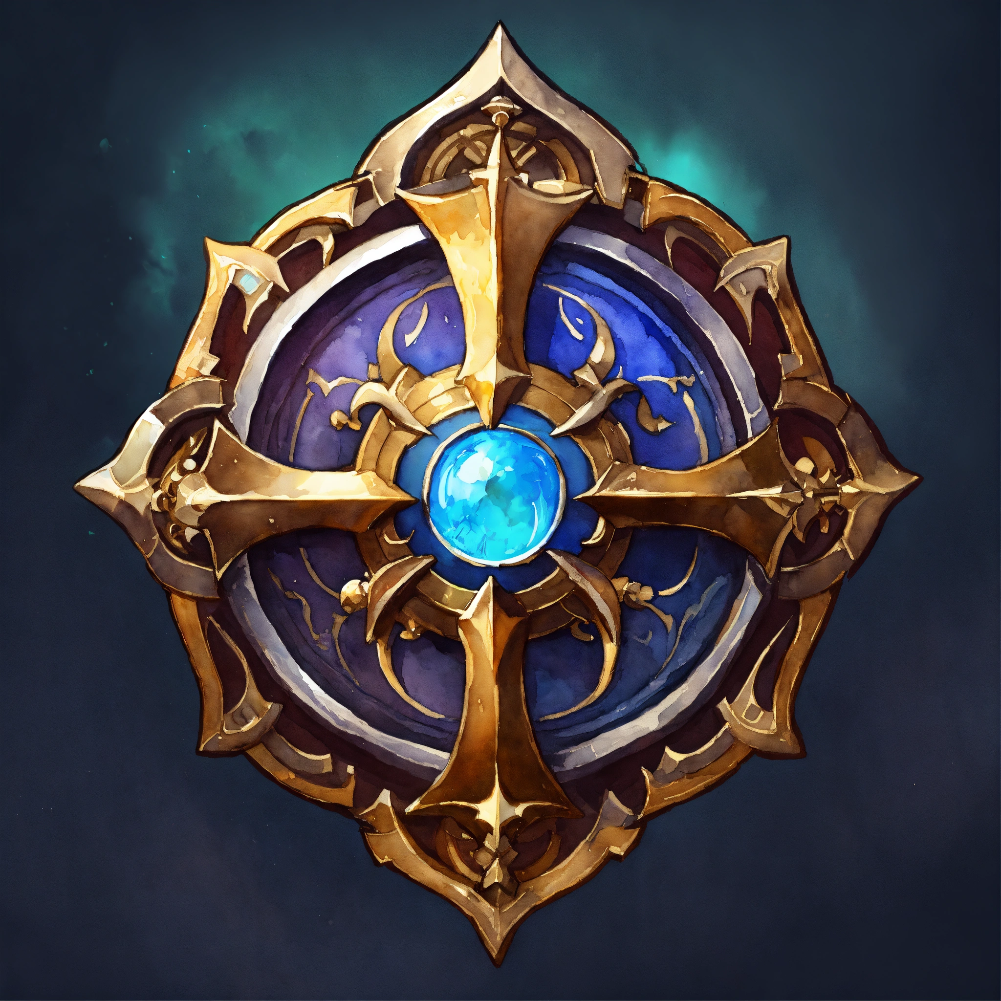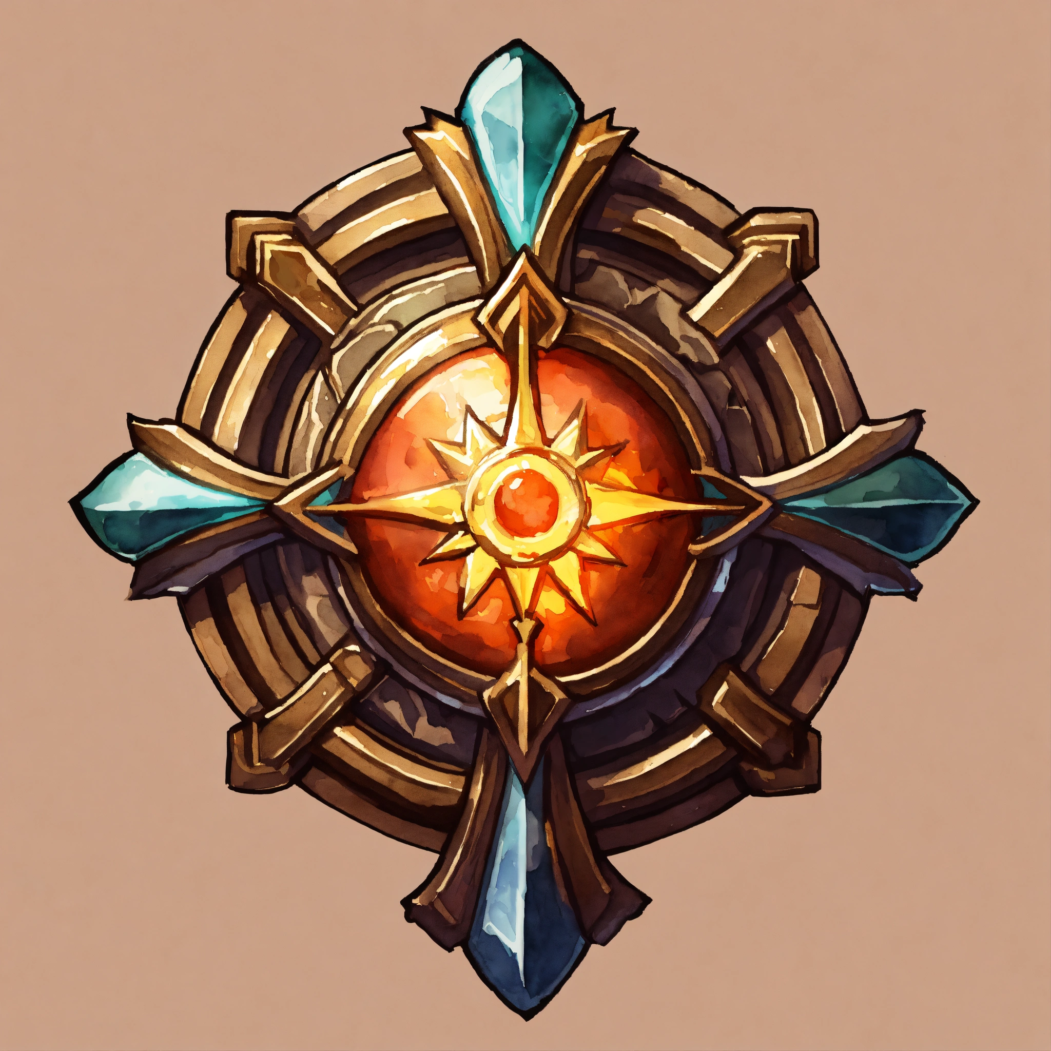 Badge of the inquisition, item image, game icon, fantasy style, digital drawing, artstation, watercolor illustration