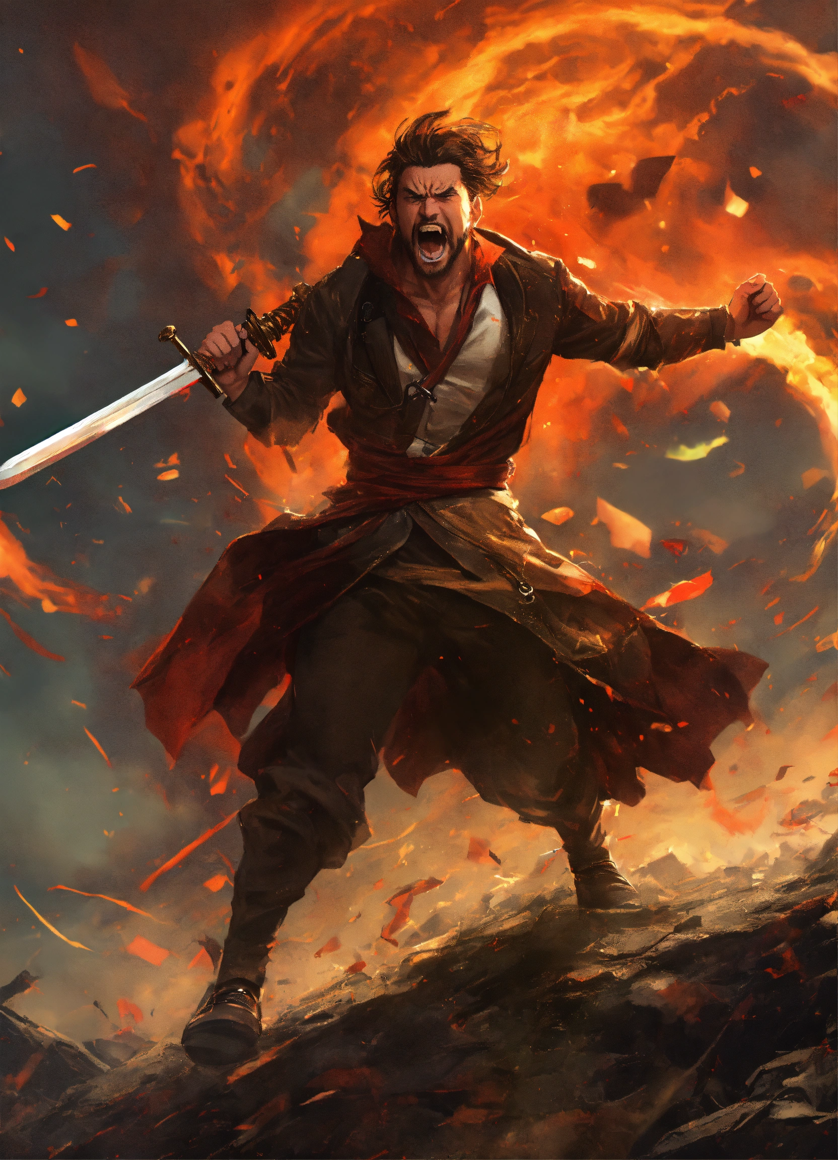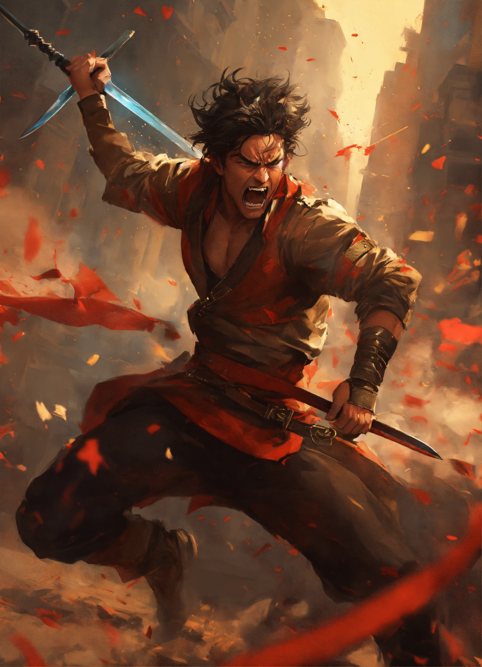 swinging his sword around