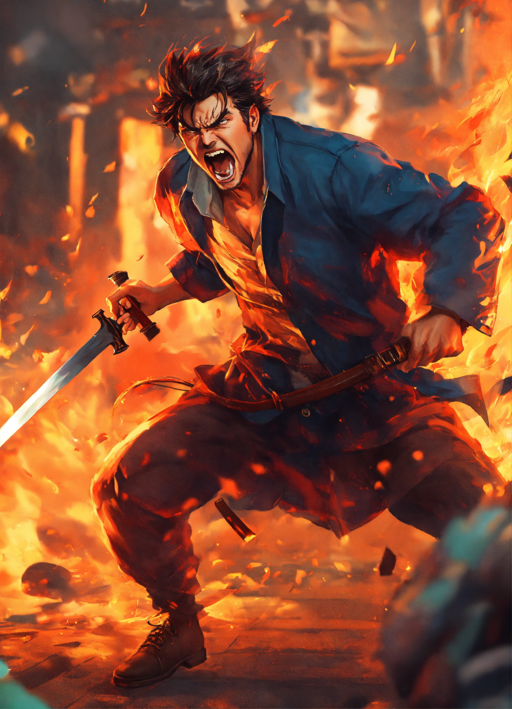 A man going crazy with rage