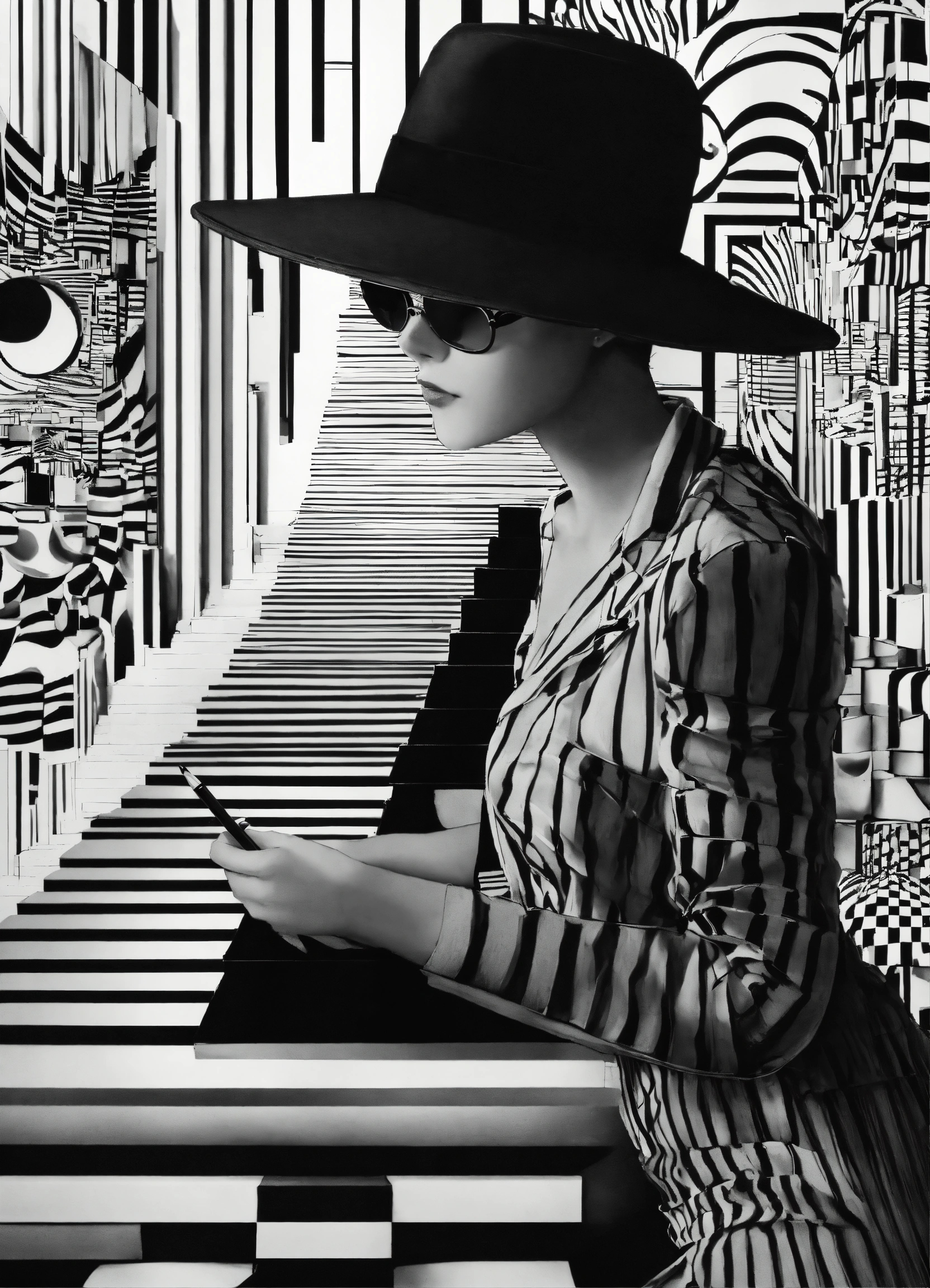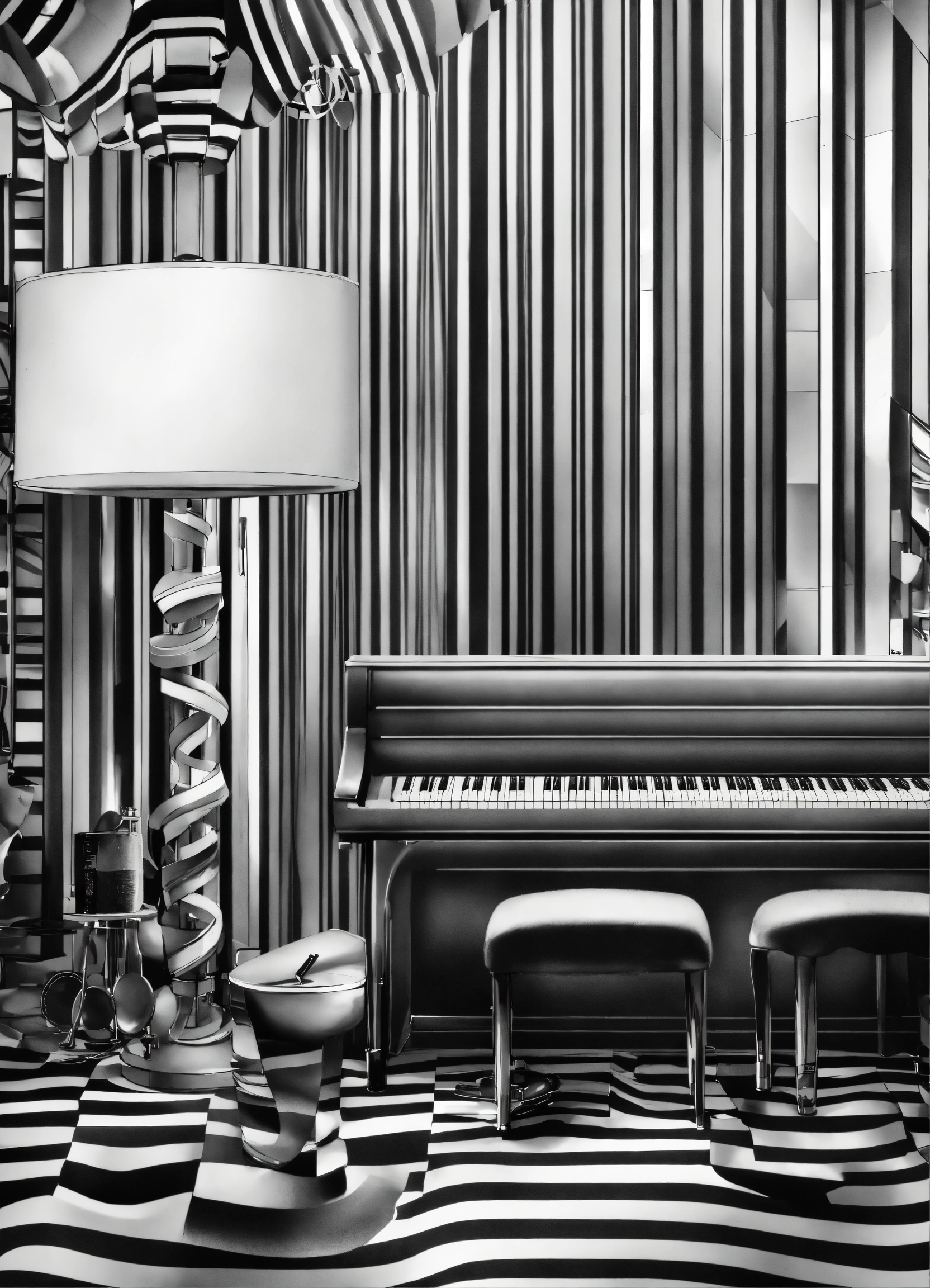 Create a optical illusion backgroung for a jazz elemts in a black and white color palette and a pencil sketch