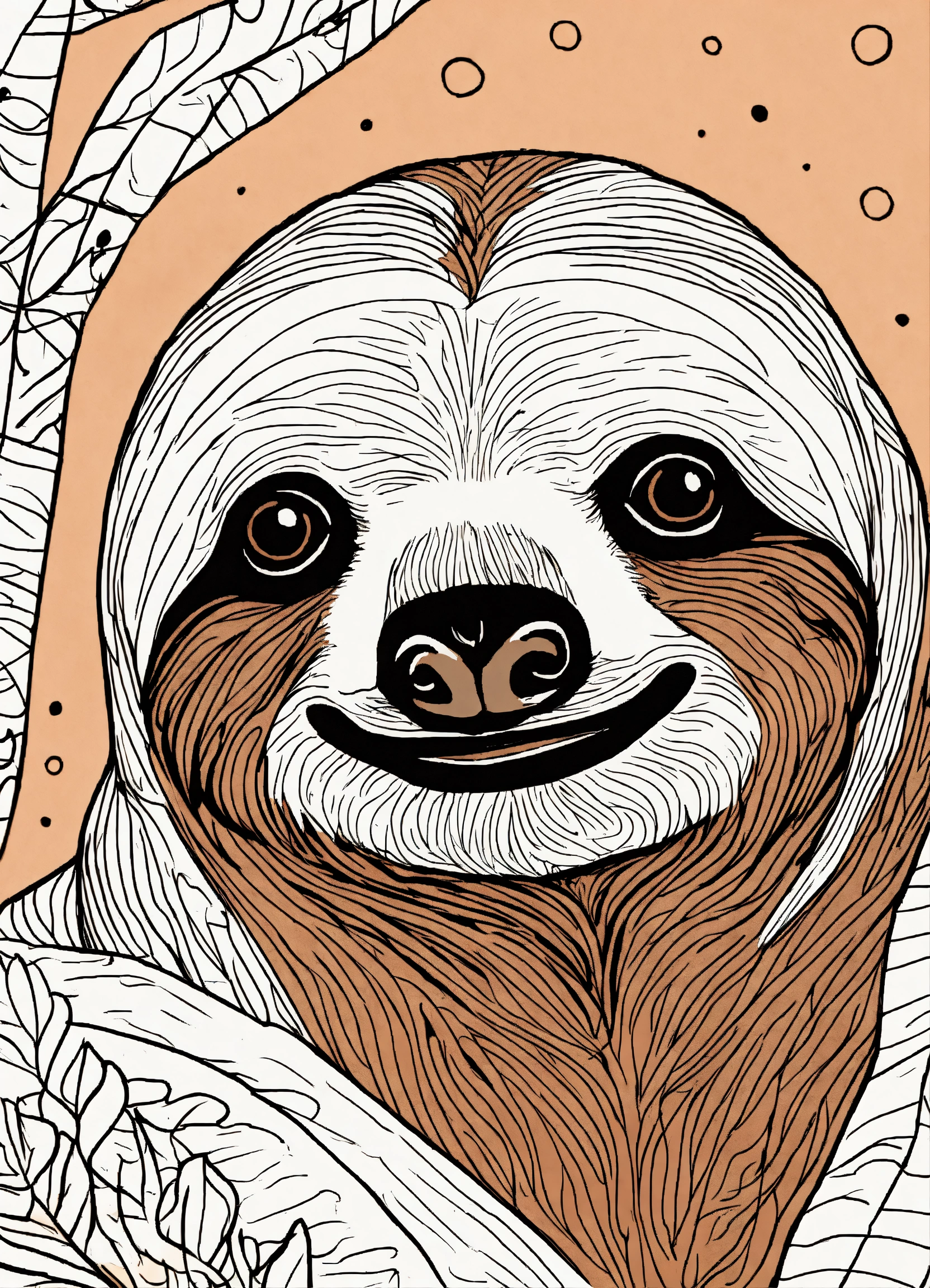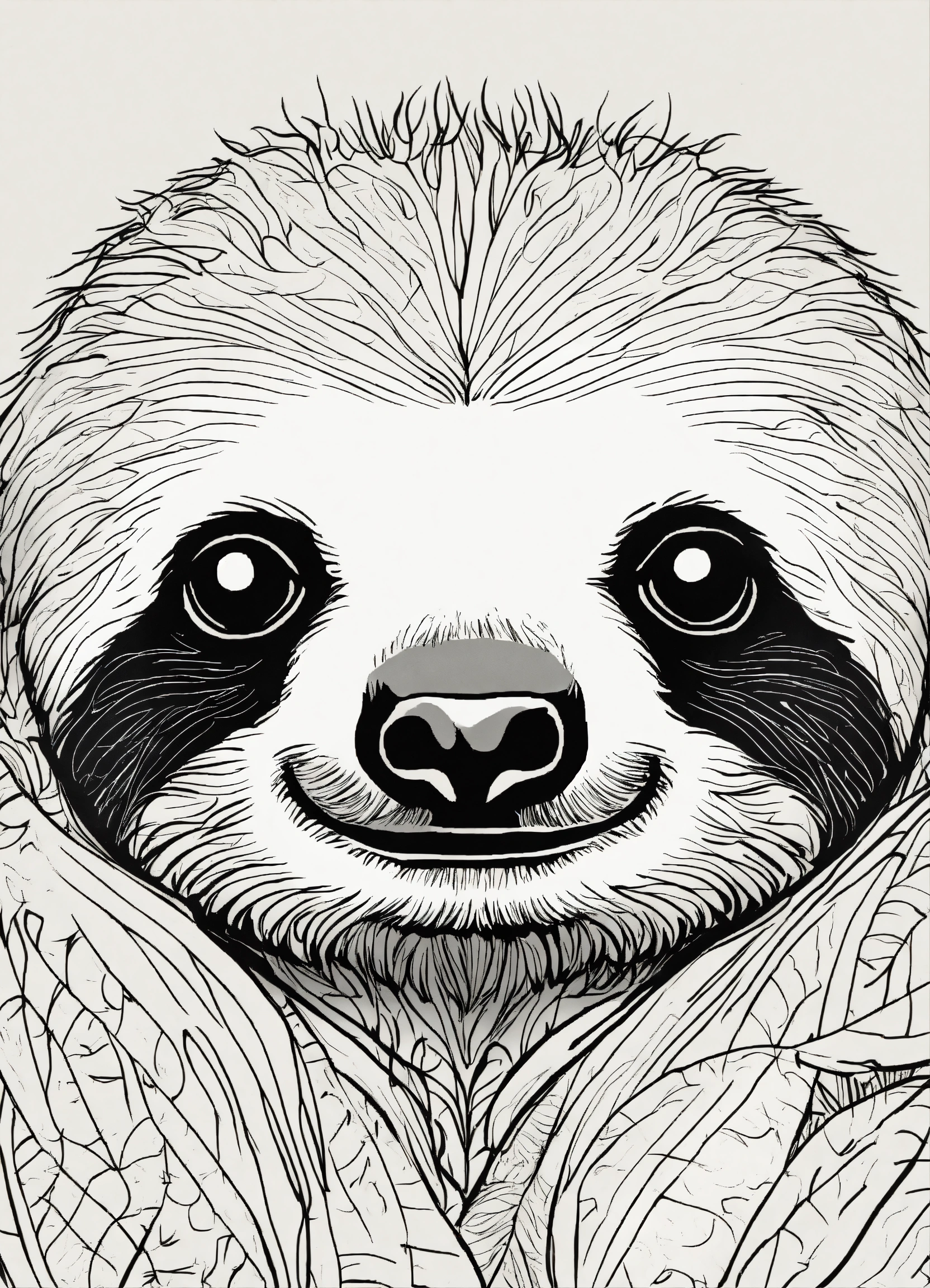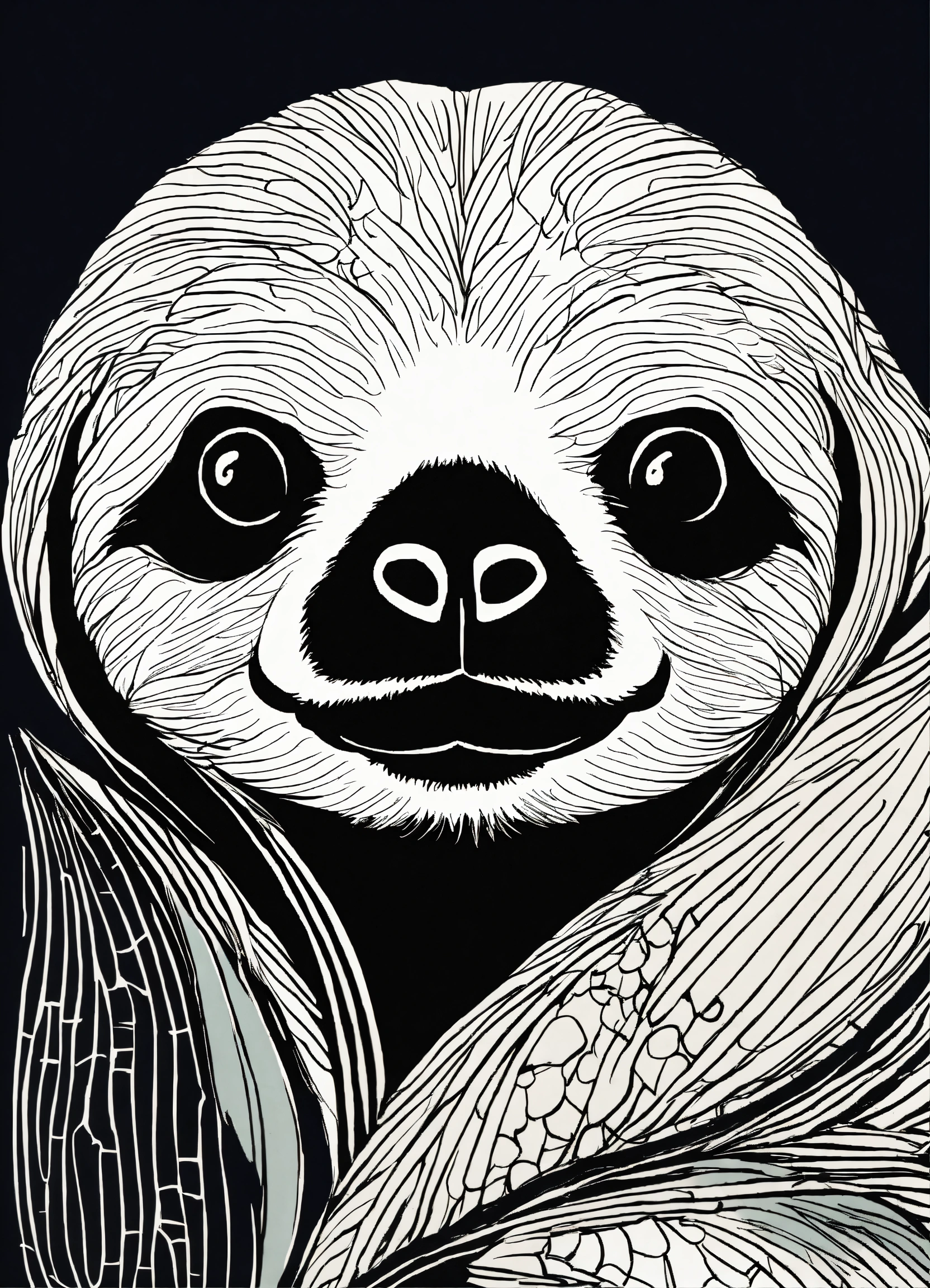 Beautiful detailed sloth portrait, one line drawing, bold sketch inspired by bauhaus and henri matisse. si scott