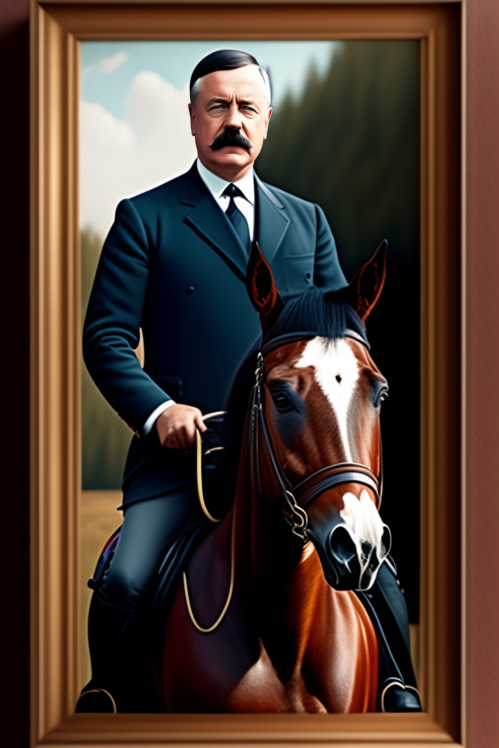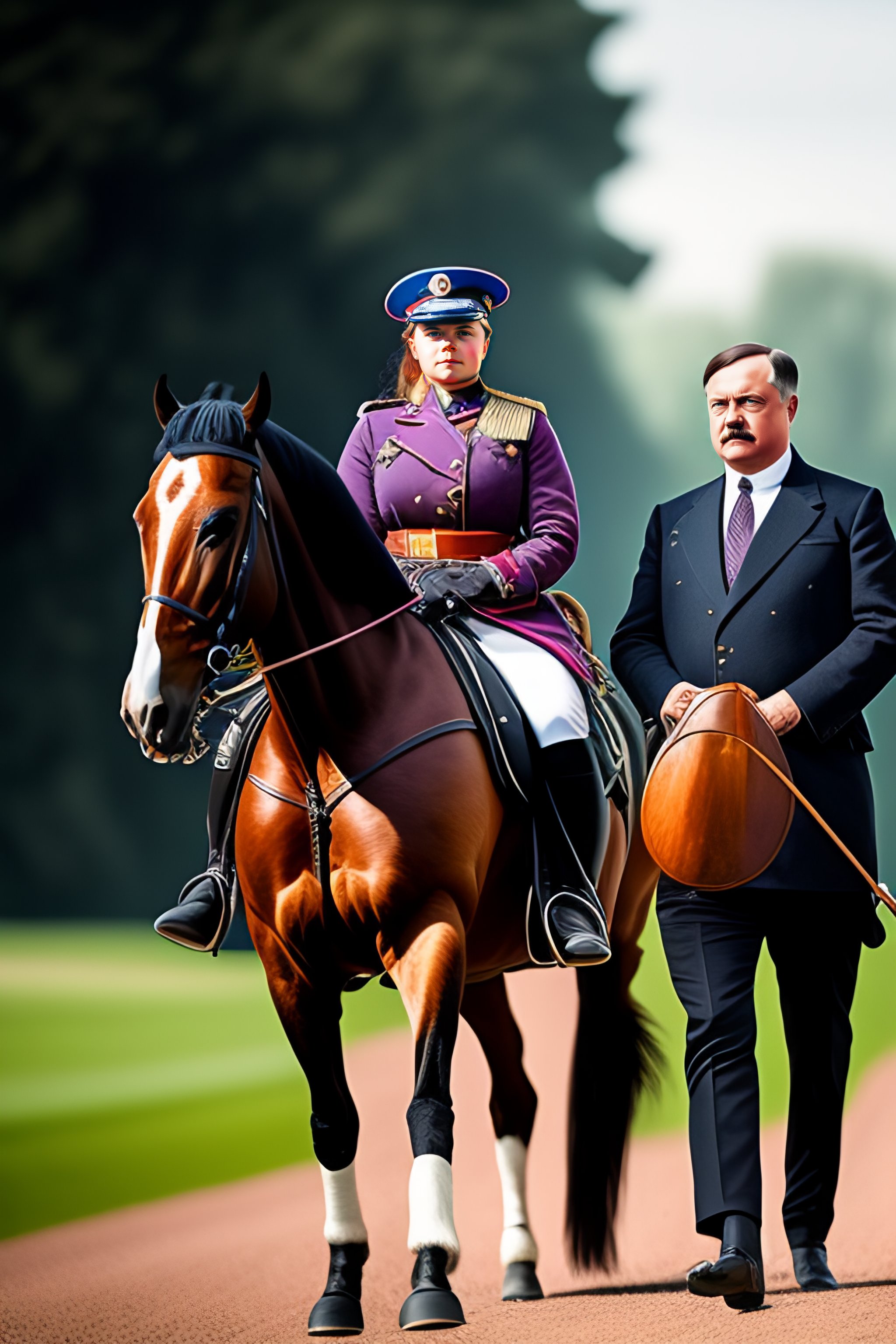 Portrait of greta thunberg and adolf hitler on a horse