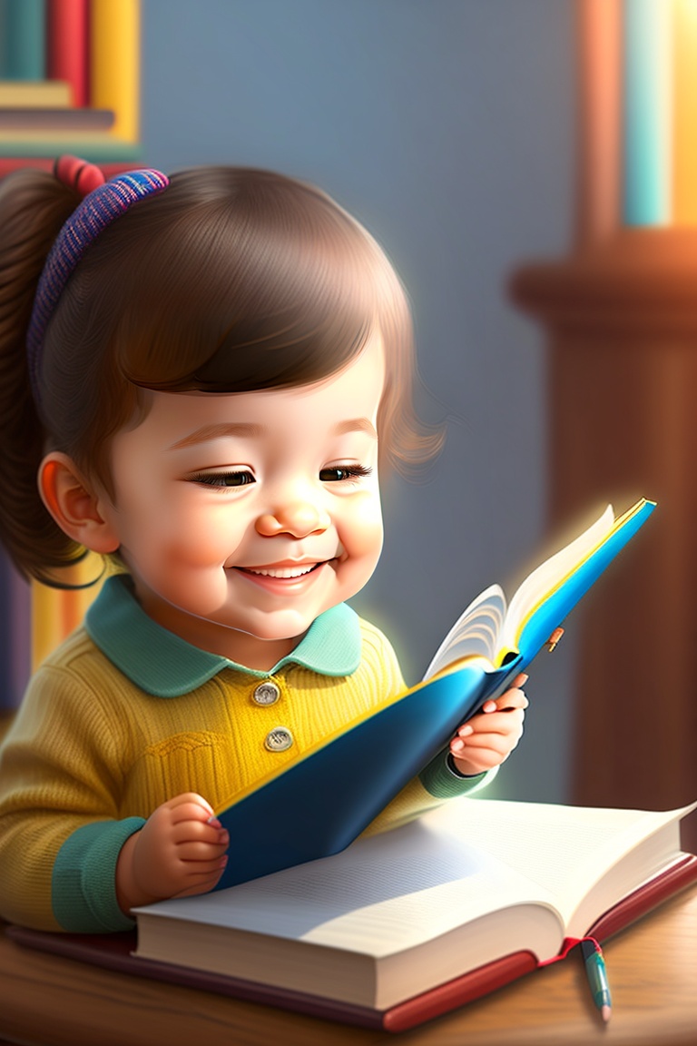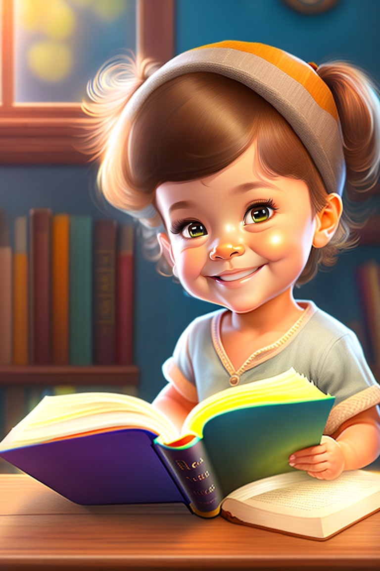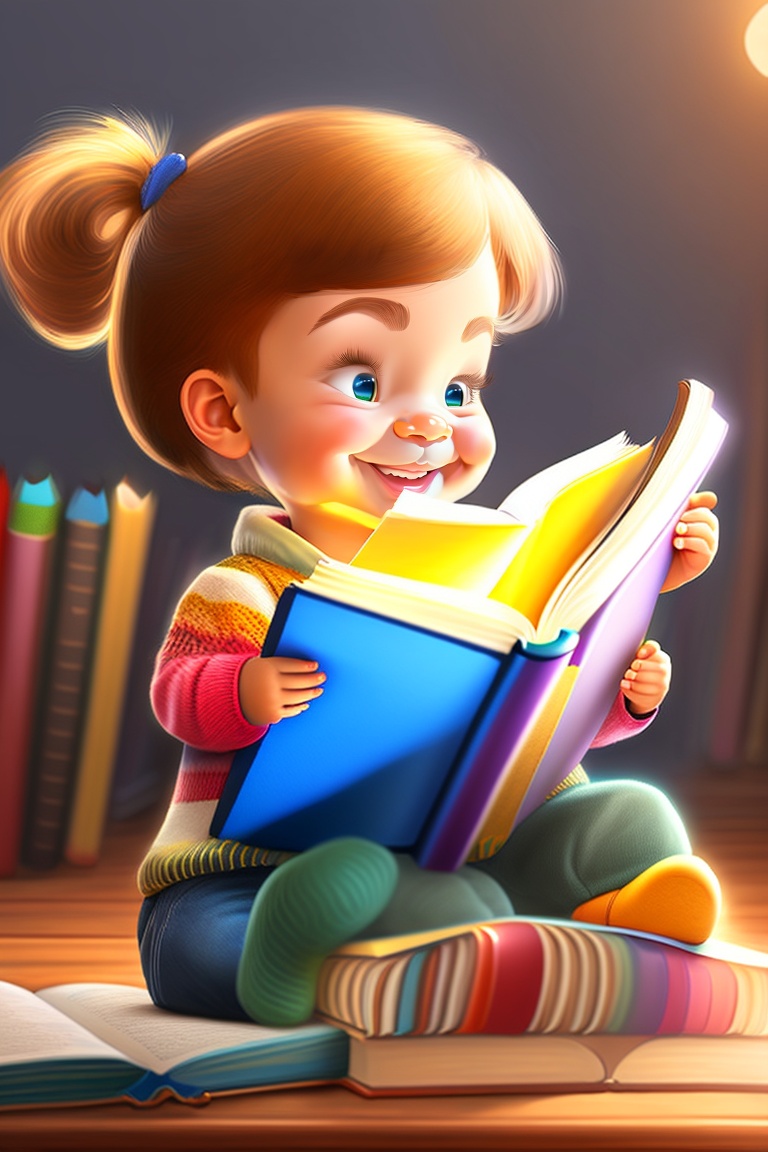 An image of a cheerful child reading a book, warm lighting, detailed, realistic, high definition, trending on artstation, in the style of maurice sendak, eric carle, dr. seuss.