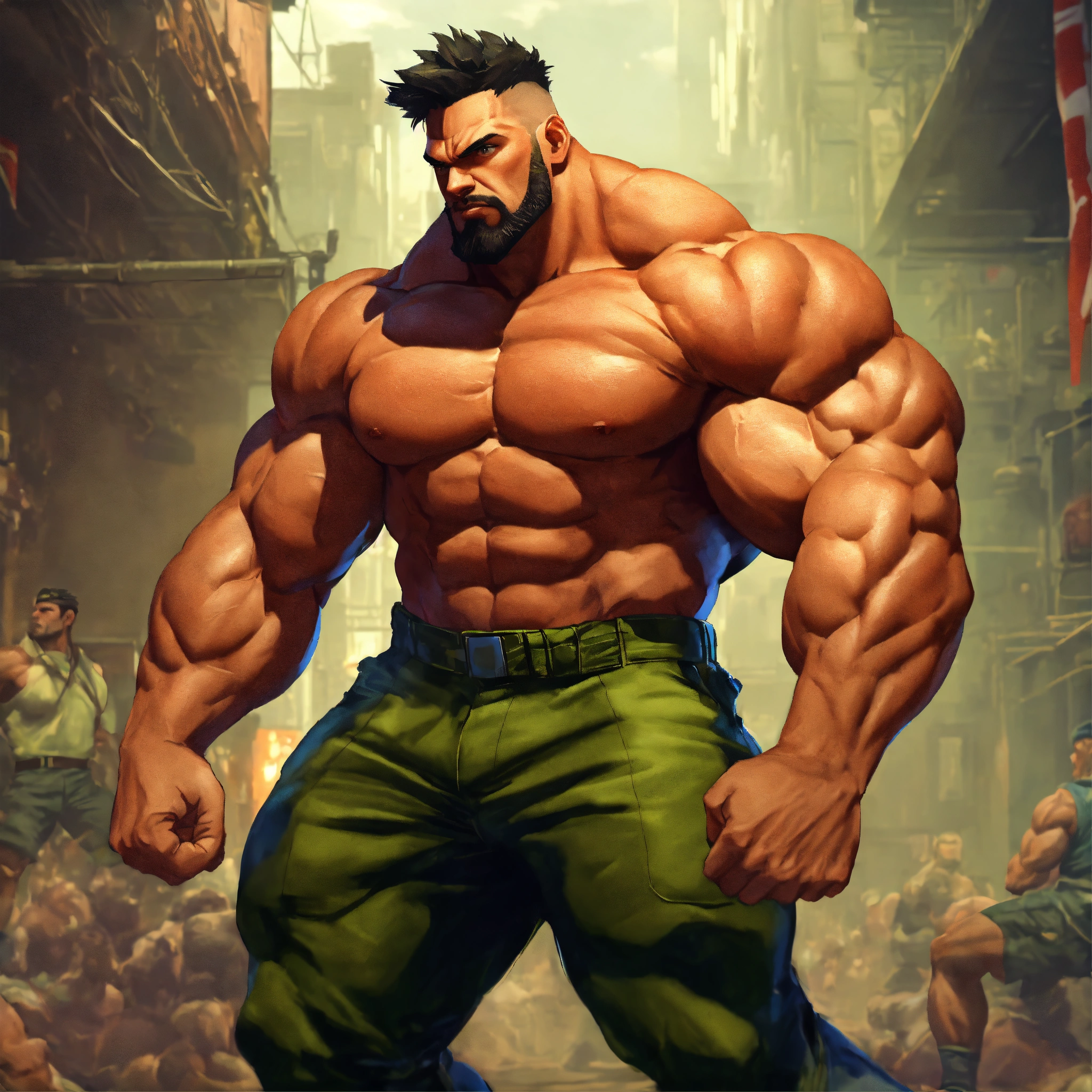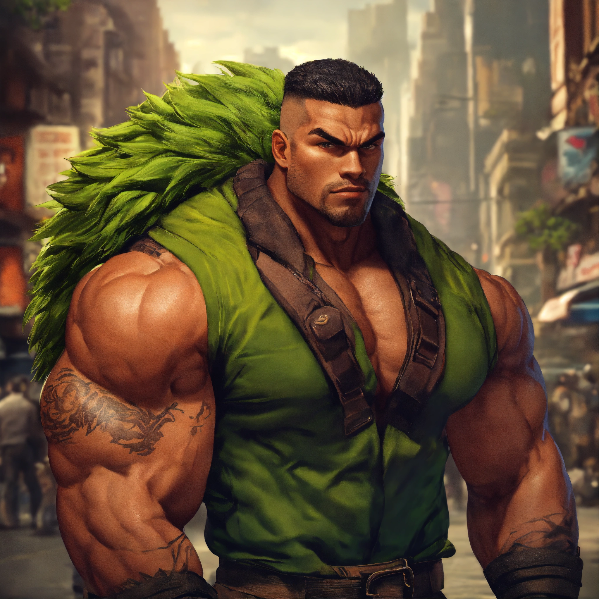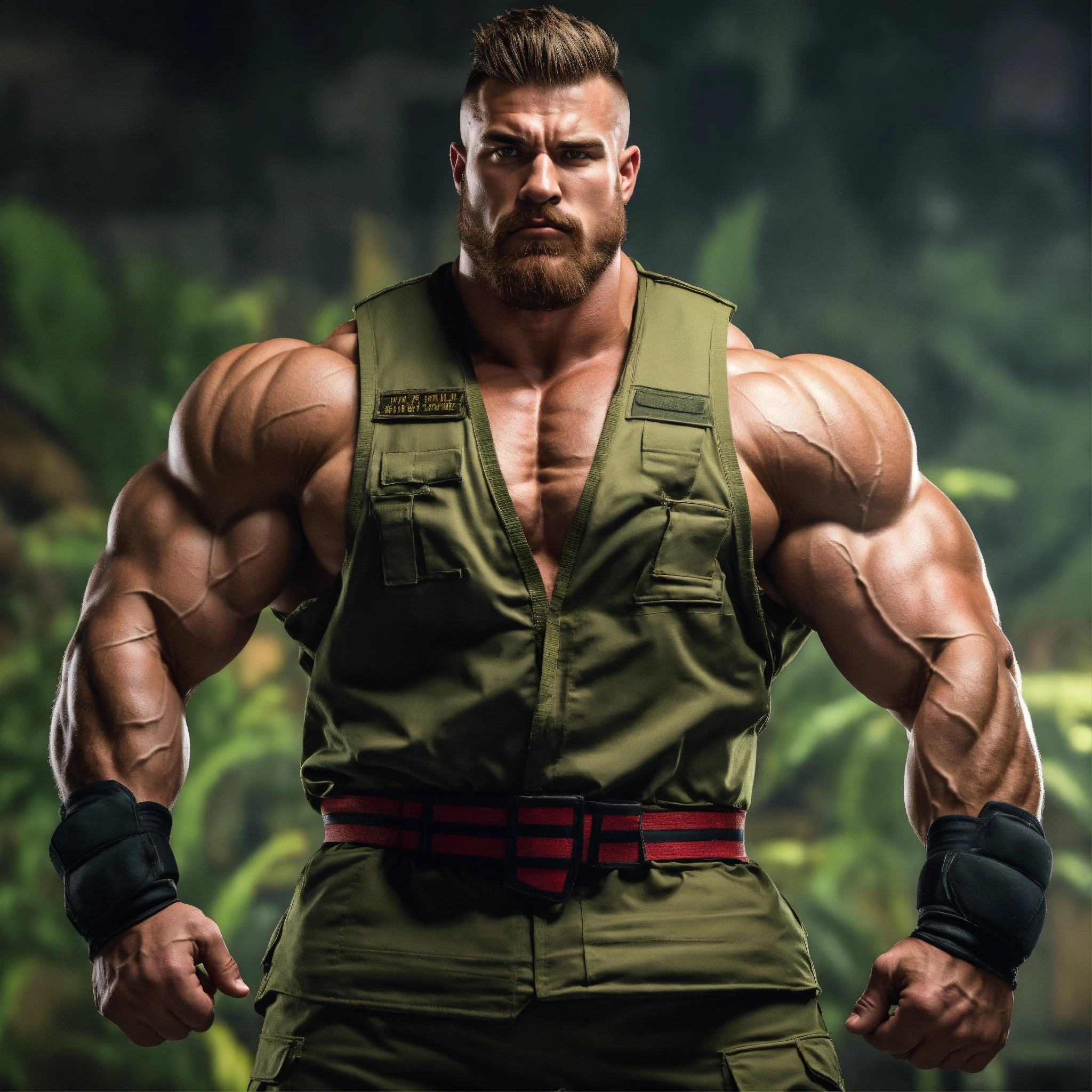 30-year-old man with big muscles, big bodybuilder, body like a wrestler, in the military, blanka from street fighter
