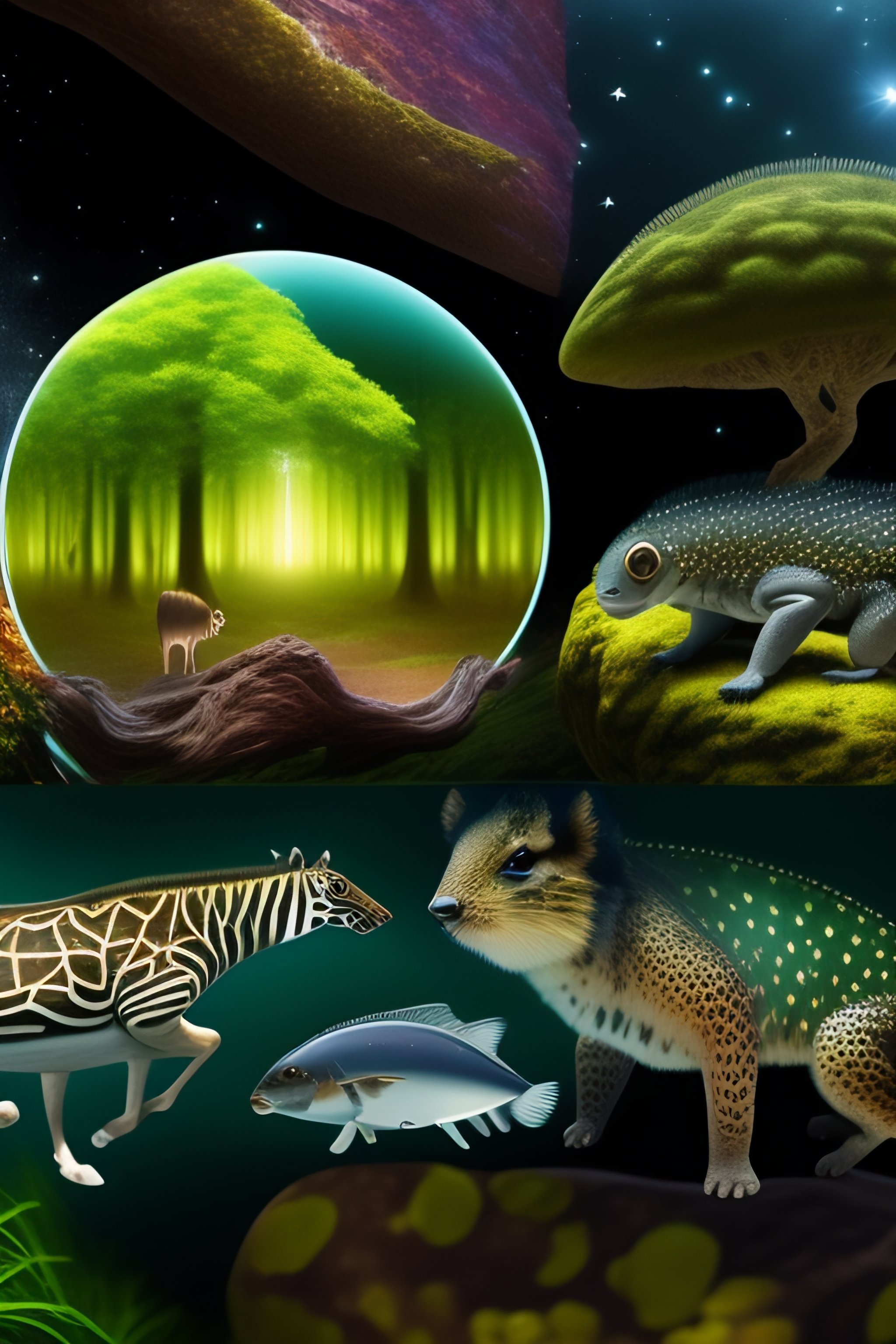A wide variety of exotic animals that inhabit the forests of xenon. some of them are small and insect-like, while others are giant and reptile-like. most of these animals have a unique ability to camouflage, allowing them to blend in with the environment and avoid predators
