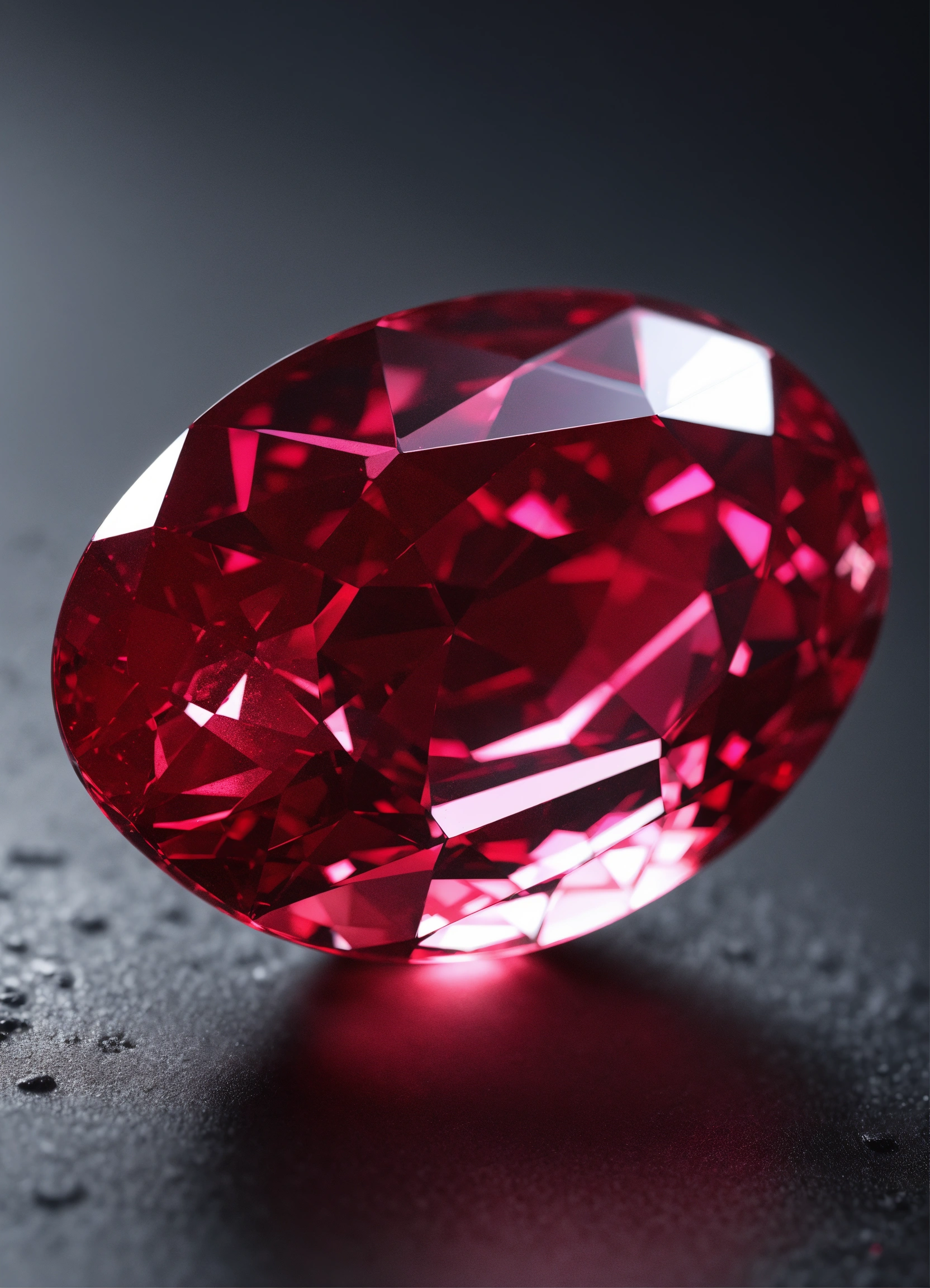 Create a hyper-realistic 4k image showcasing a lapidated ruby in a grey background