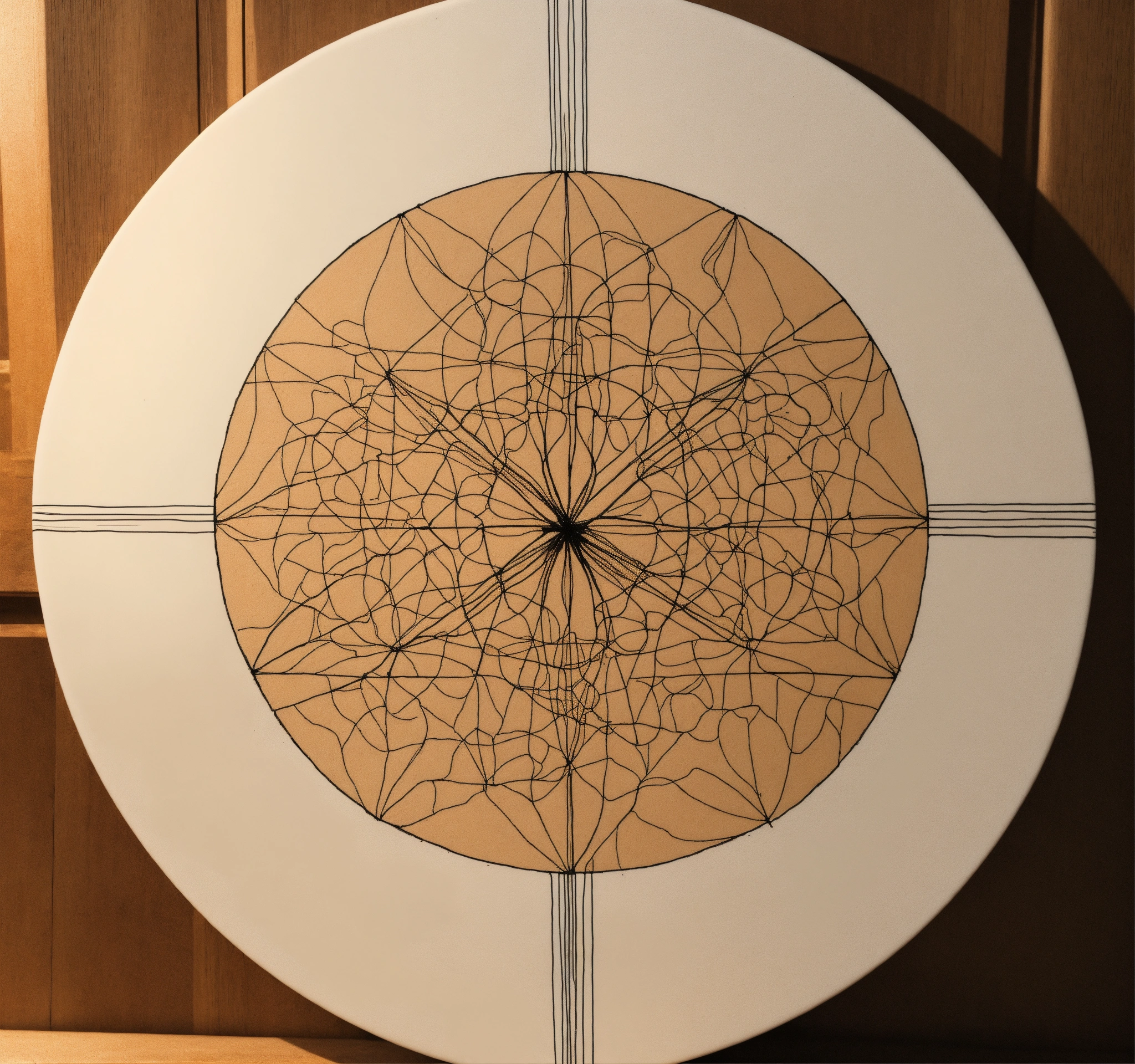 Create me a minimalist picture where merely the outlines are and what fits on a round canvas