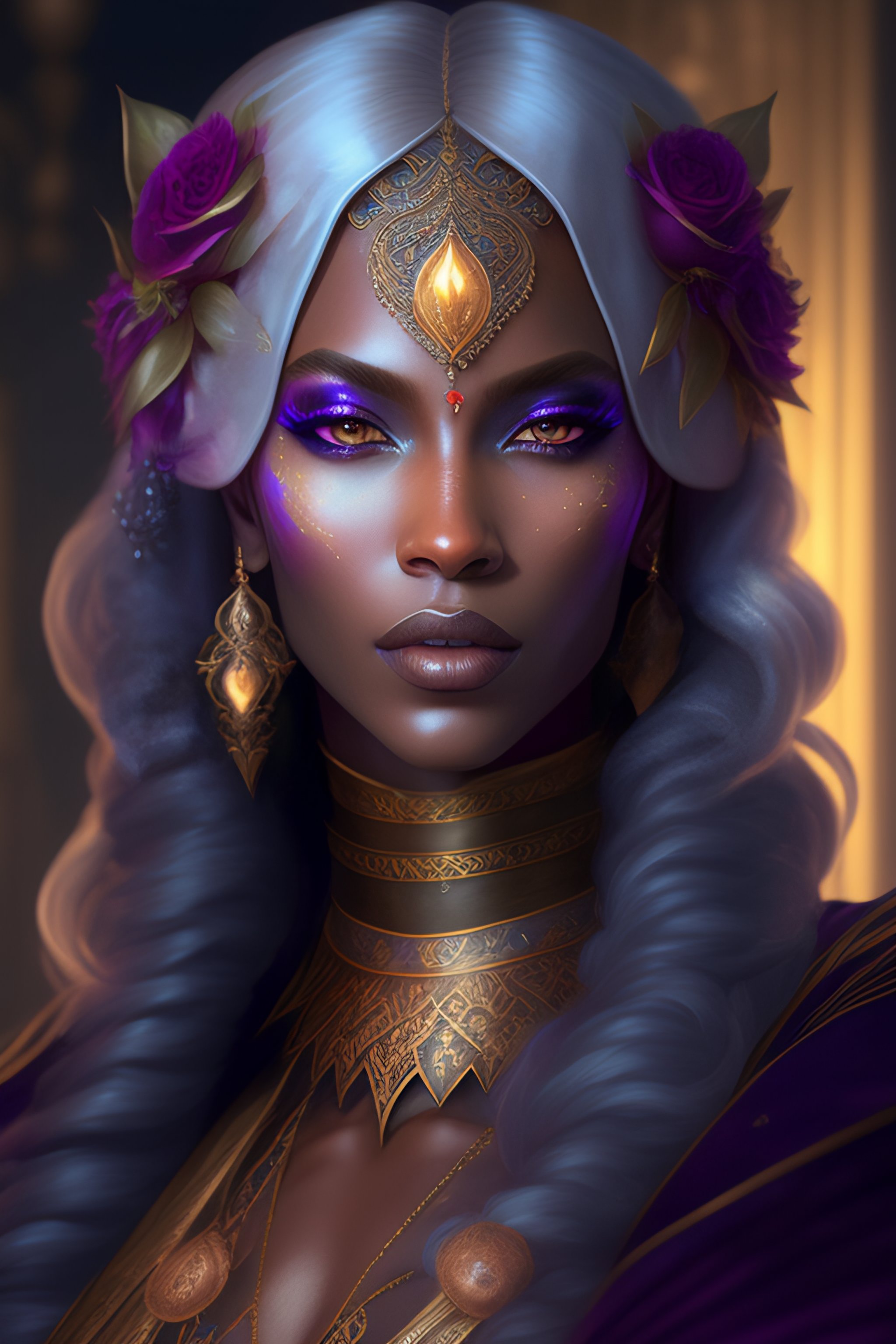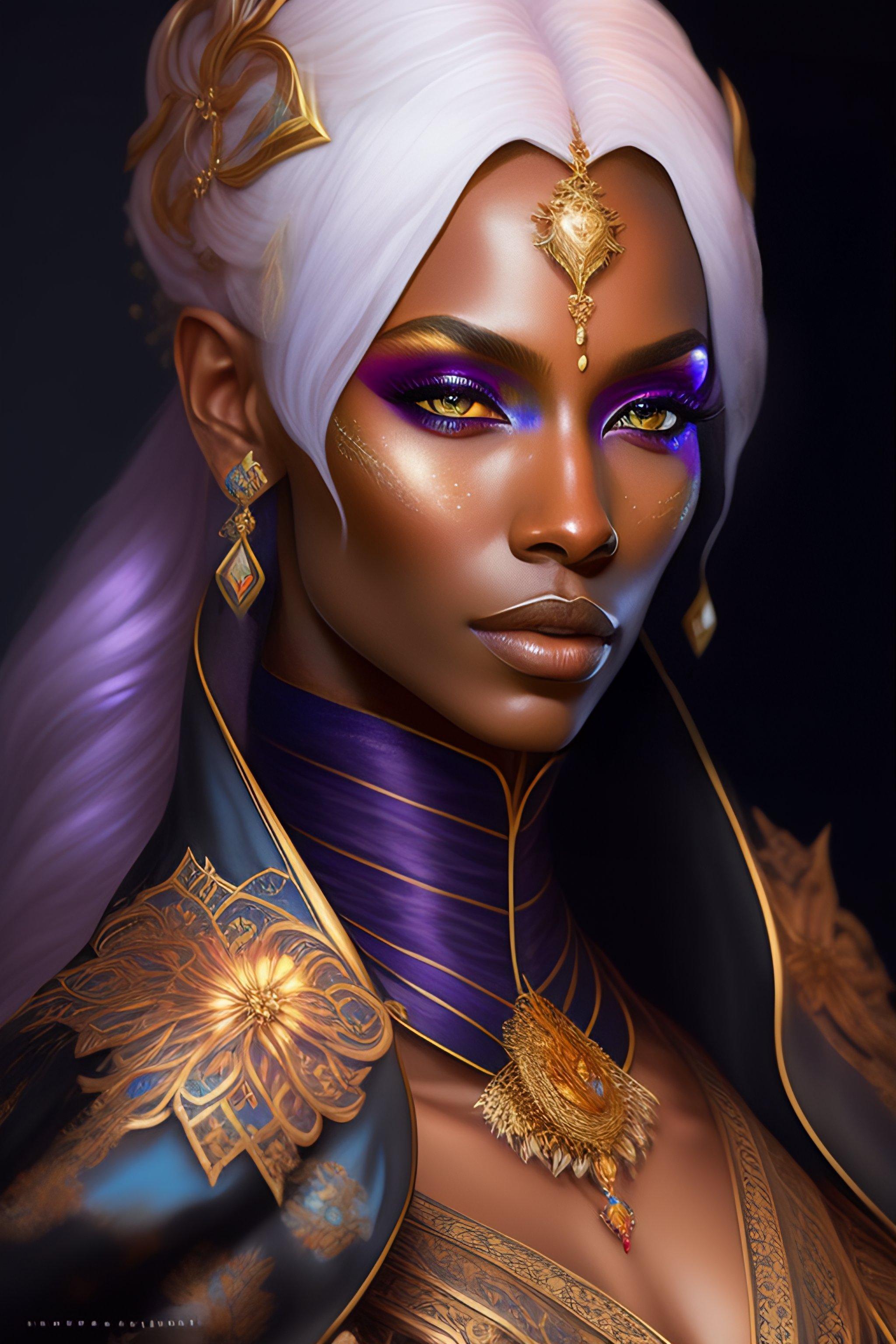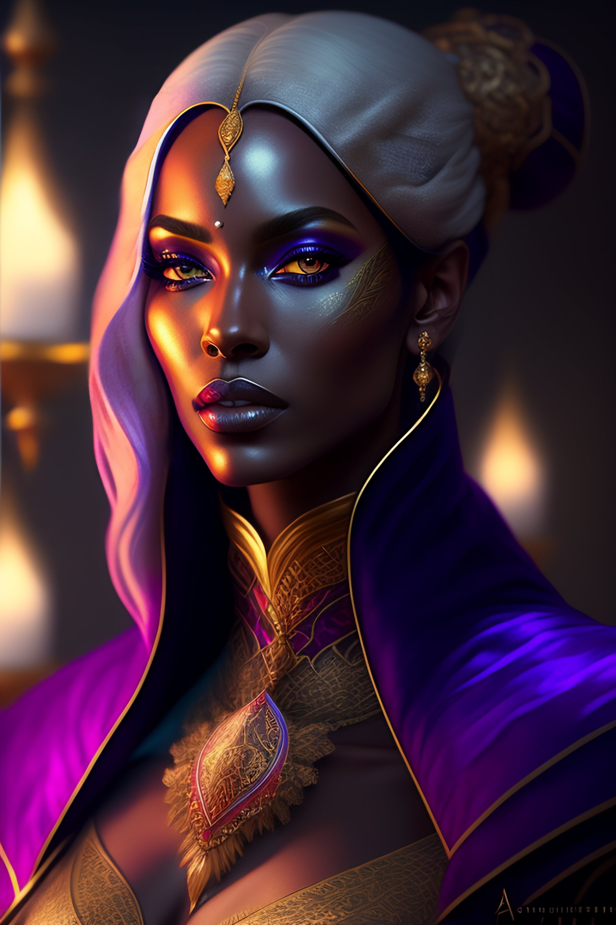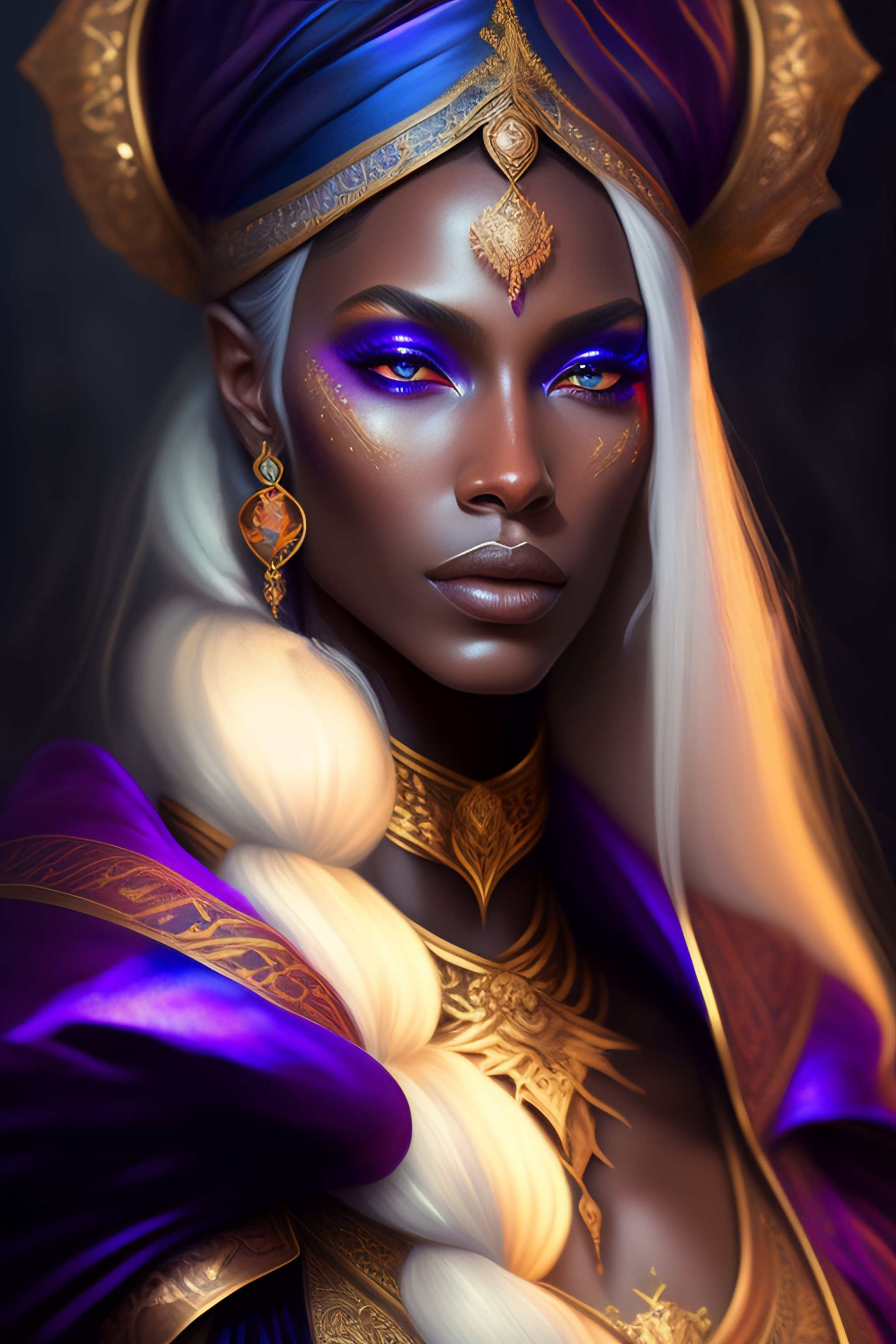 Portrait painting of a beautiful drow warlock in extravagant robes, ultra realistic, concept art, intricate details, eerie, highly detailed, photorealistic, octane render, 8 k, unreal engine. art by artgerm and greg rutkowski and alphonse mucha