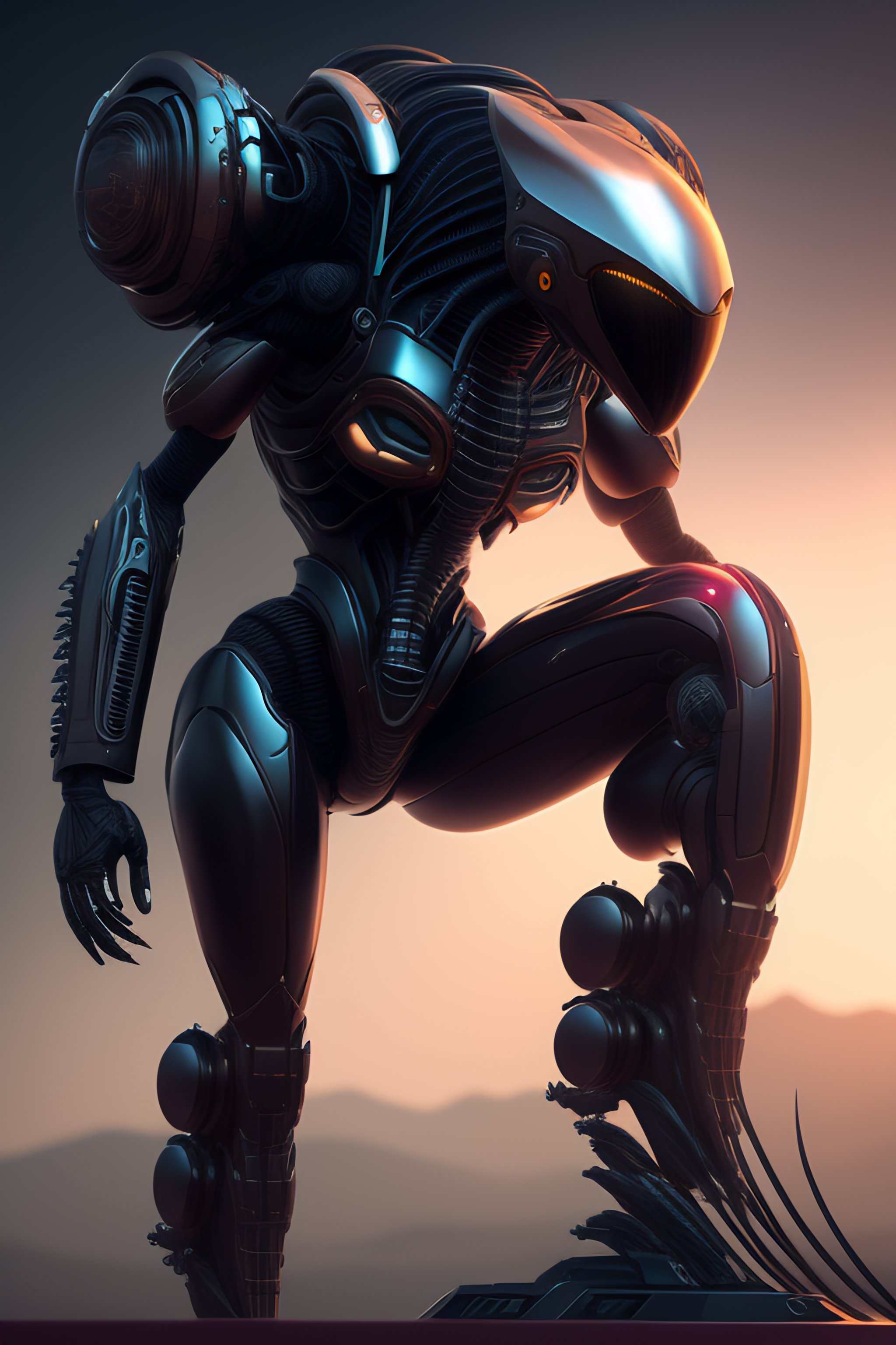 Alien biomechanic, full body cinematic style digital art render with mechanical and futuristic details