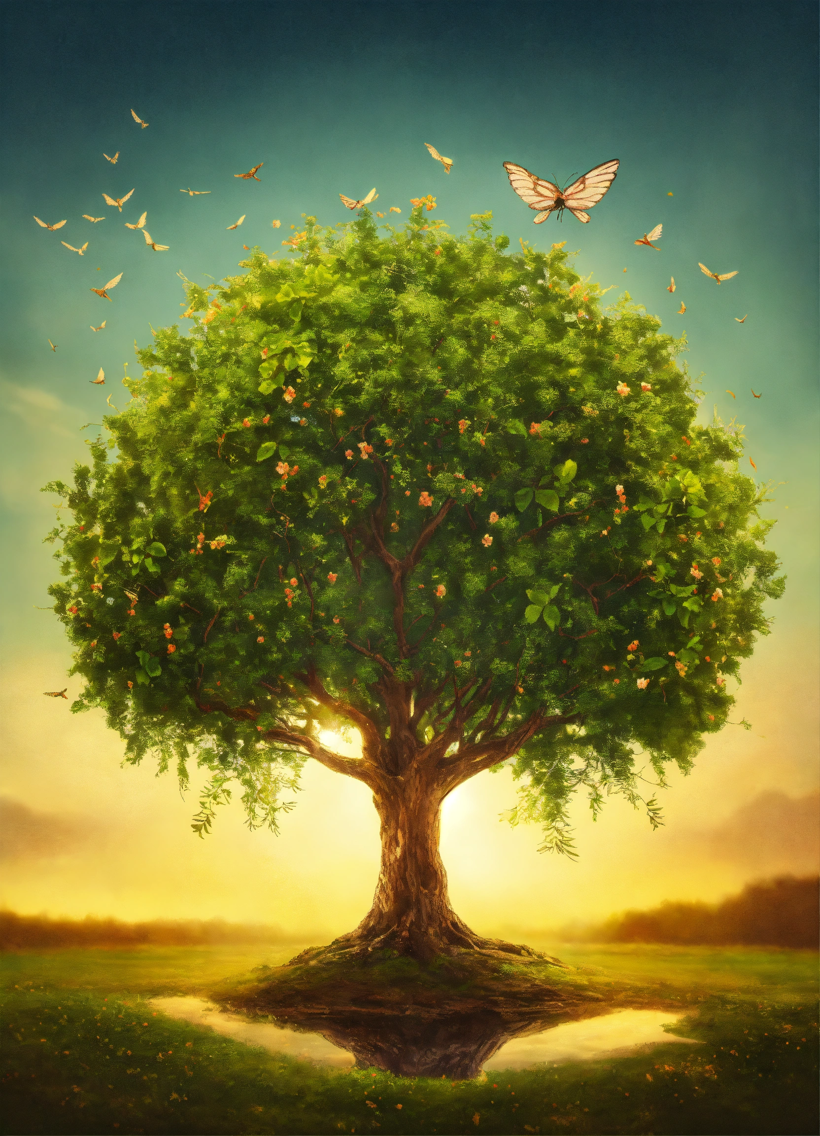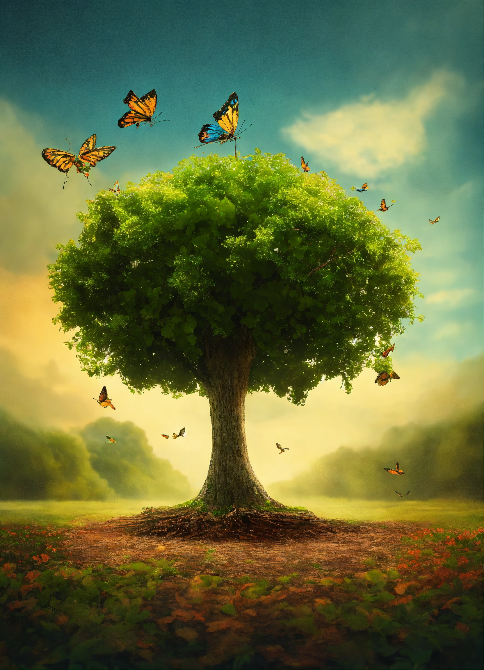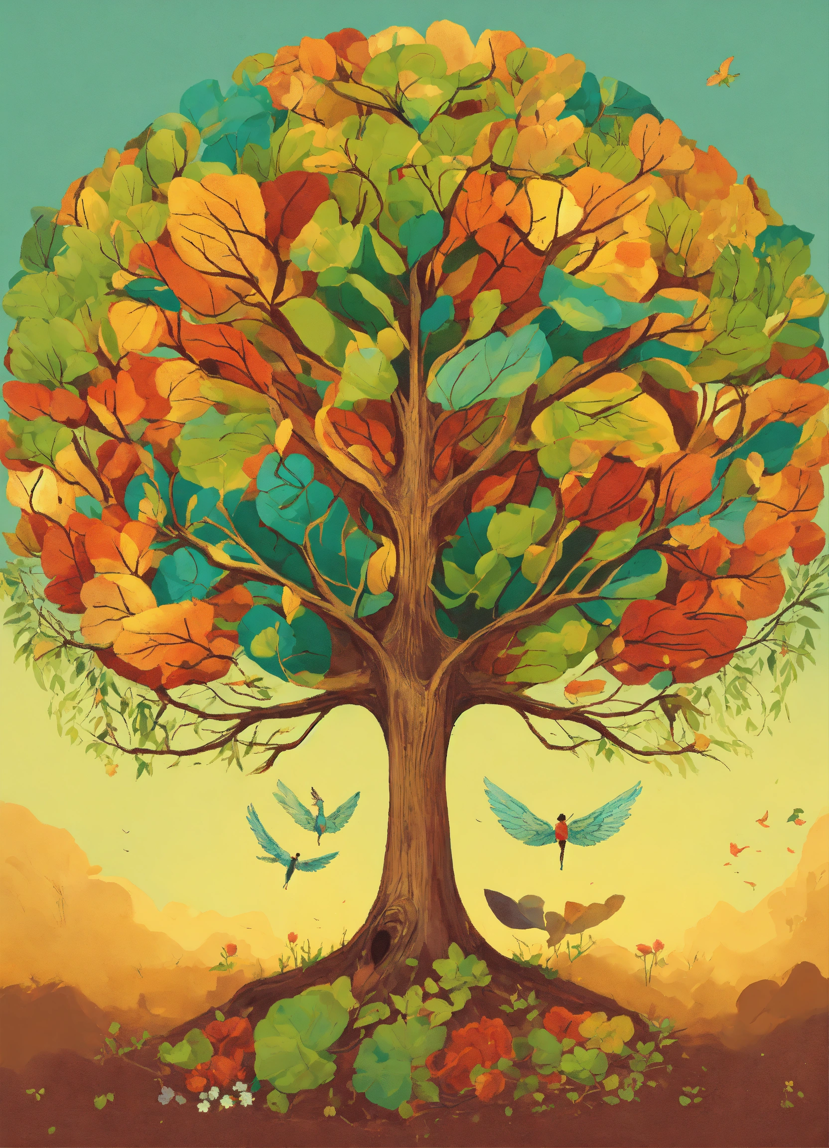 Imagen tipo logo de un árbol de la vida con forma de libelula con las alas extendidas