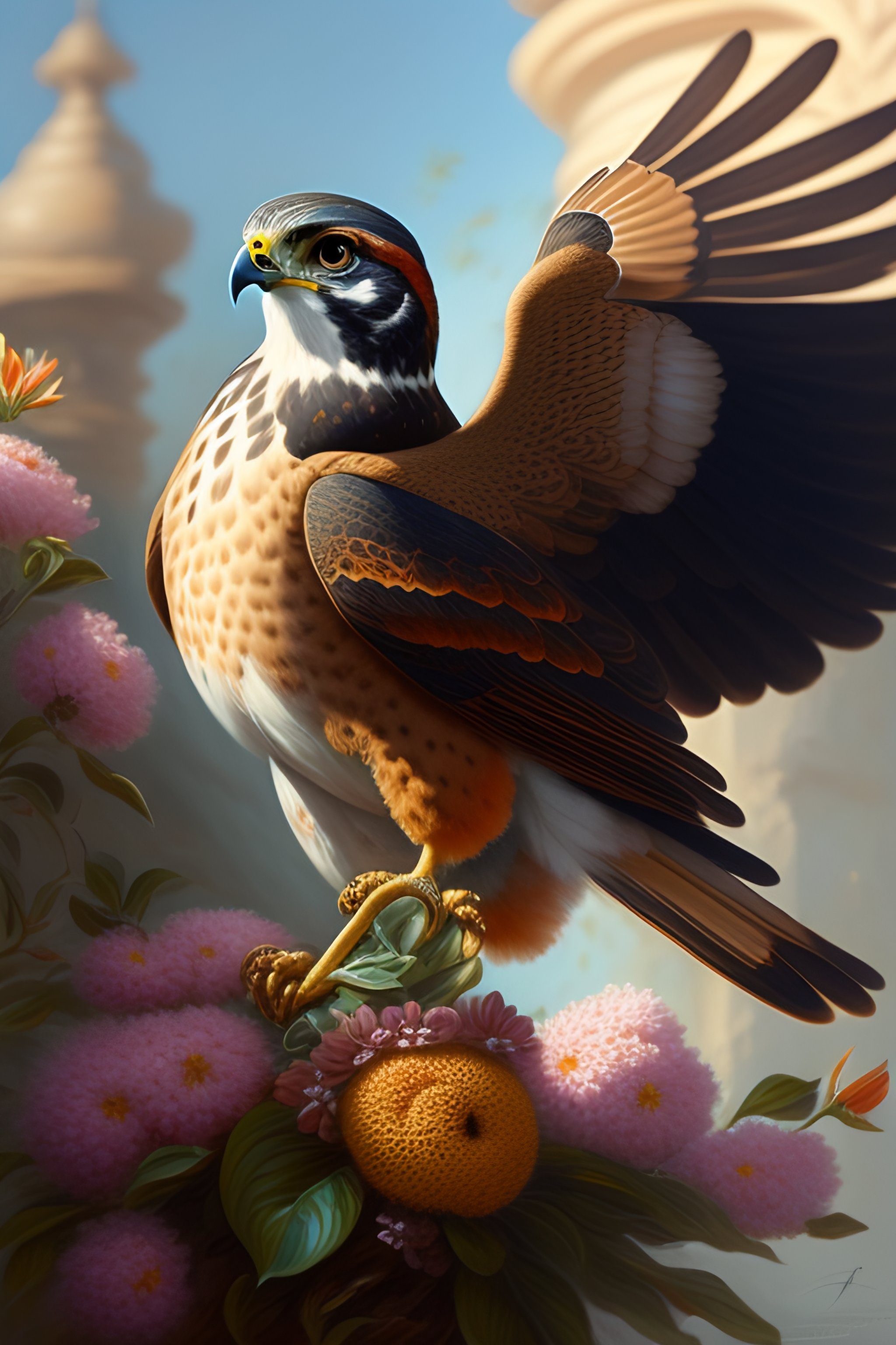 18th century portuguese ceramic art, painting of beautiful falcon and flowers, intricate, elegant, highly detailed, concept art, smooth, sharp focus, art by artgerm and greg rutkowski, 8k