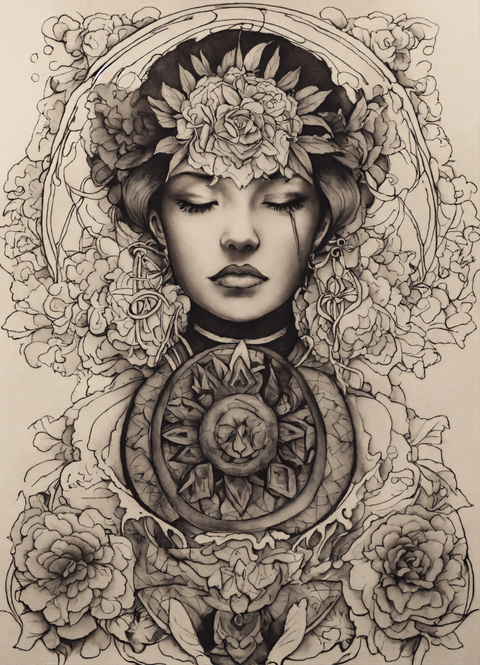 Ink drawing, tattoo style image of thought giving gratitude to those that trigger you, recognising the trigger and letting the emotion go