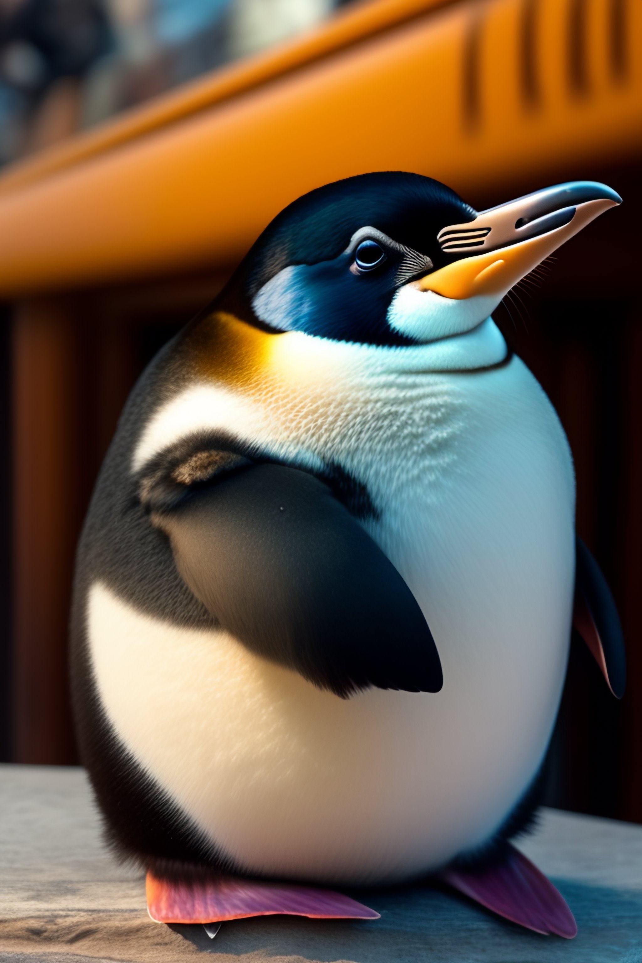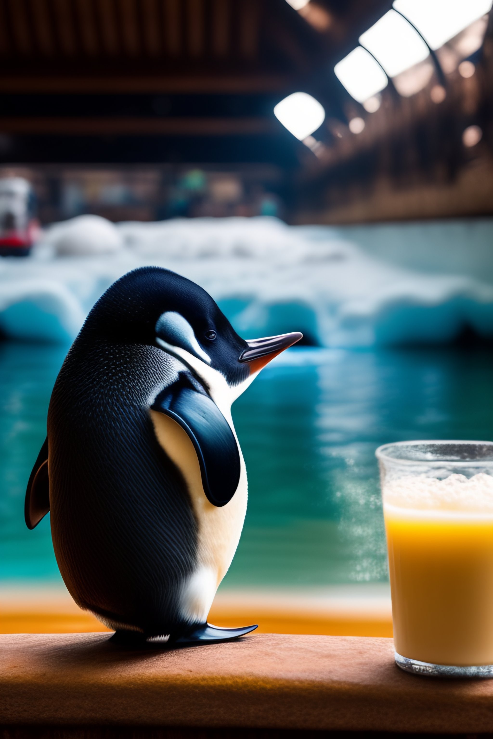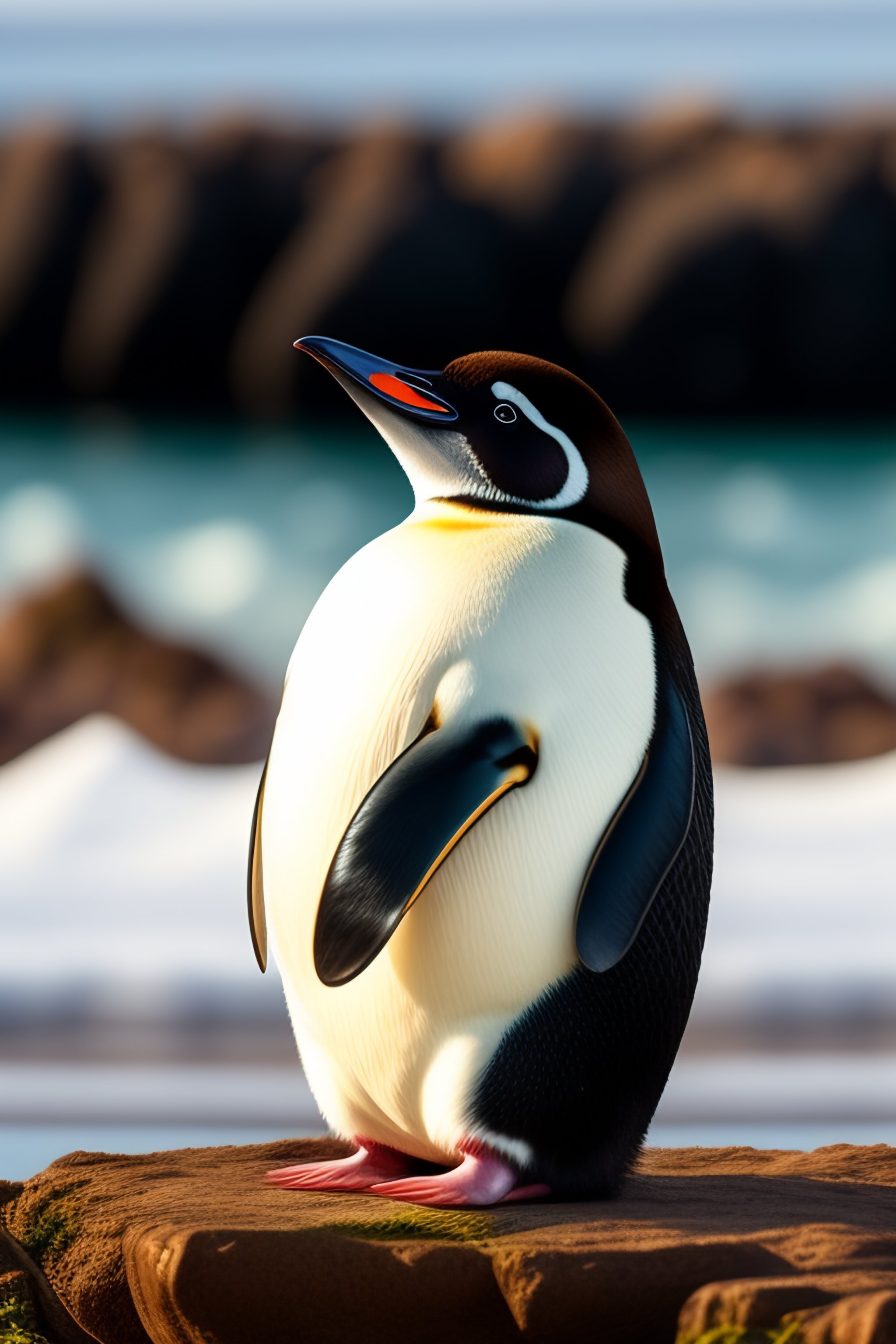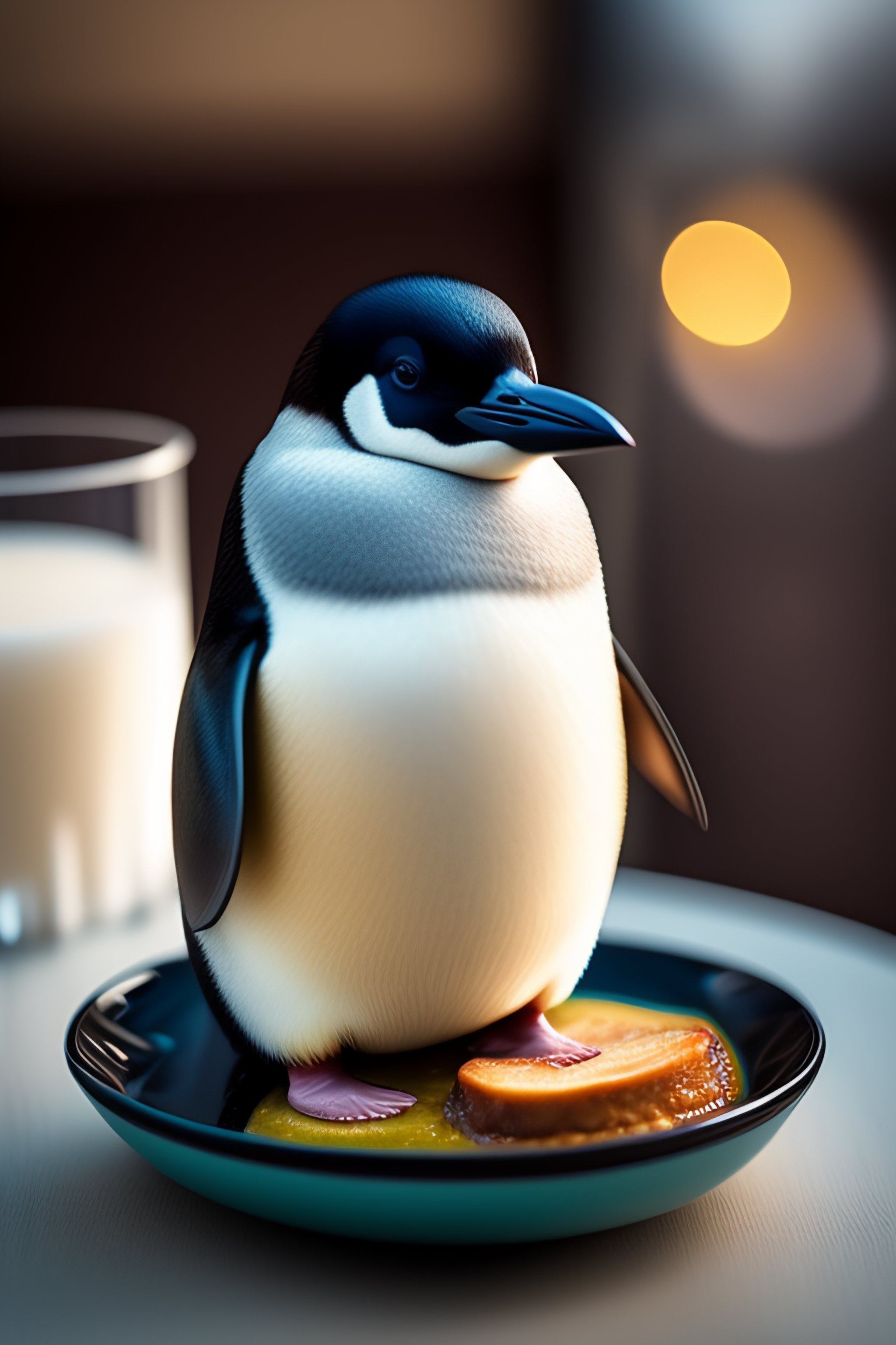 Un pinguino que sea un mayordomo y que este sosteniendo una bandeja de plata
