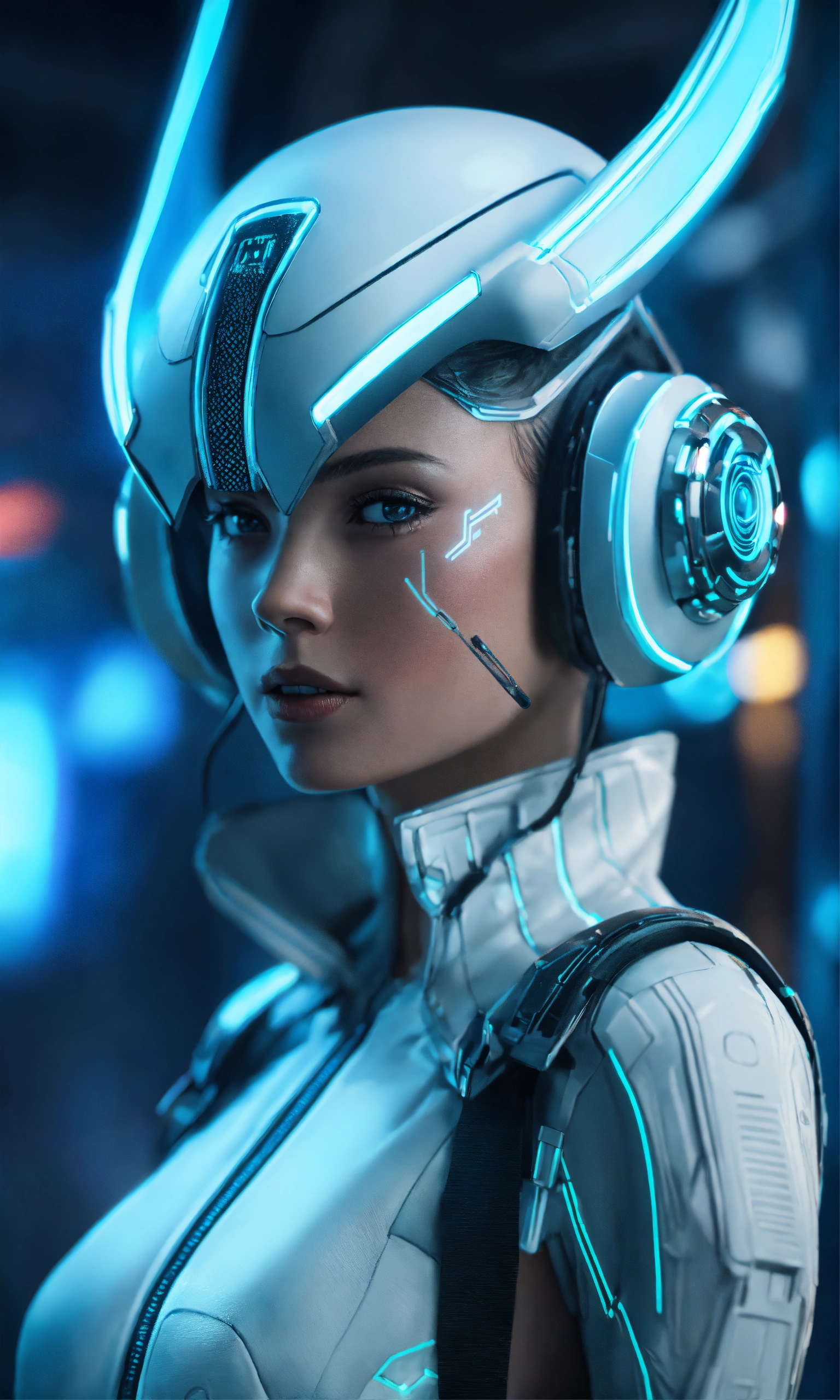 Full body of a beautiful light blue skin girl standing wearing detailed alien ear antennas with futuristic clothing, futuristic, tron, sci-fi, realistic, unreal engine, 8k