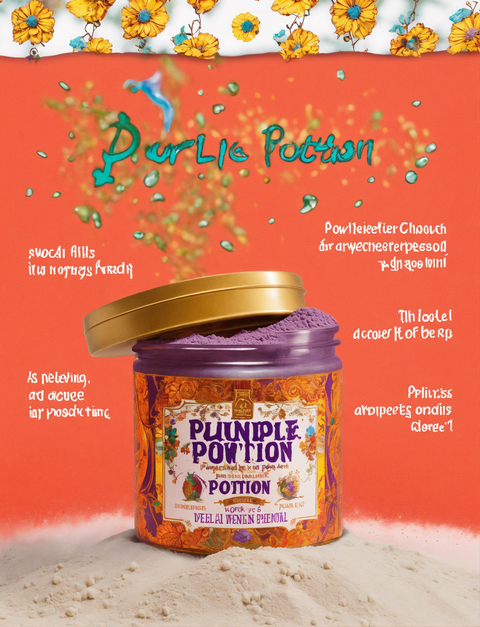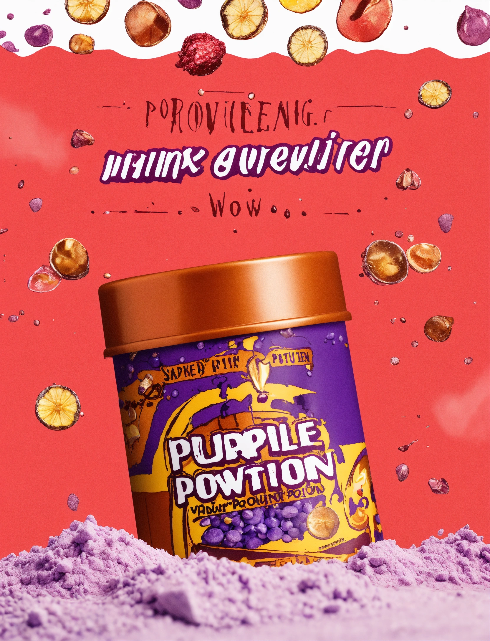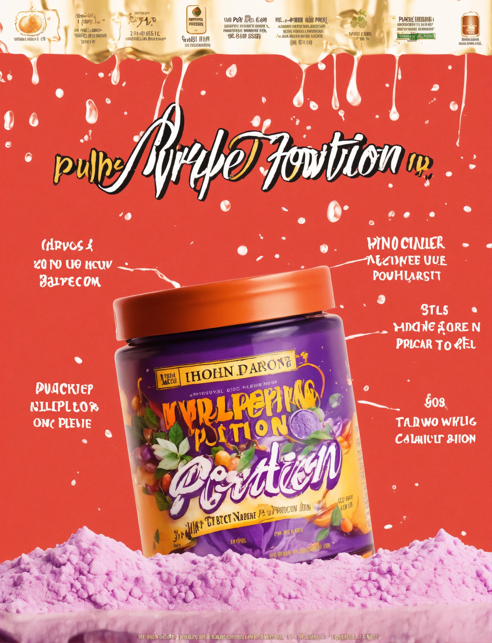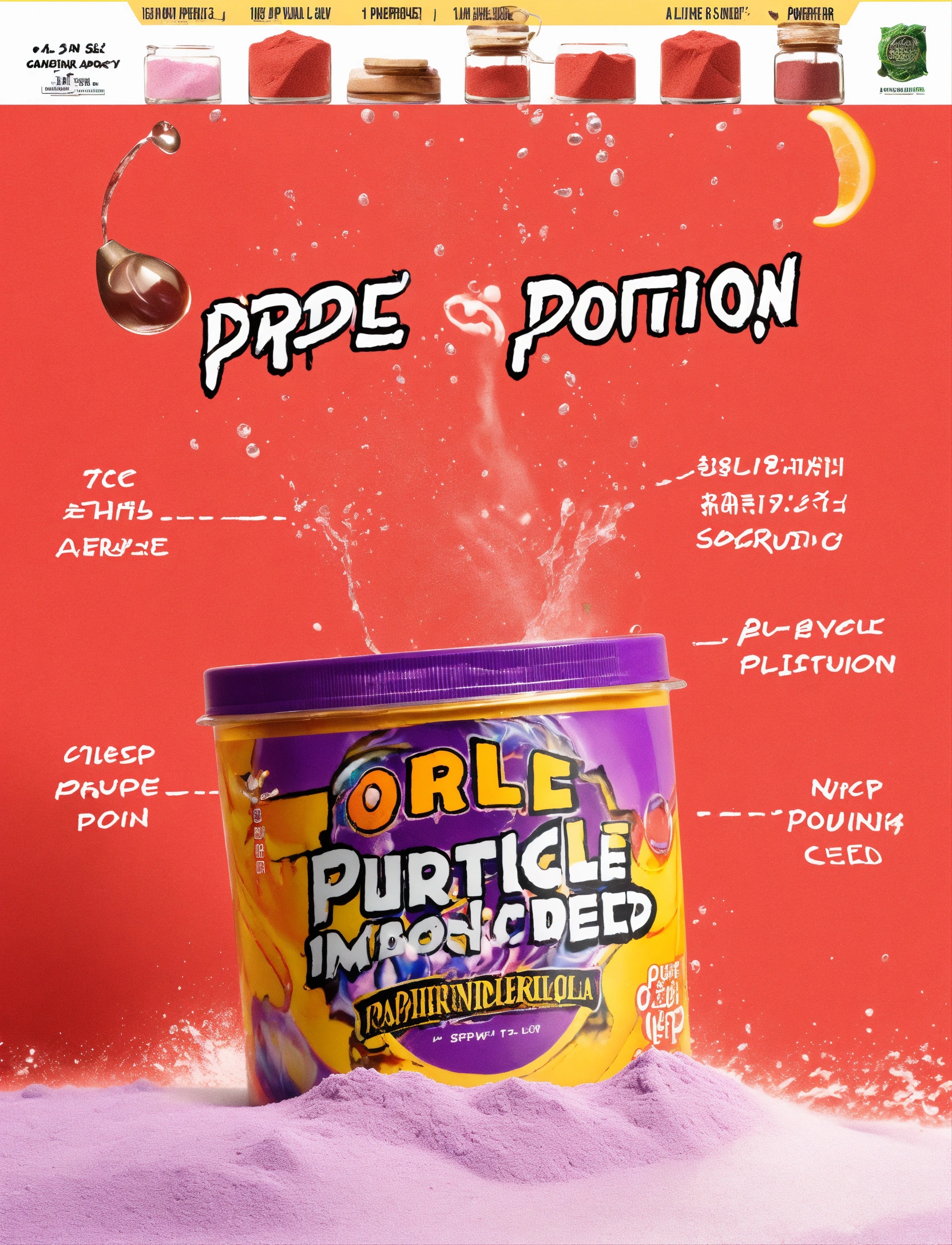 Advertising image for purple powdered potion
