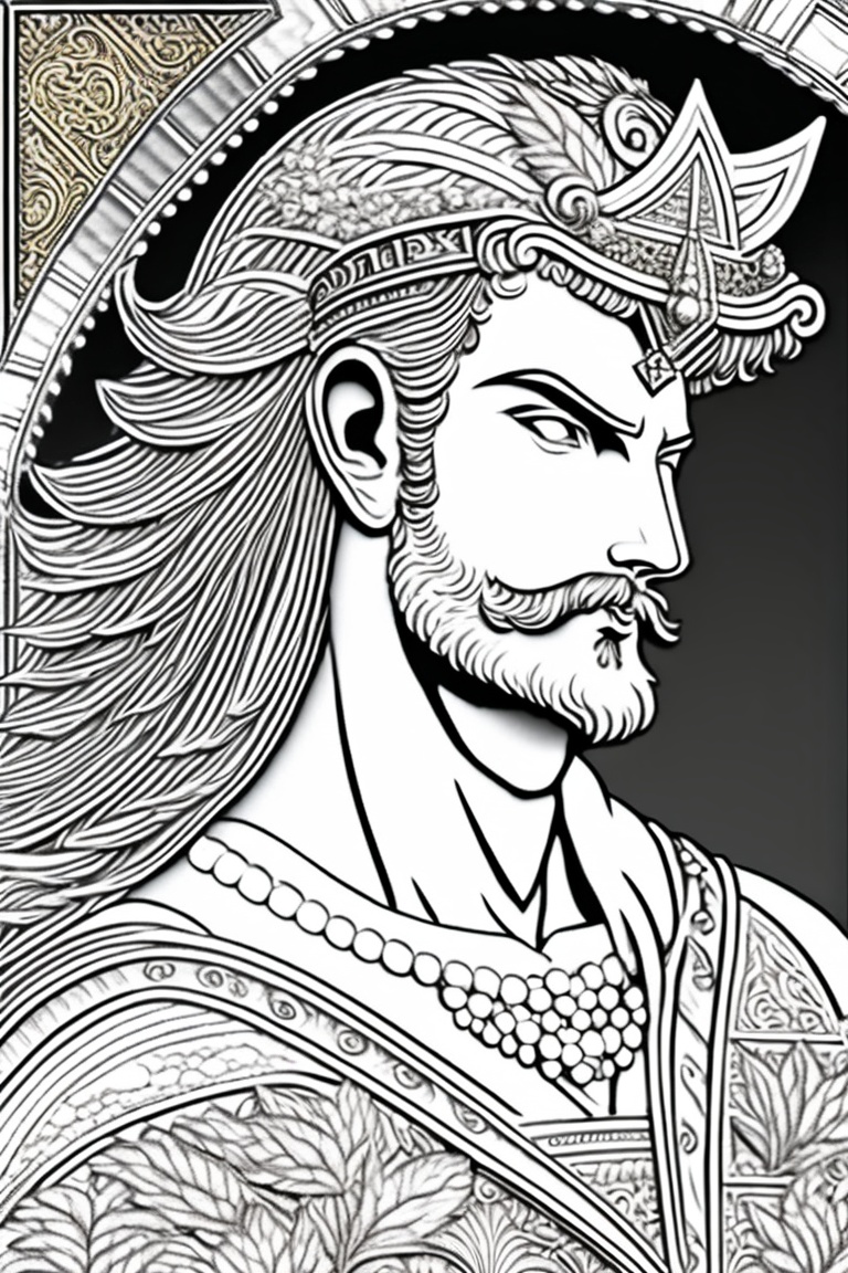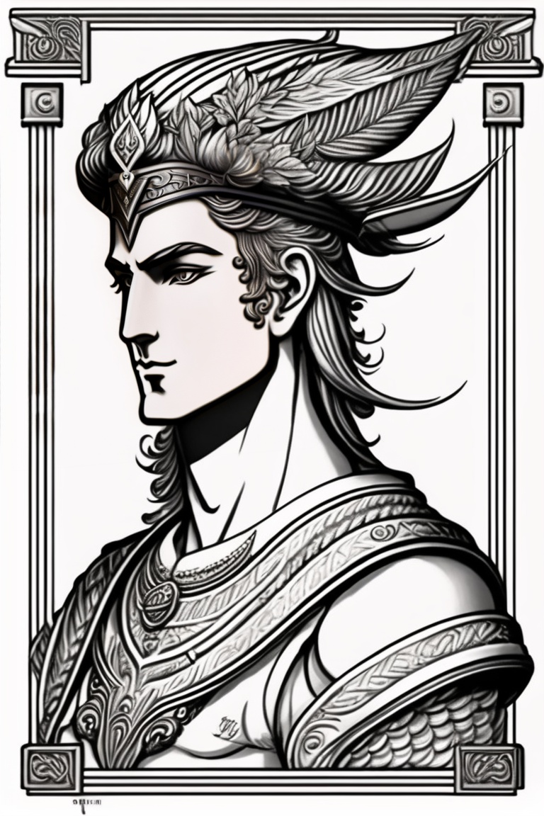 Phoenician baal god, thunder, highly detailed, agriculture, vintage 90's anime style, line art, nature, black and white drawing
