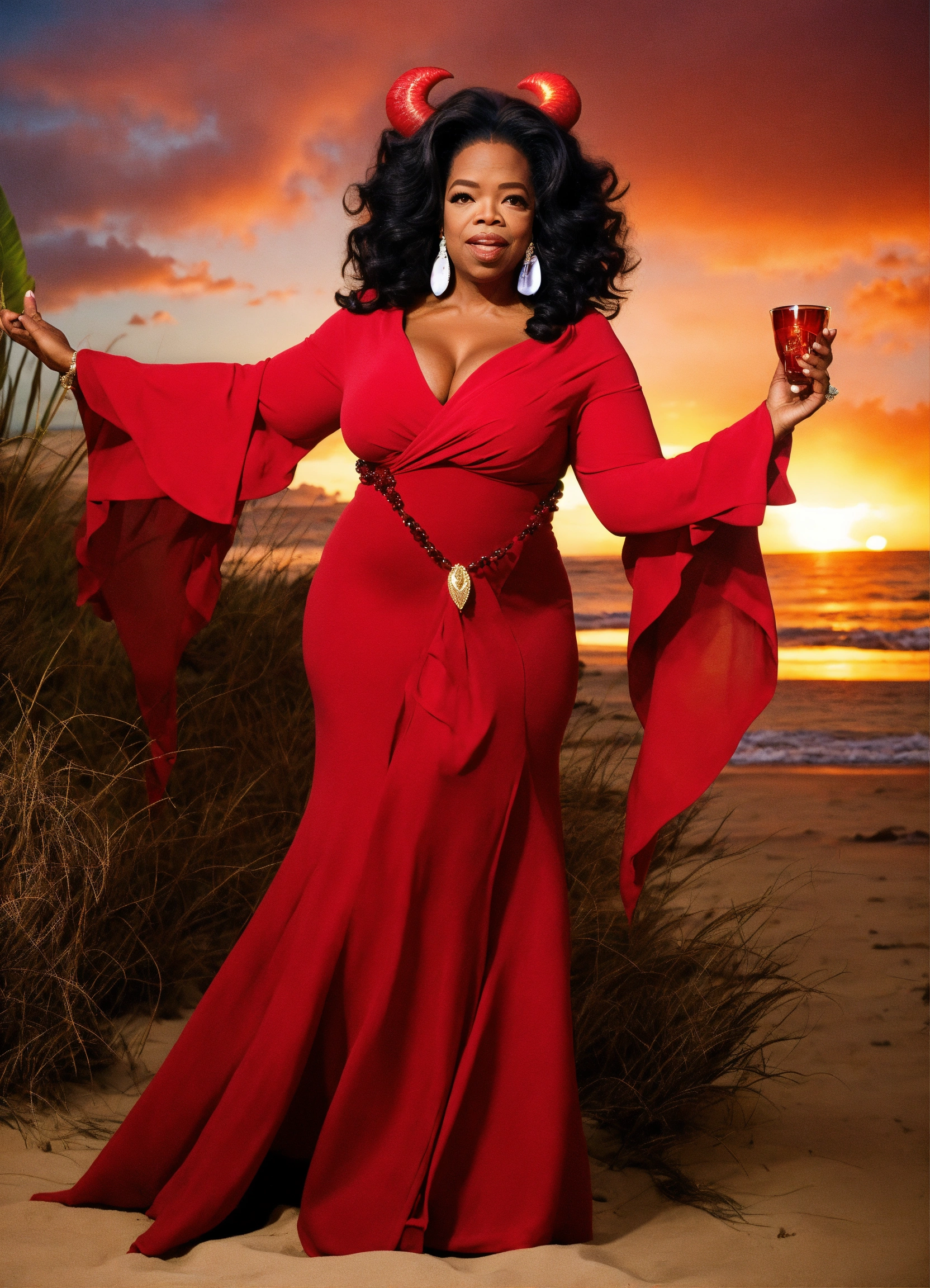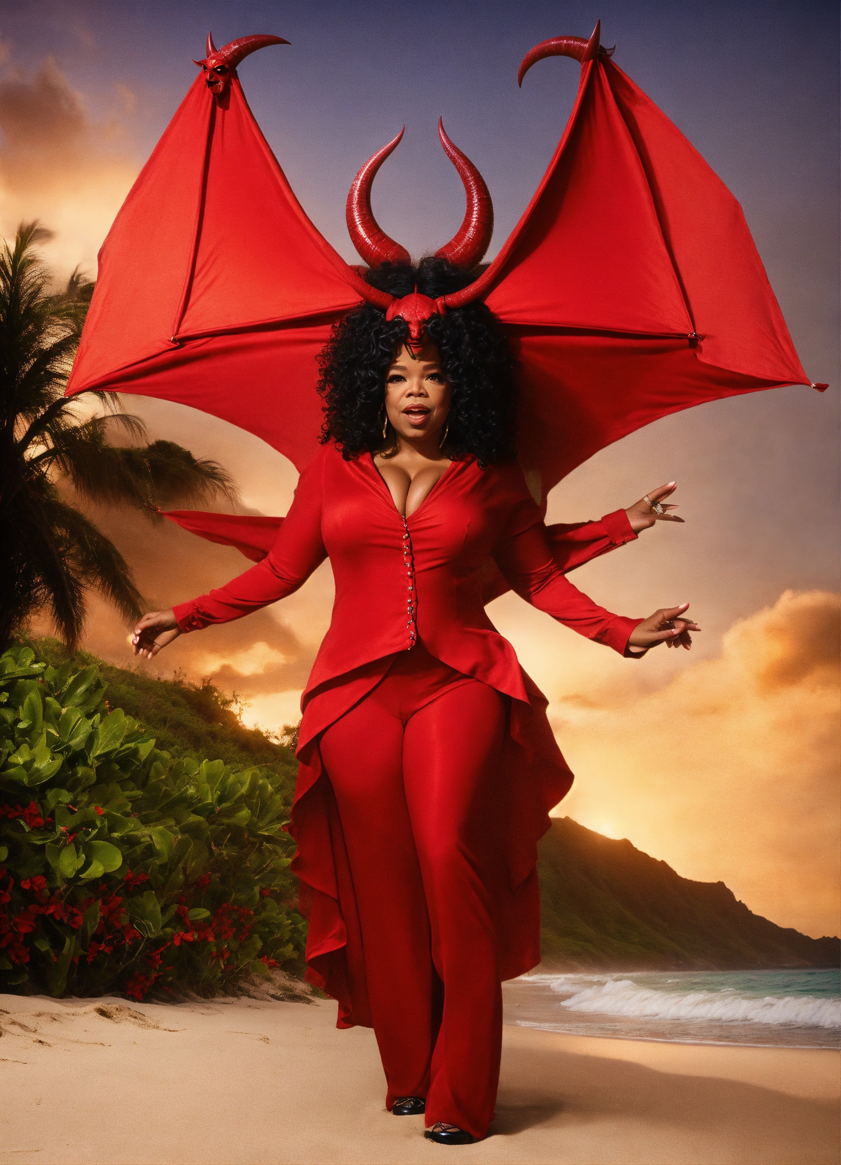 Oprah winfrey dressed as the devil on the beaches of hawaii