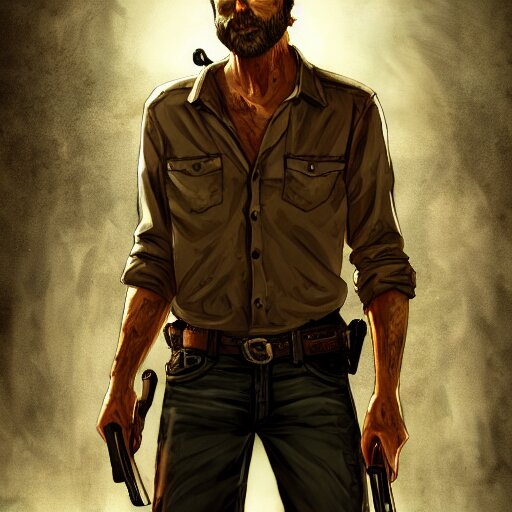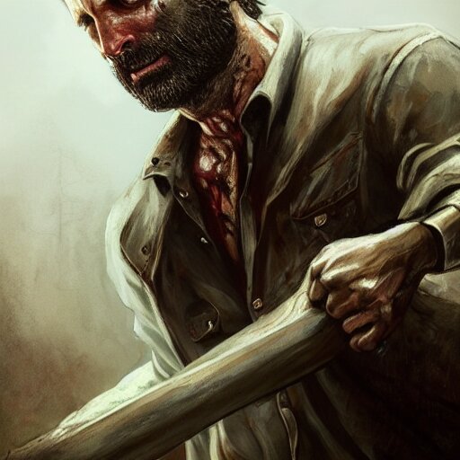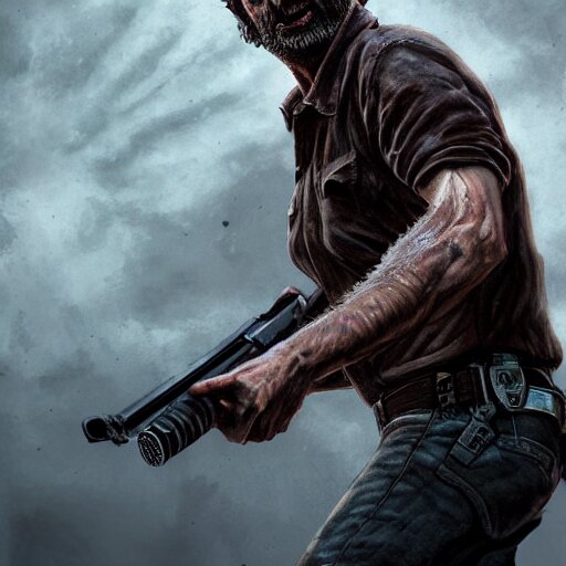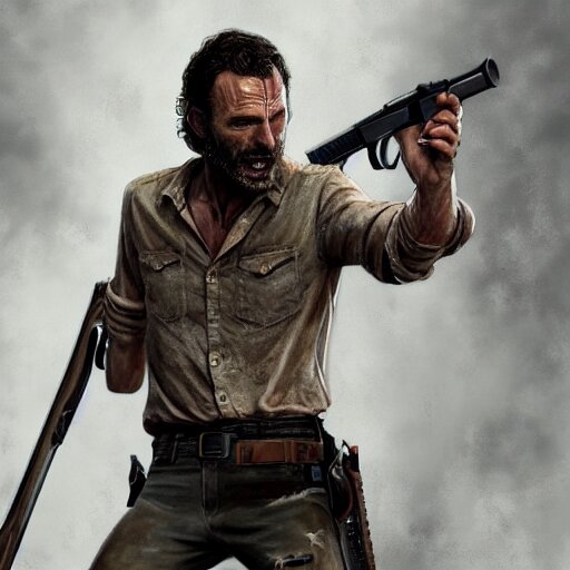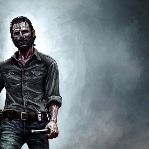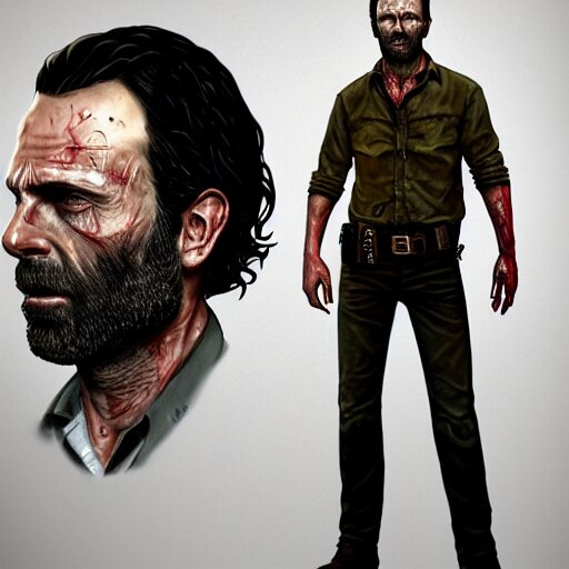 Rick grimes from the walking dead, zombie, full body shot, fantasy, medieval, vivid colors, elegant, concept art, sharp focus, beautiful face, digital art, hyper-realistic, 4k, unreal engine, highly detailed, hd, dramatic lighting by brom, trending on artstation