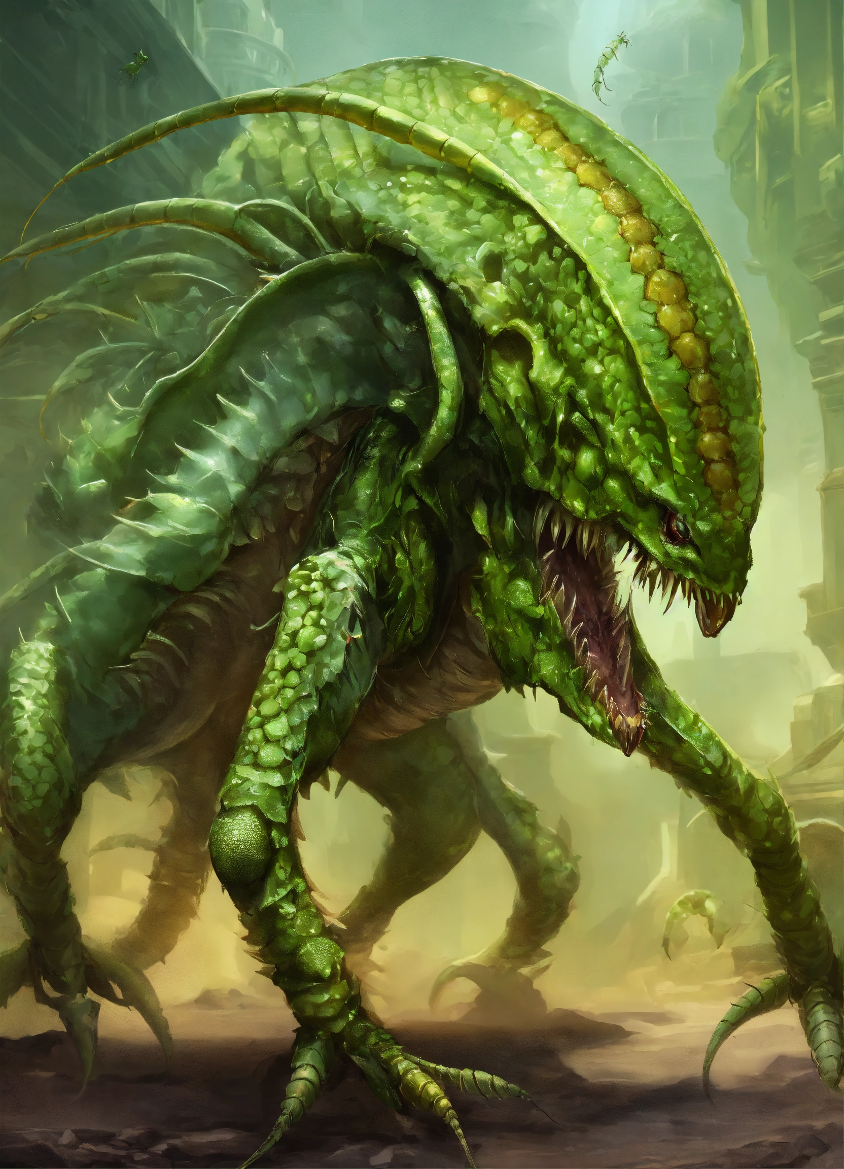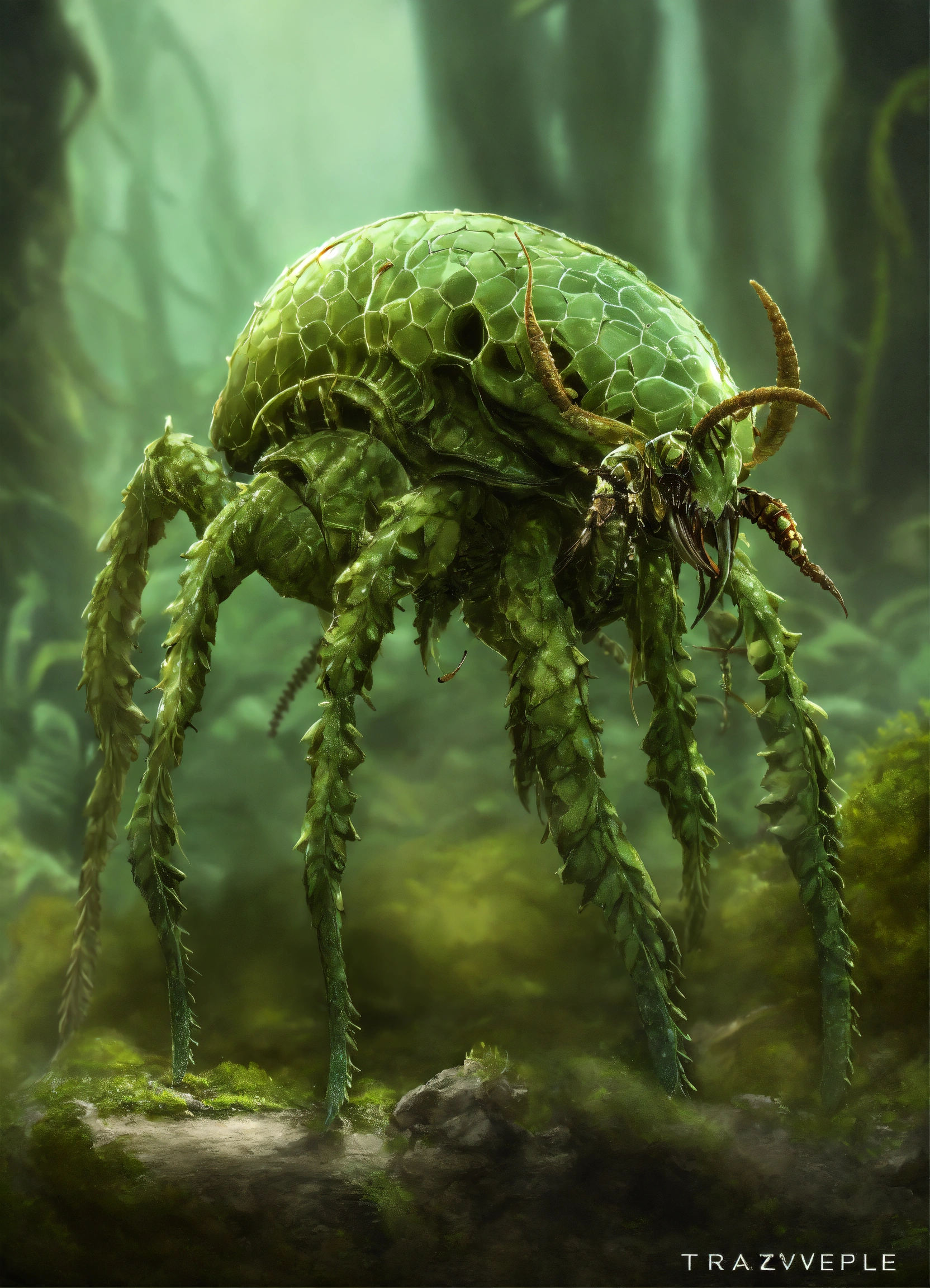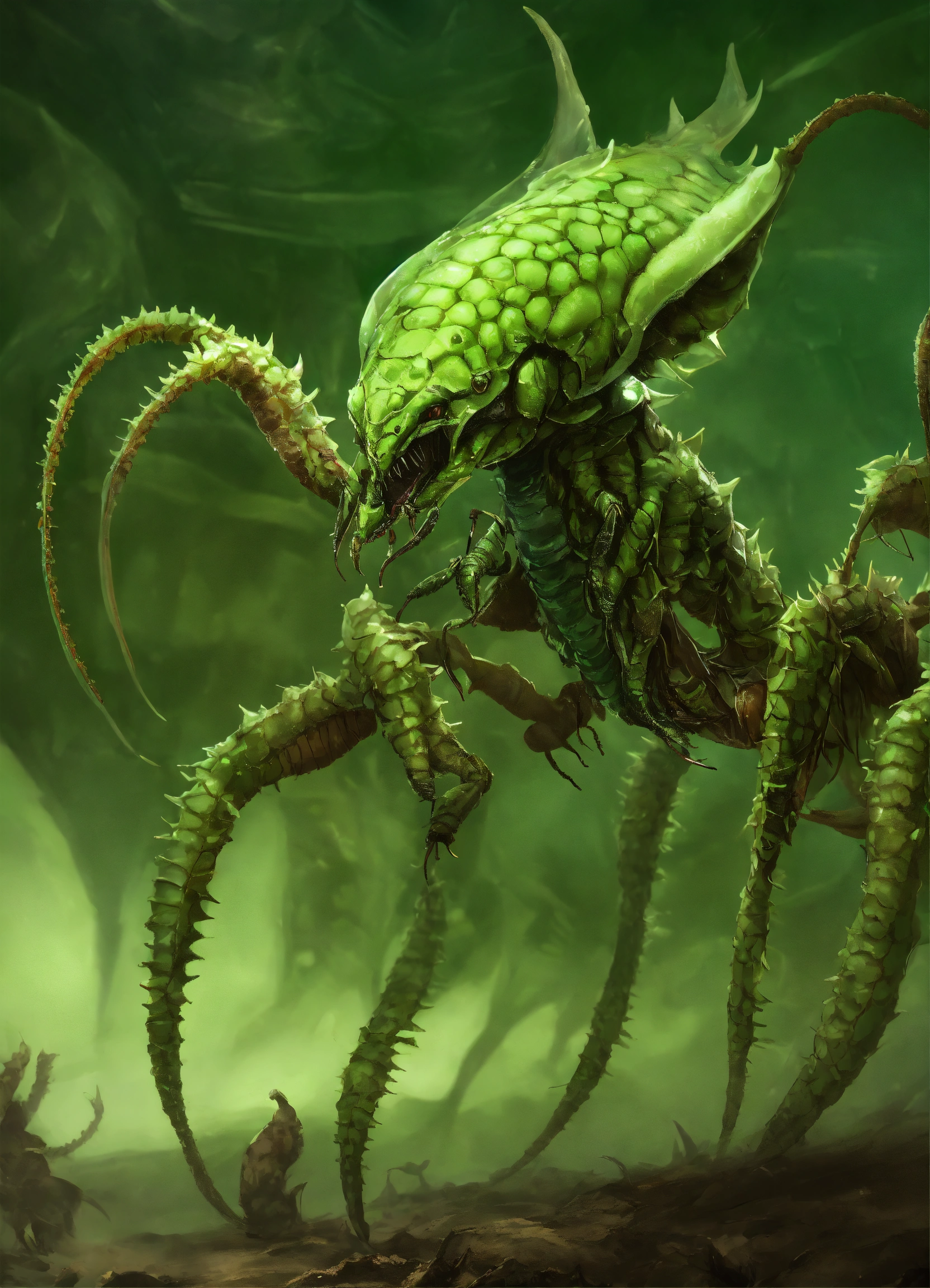 A light green patterned bioform of the multispecies tyranid race that was genetically designed by the hive mind for the transportation of other intelligent species settled worlds, it has 12 caterpillar legs for traversal