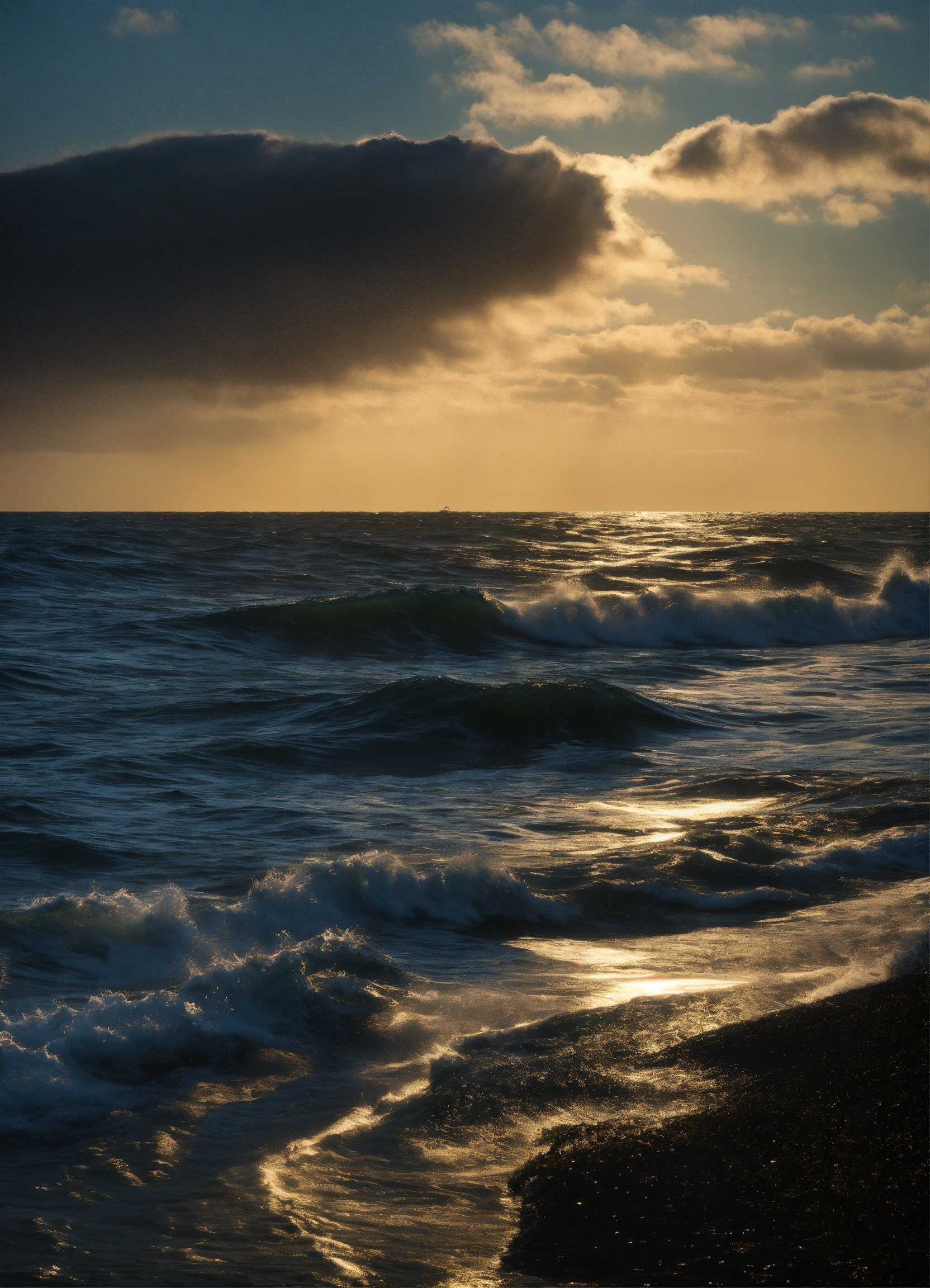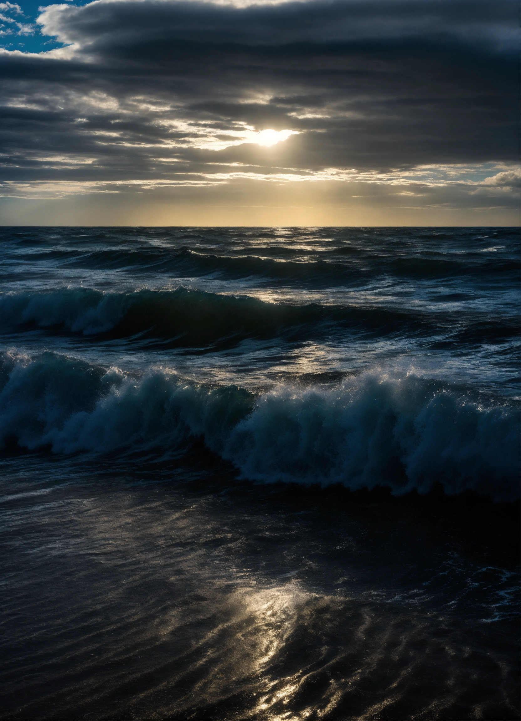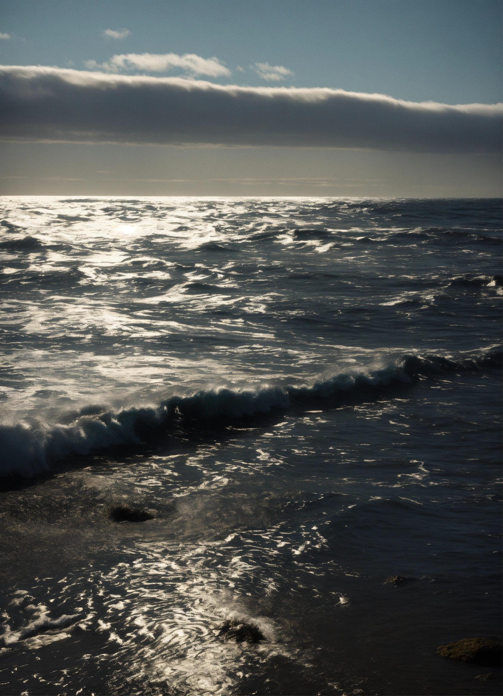 The ocean was very flat - no big rolling swells - just tiny little ripples. the whole world would be black, and then there would be a flurry of bolts, and the whole world would be silver. the ocean looked like nothing so much as aluminium foil that had been scrunched up, and flattened out - the water looked like mercury, and all the little ripples made these very dramatic black shadows.
