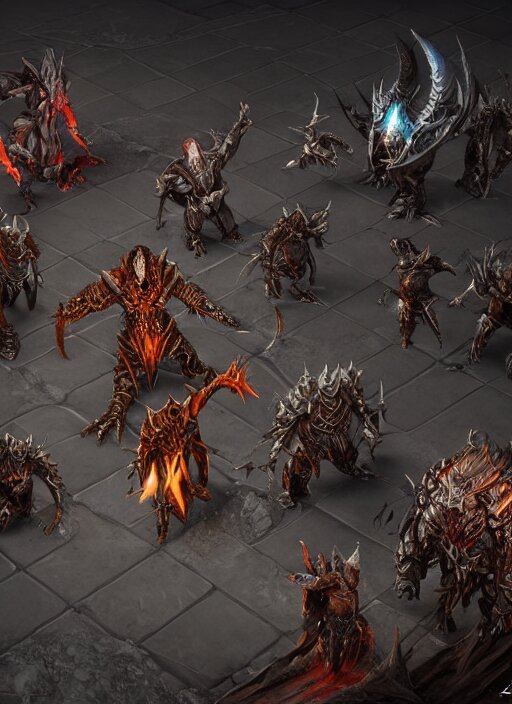 А monsters from diablo 3 blizzard game, full body, detailed and realistic, 4k, artstation, octane render
