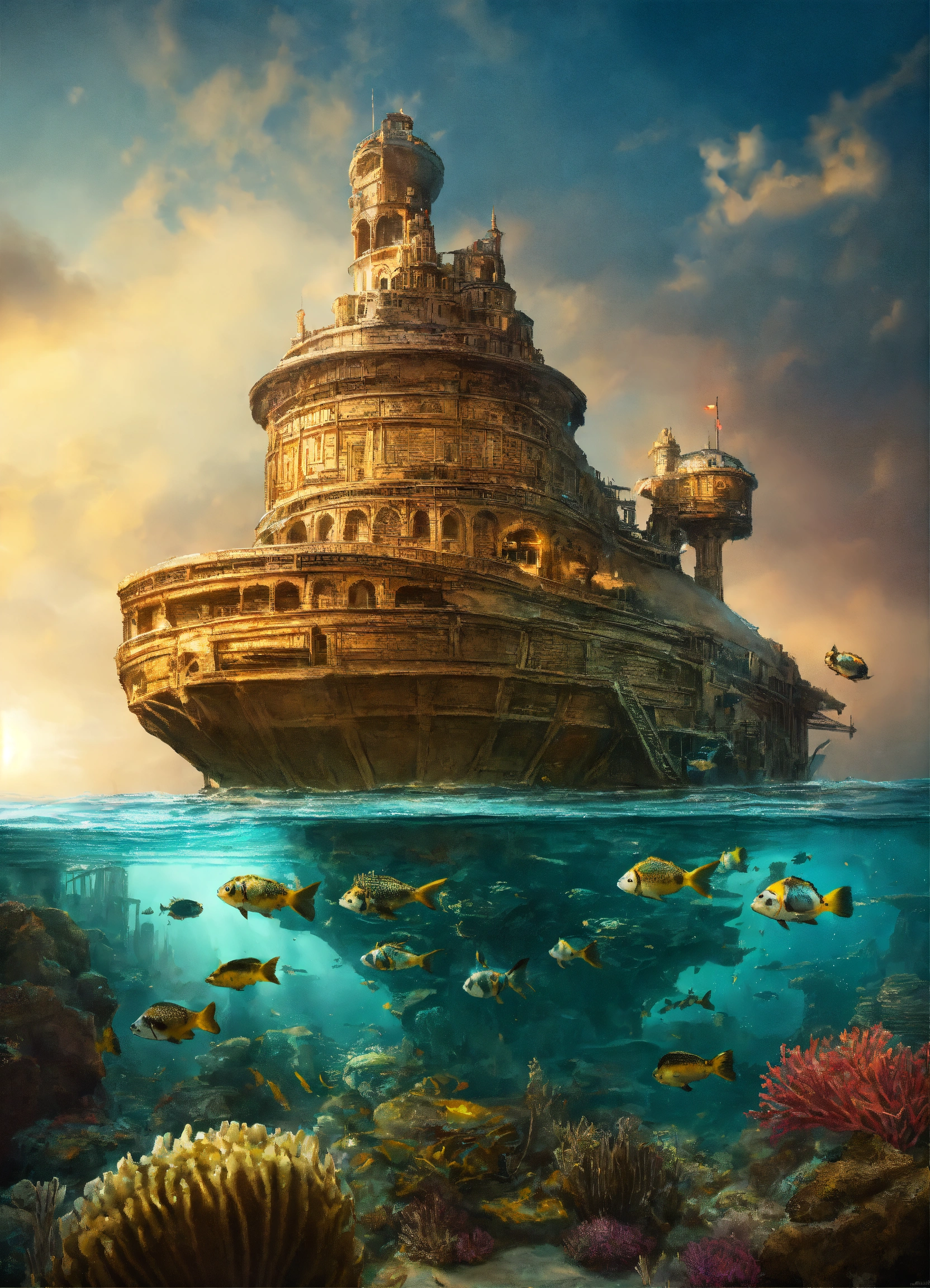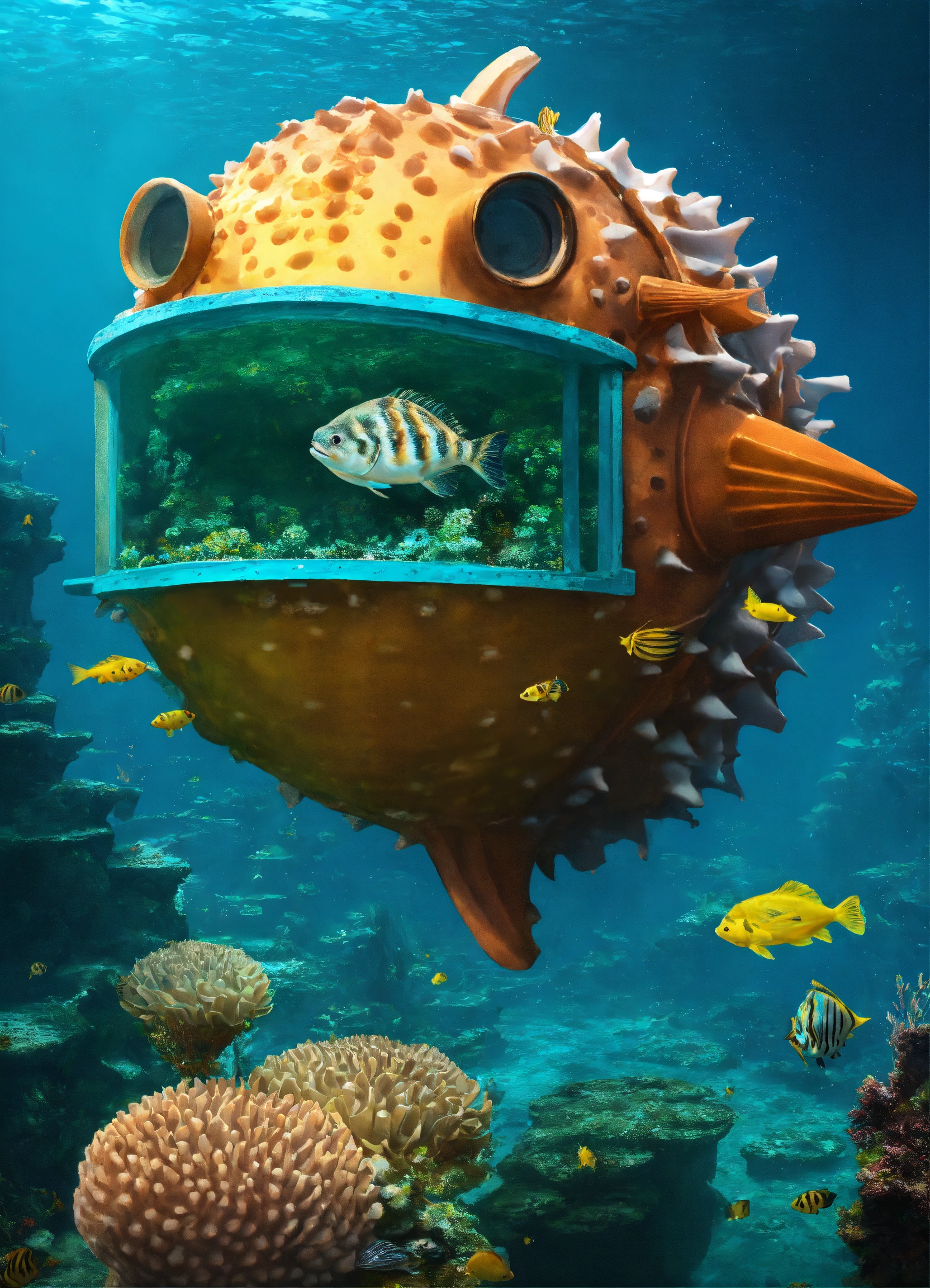 Atlantis on top of a puffer fish
