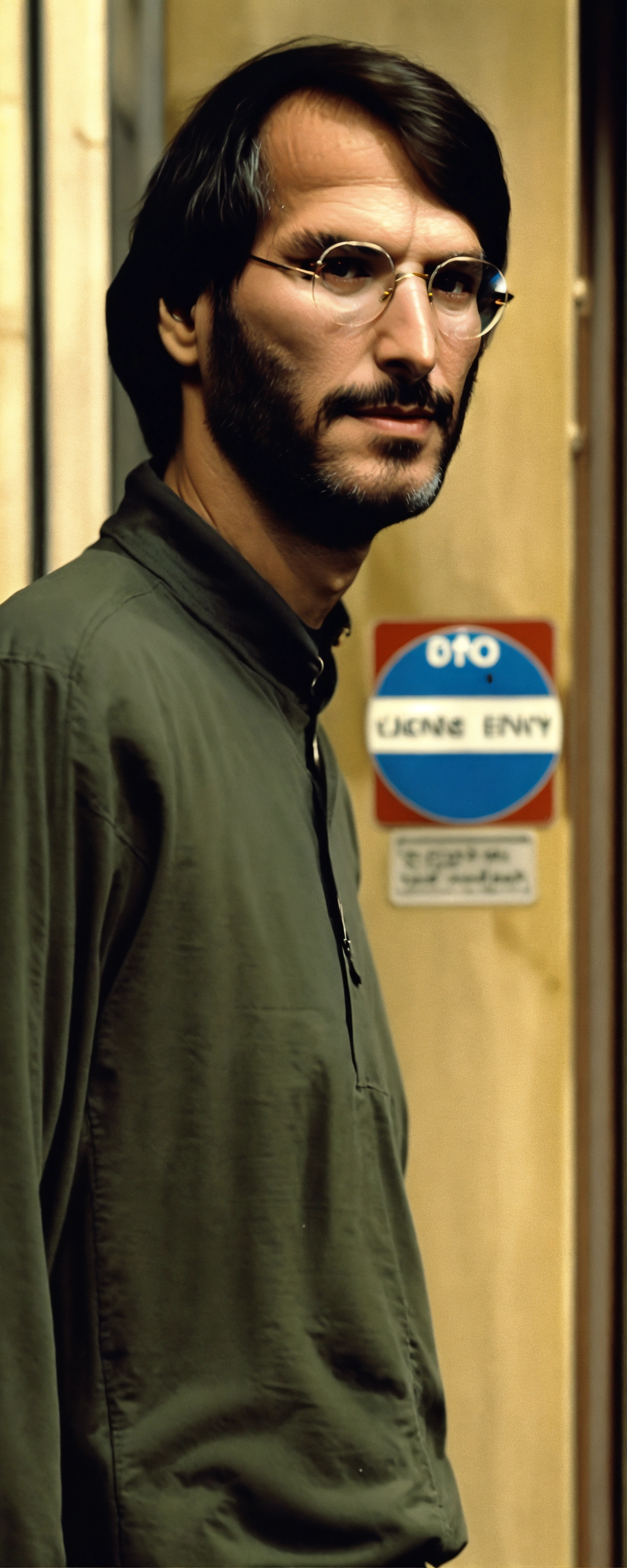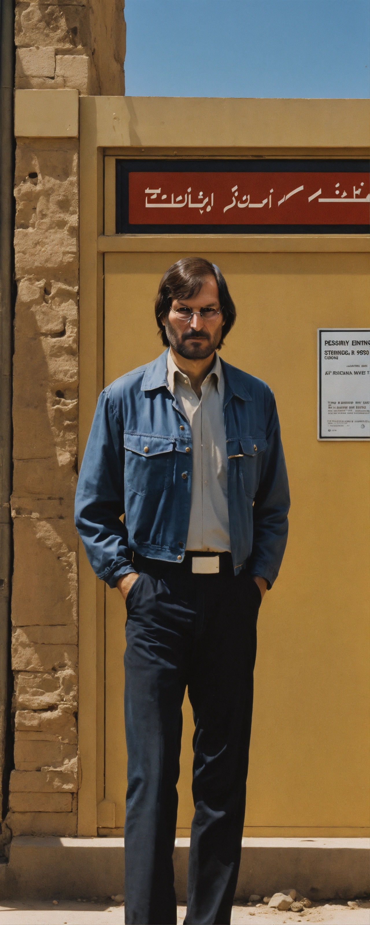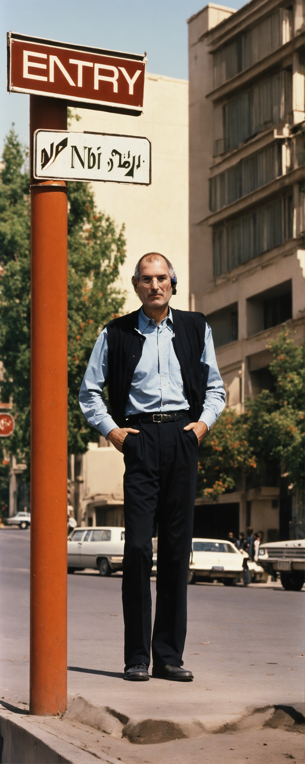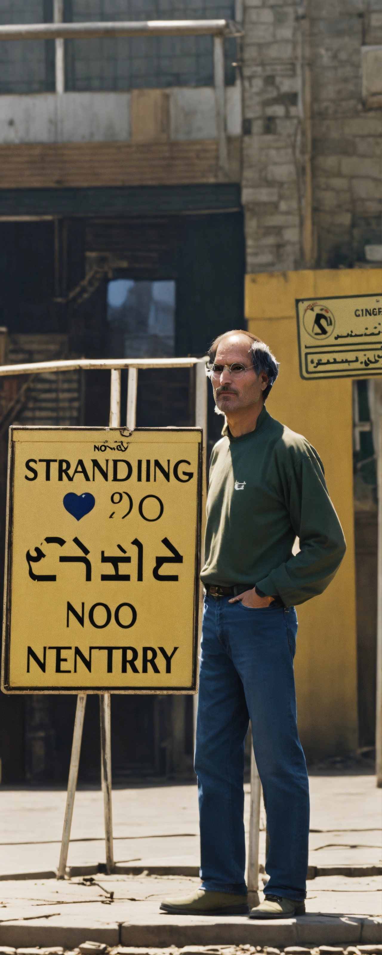 Steve jobs tehran 1980 standing near no entry sign realistic 4k