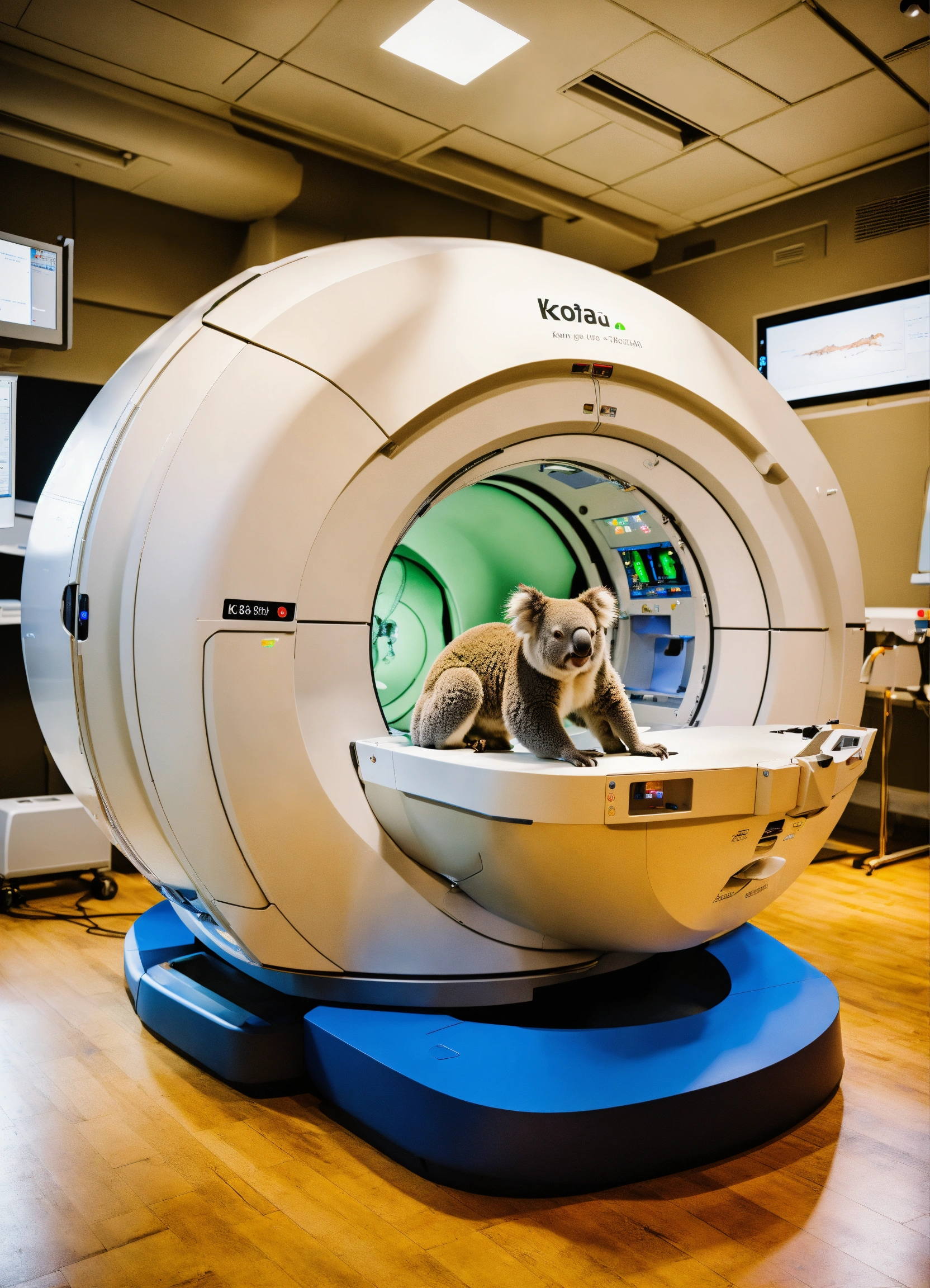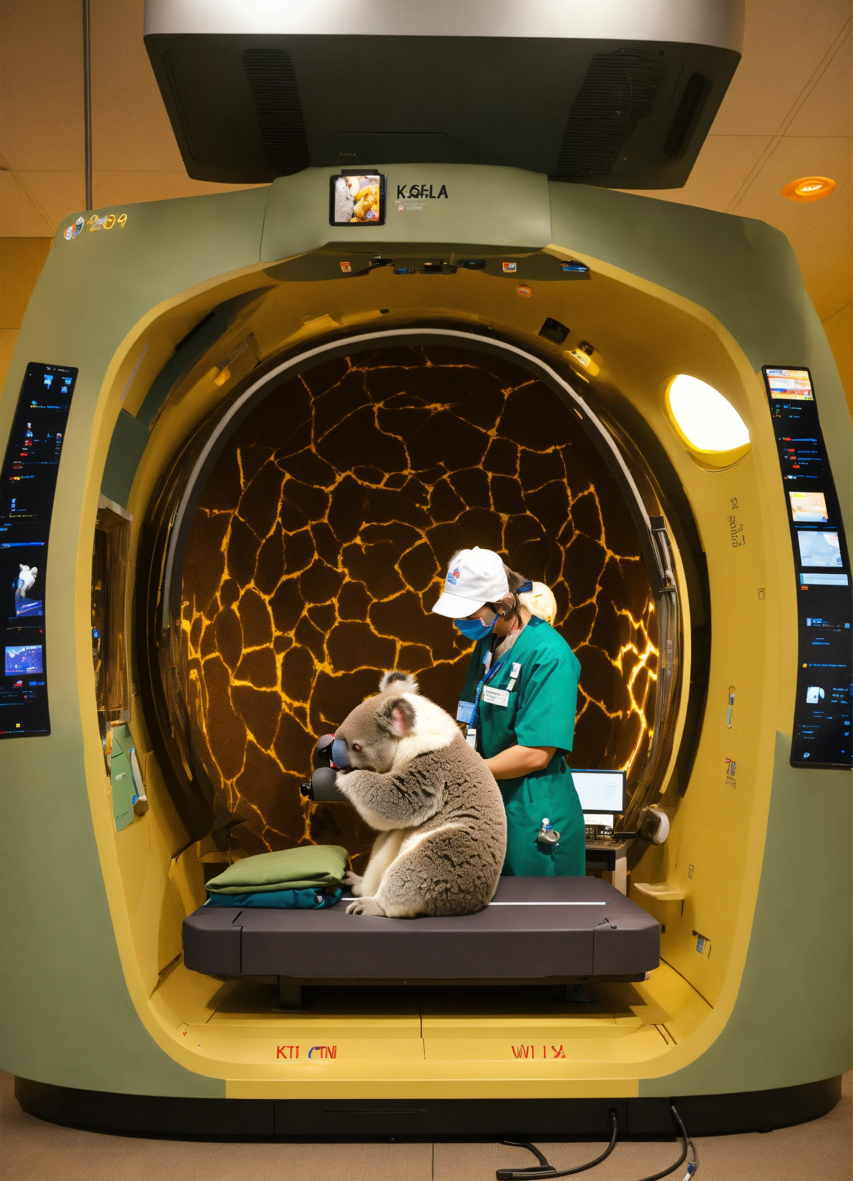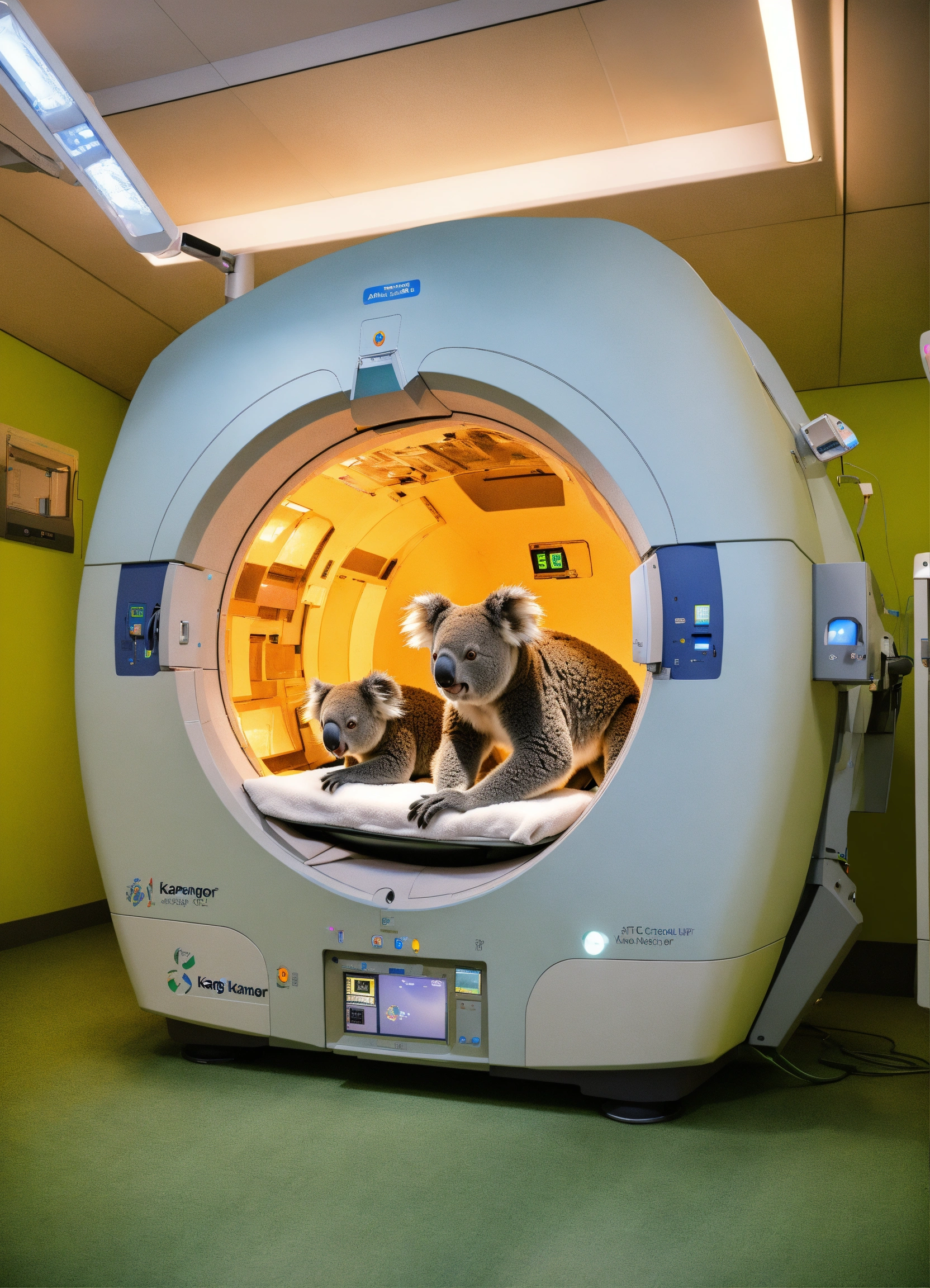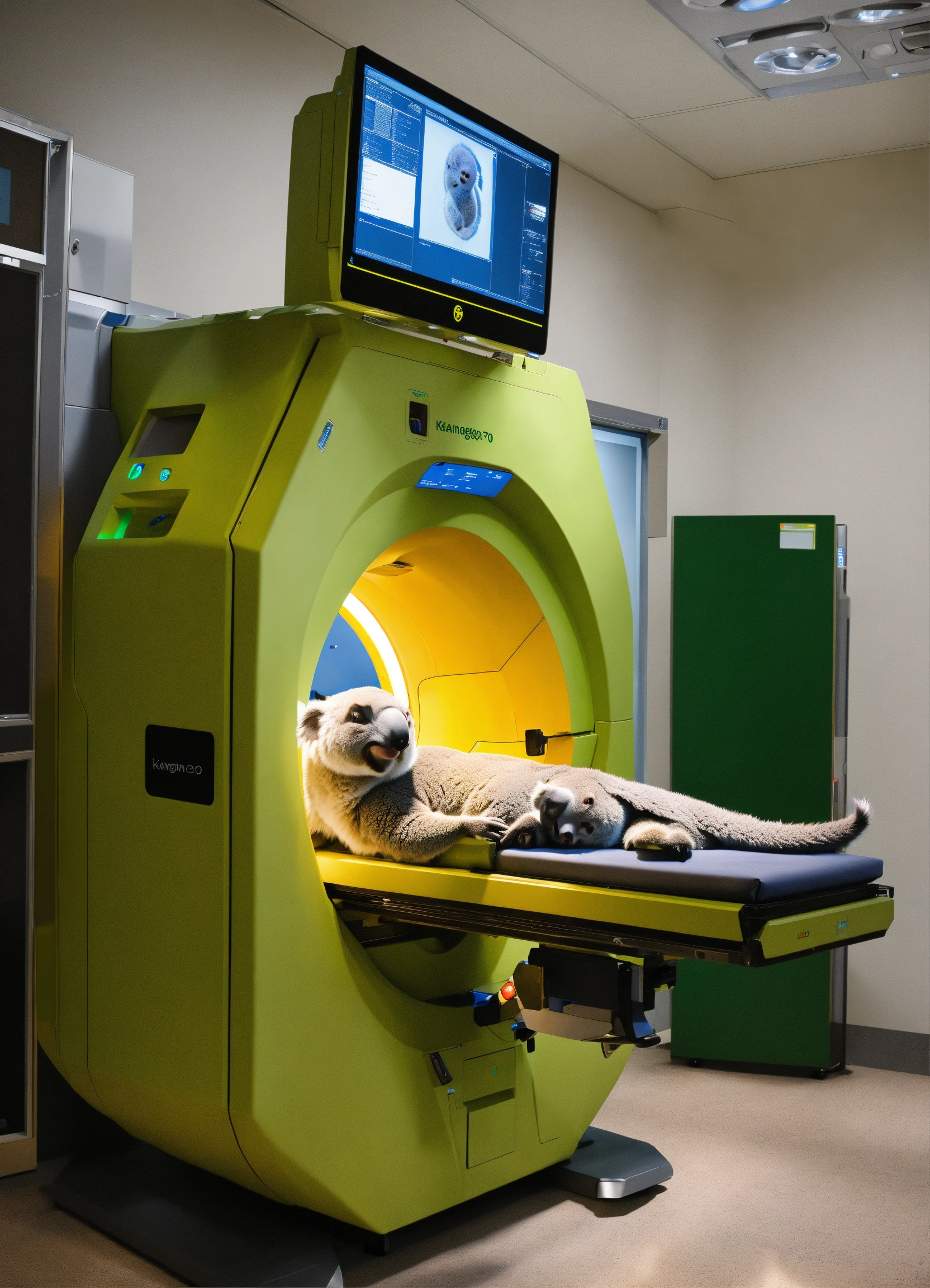 A photo-realistic ct scanner staffed by a kangero and a koala
