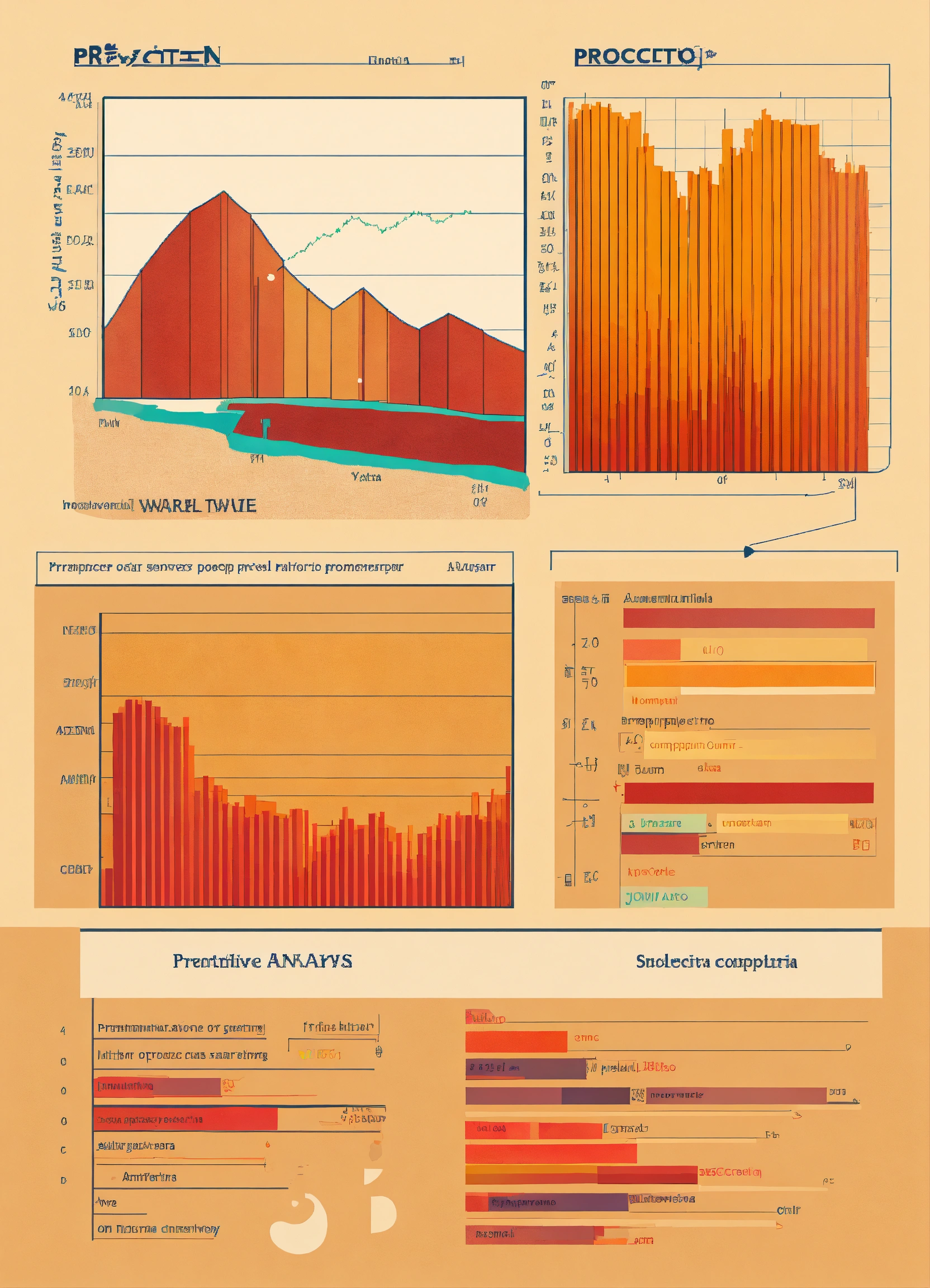 An image illustrating the the concept of predictive analysis with data visualization graphs predictive models and computer, warm colors