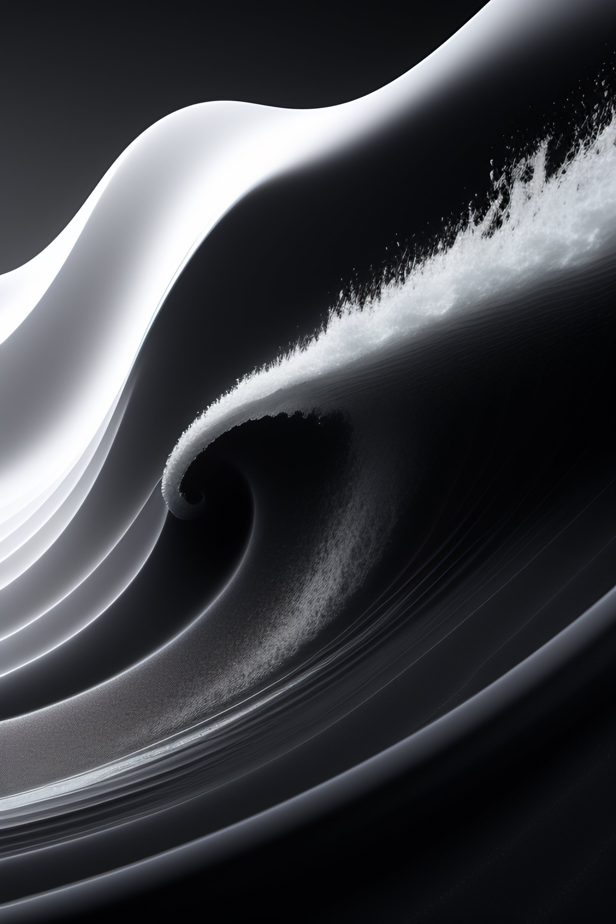 High quality minimal wallpaper, transparent elegant caustic 3d waves, black & white, black background, 8k, filmic