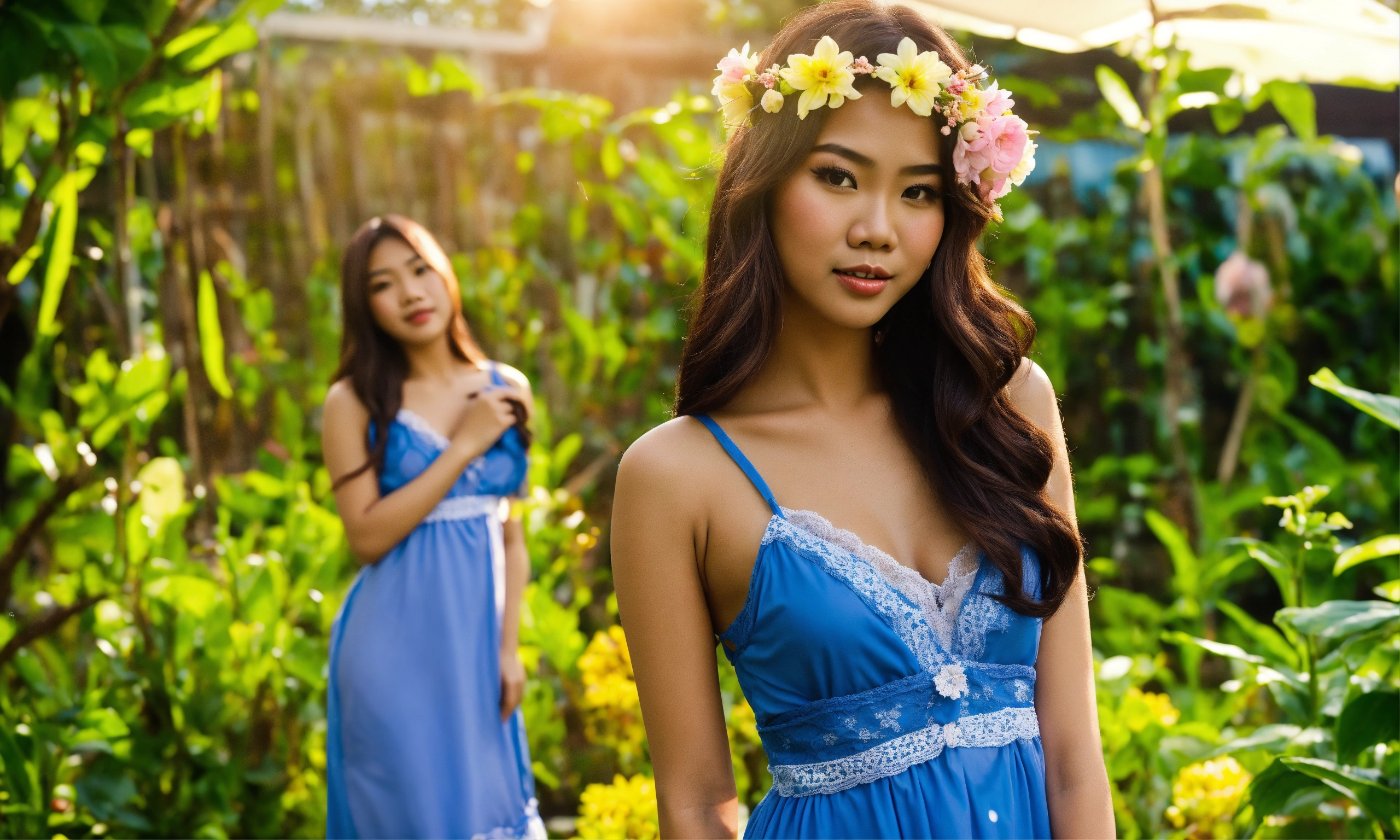 Cute filipinas wearing nighties in the garden