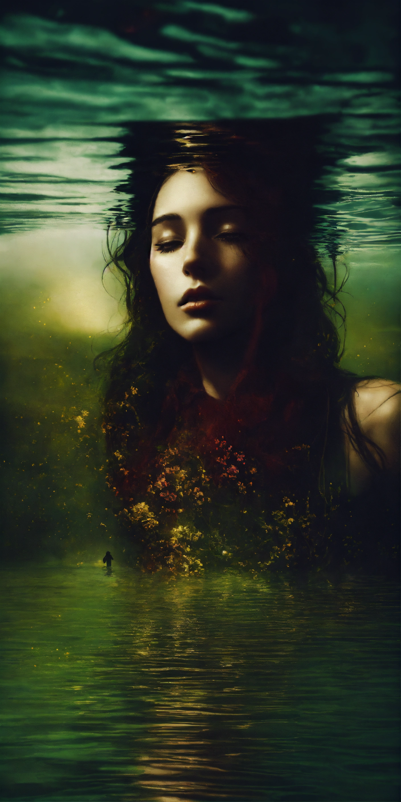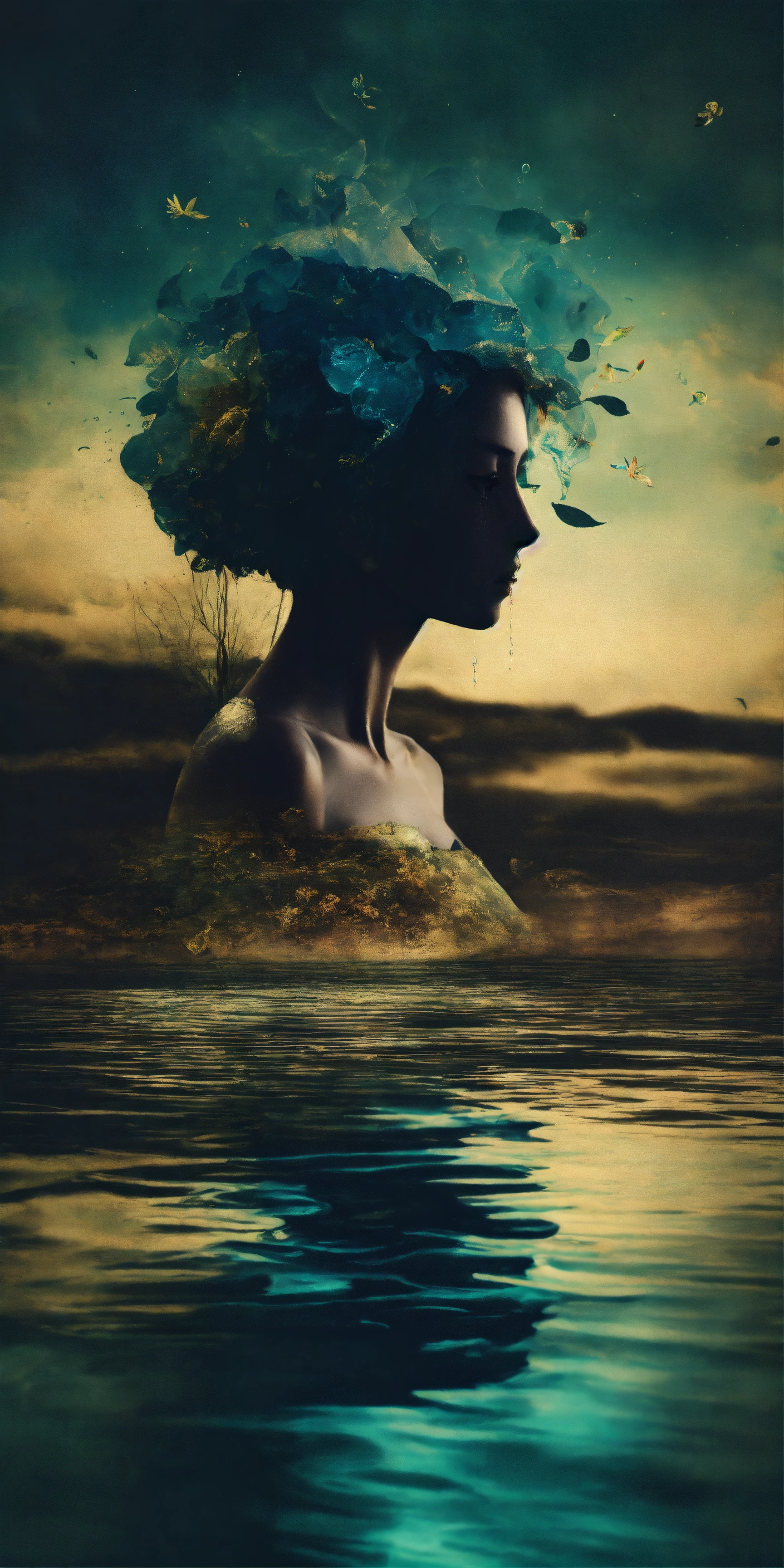 Surrealism dark emotional and romantics paimt and water double exposure textured
