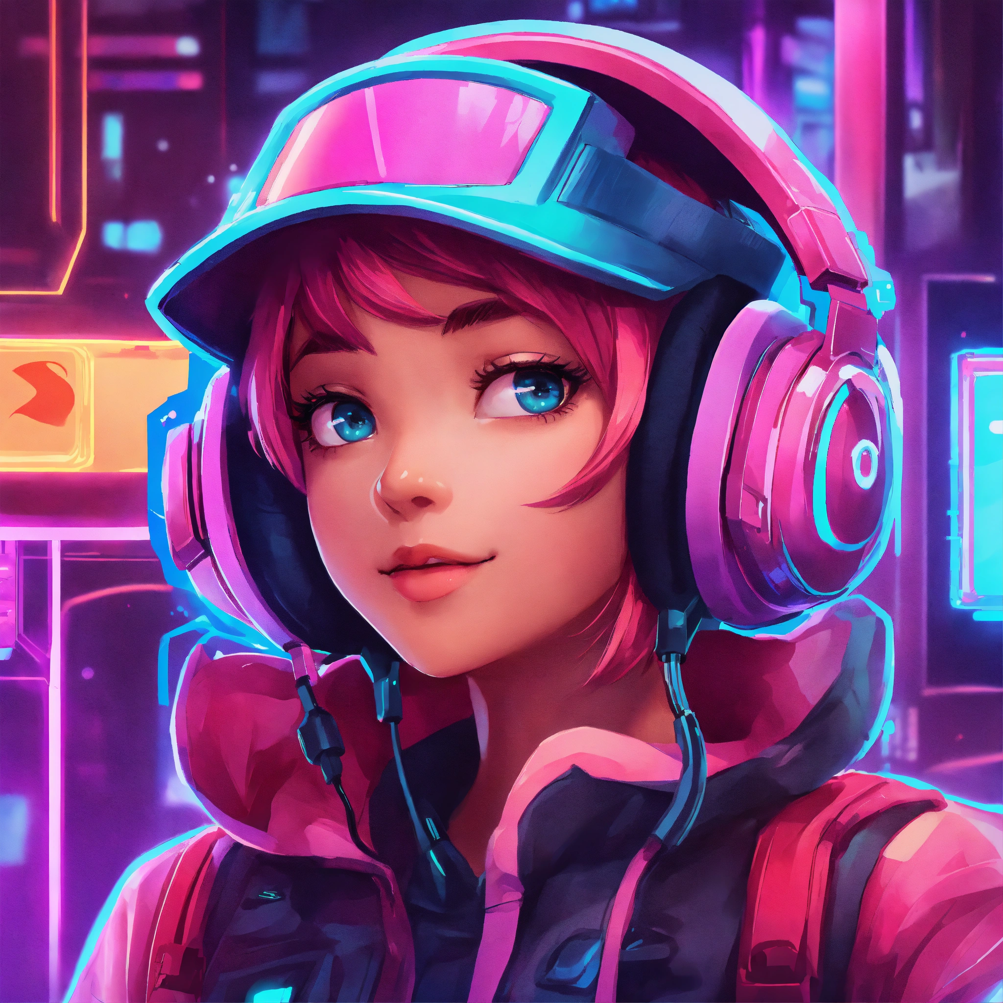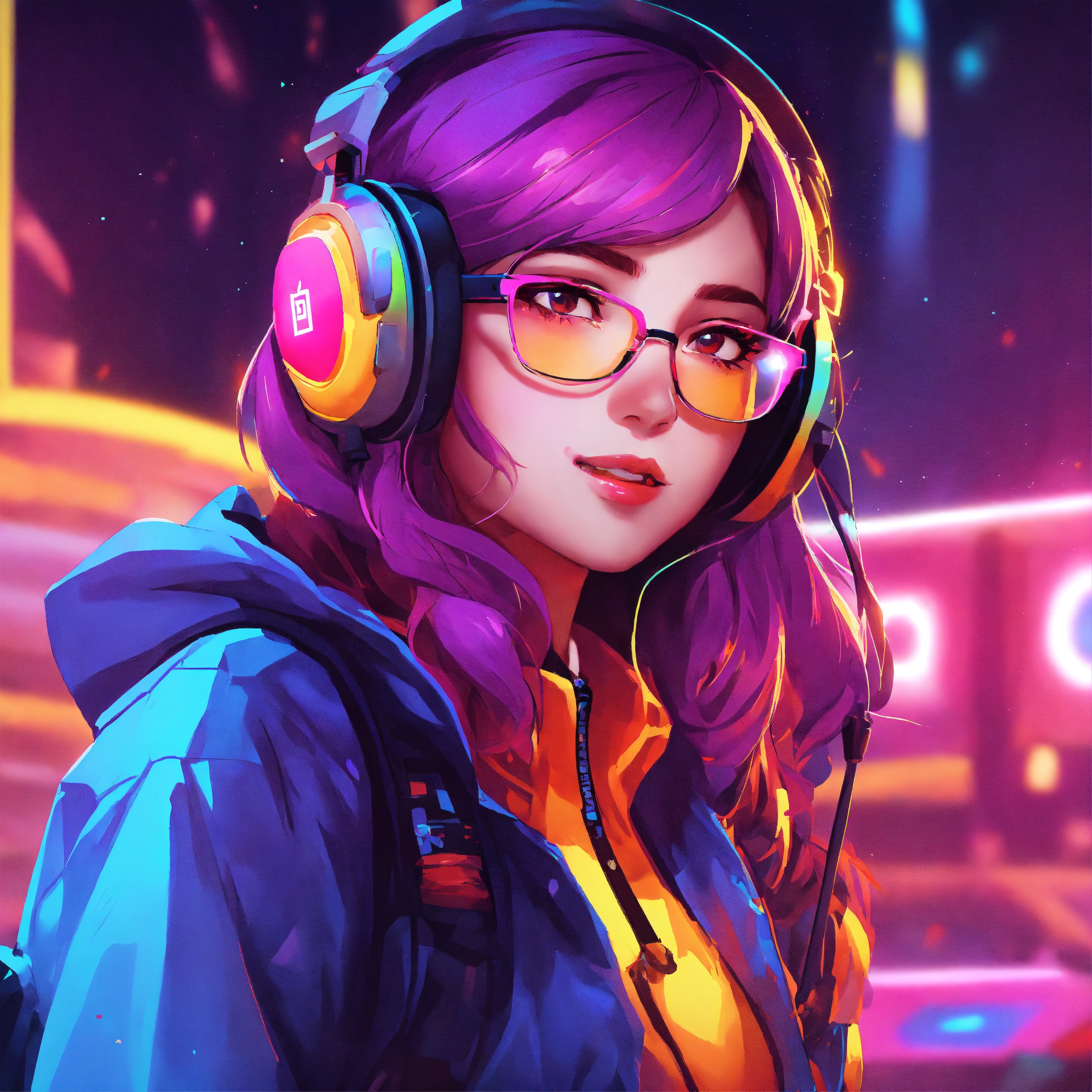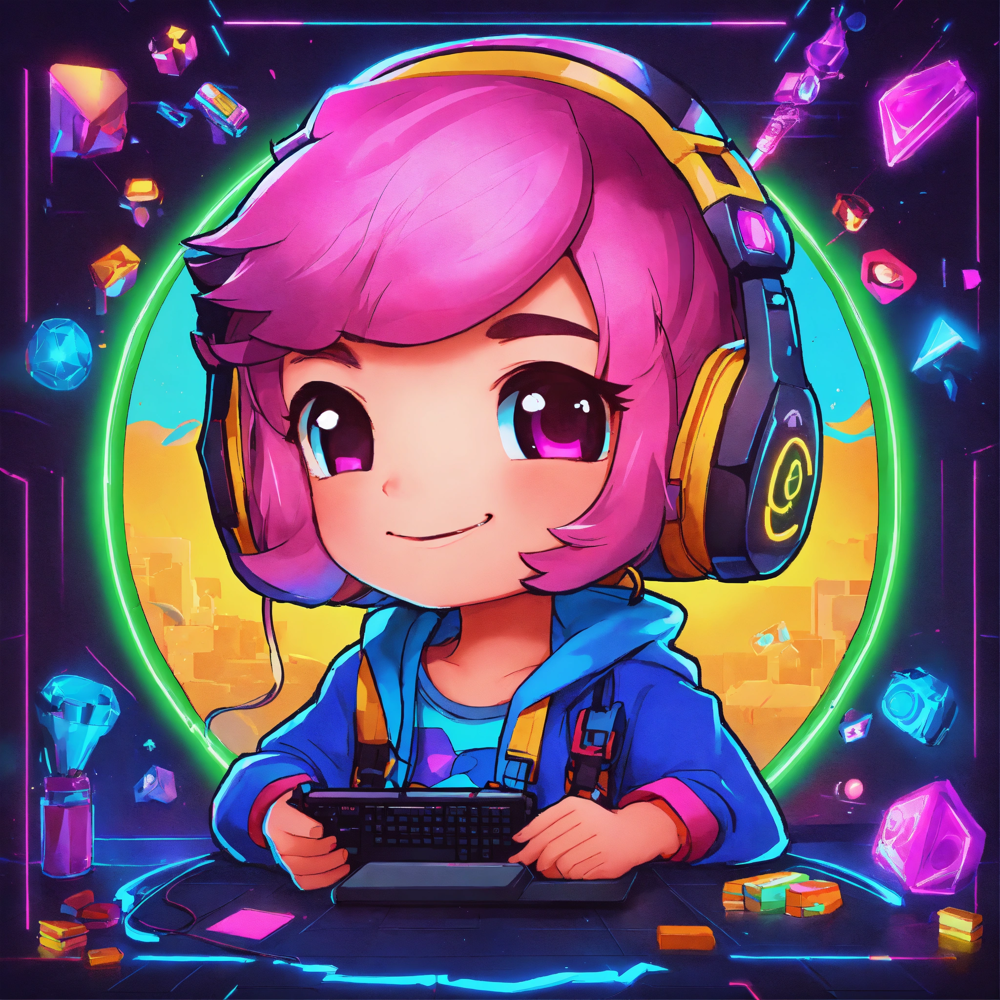 Design a 98x98 profile picture for a youtube gaming channel that skillfully merges gaming and education, with a centered neon chibi gamer. utilize a minimalist art style with a dynamic and chaotic backdrop featuring vibrant neon colors and educational iconography, glow lighting. create an engaging image that embodies the spirit of both gaming and learning, all within the confines of a small square frame. the profile picture should effectively convey the channel's harmonious blend of entertainment and education without the need for text.