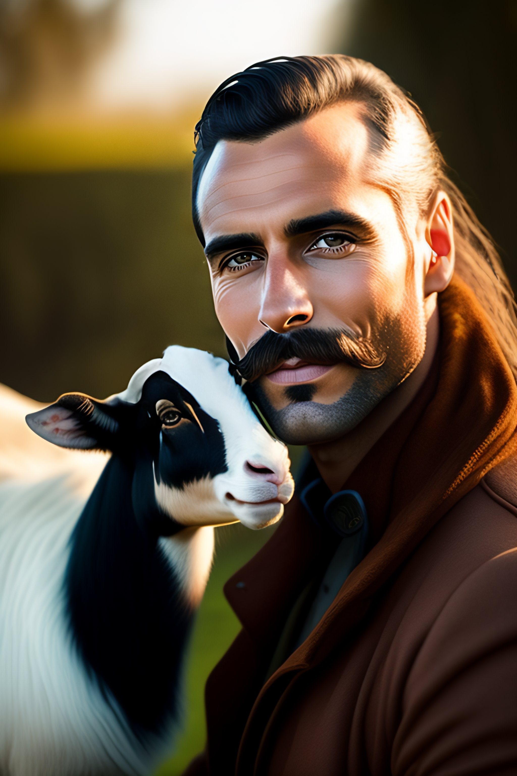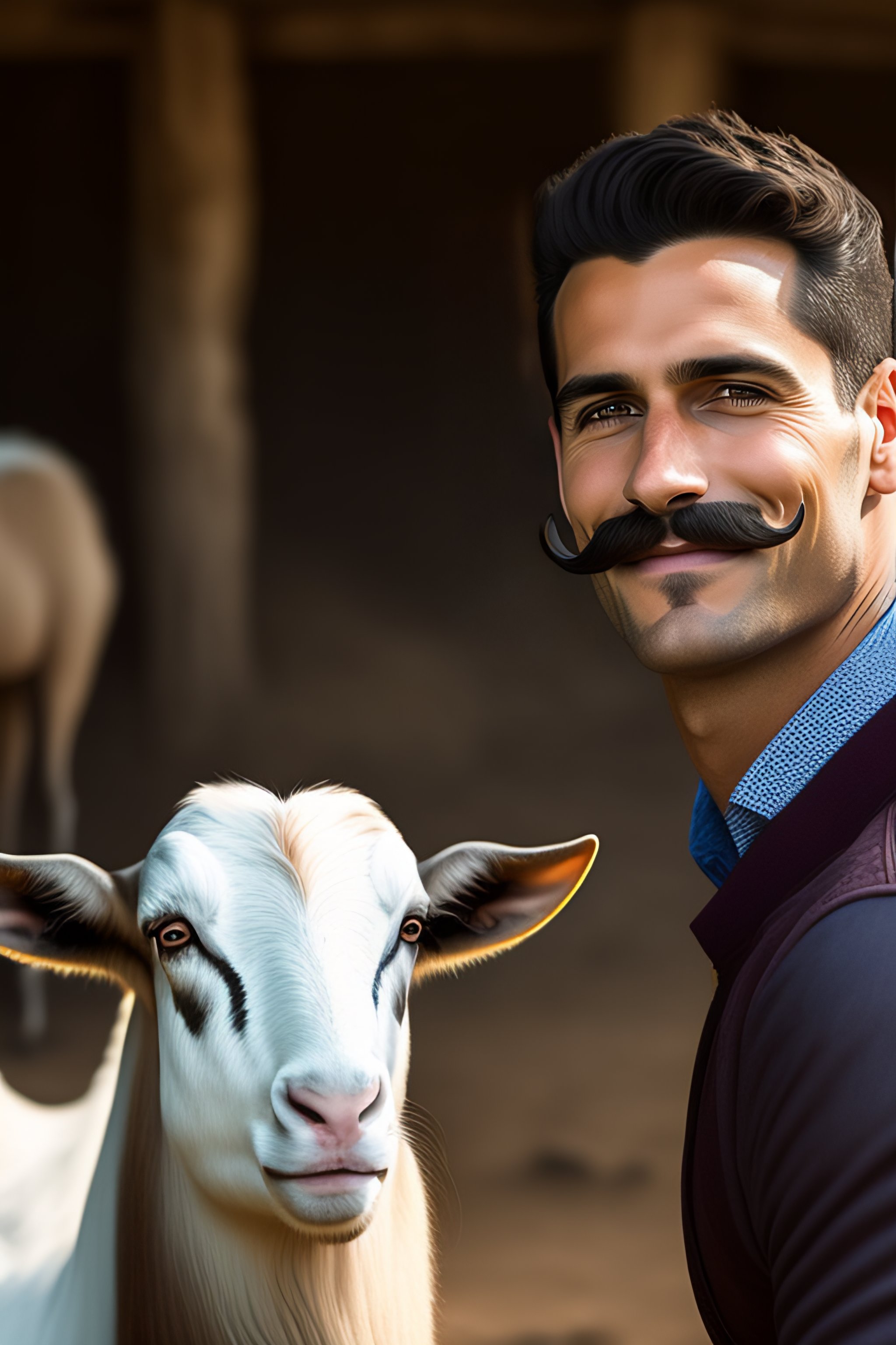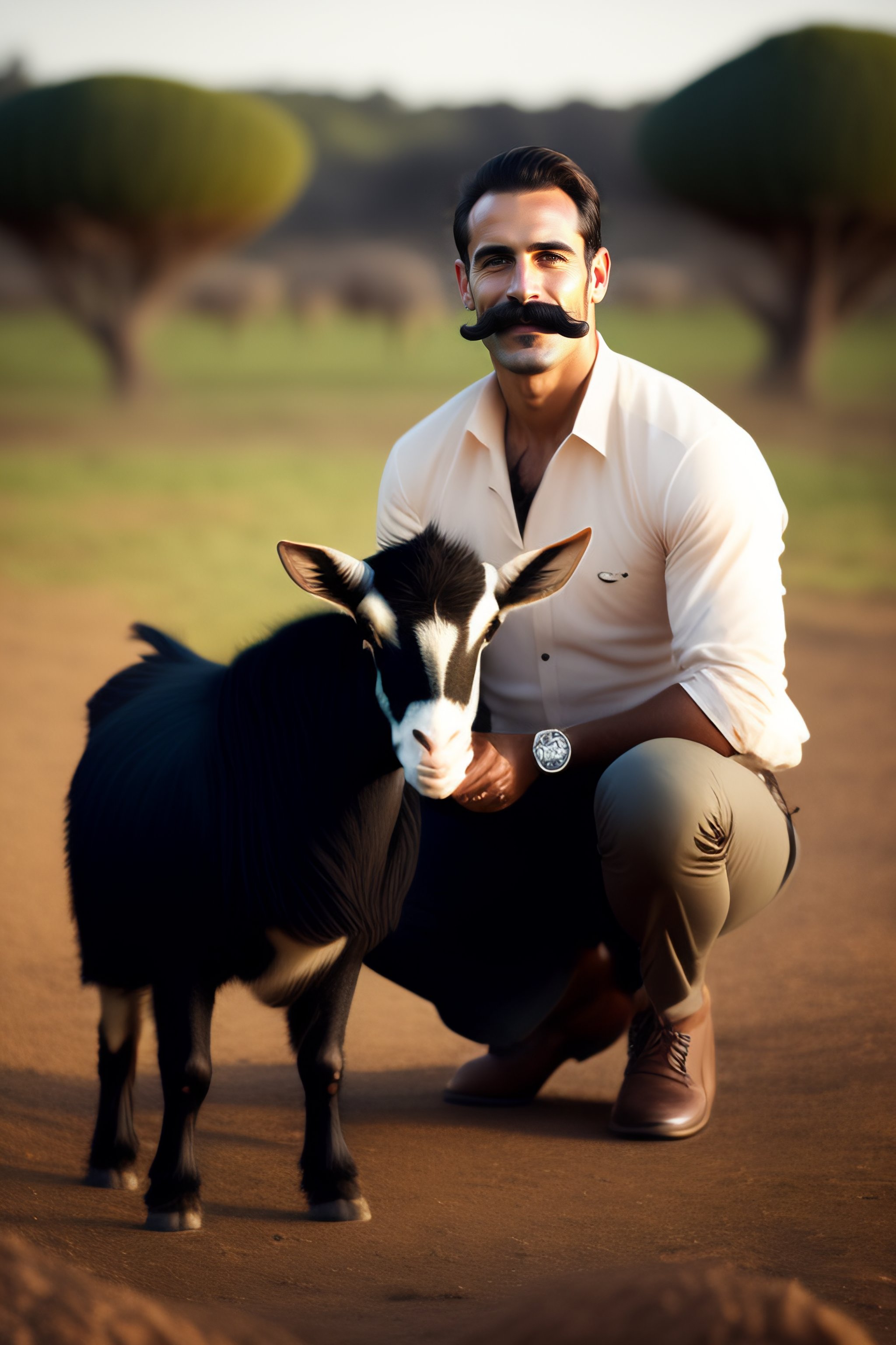 Marco monteiro not being gay with a moustache and no goatee playing with a goat