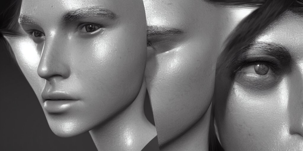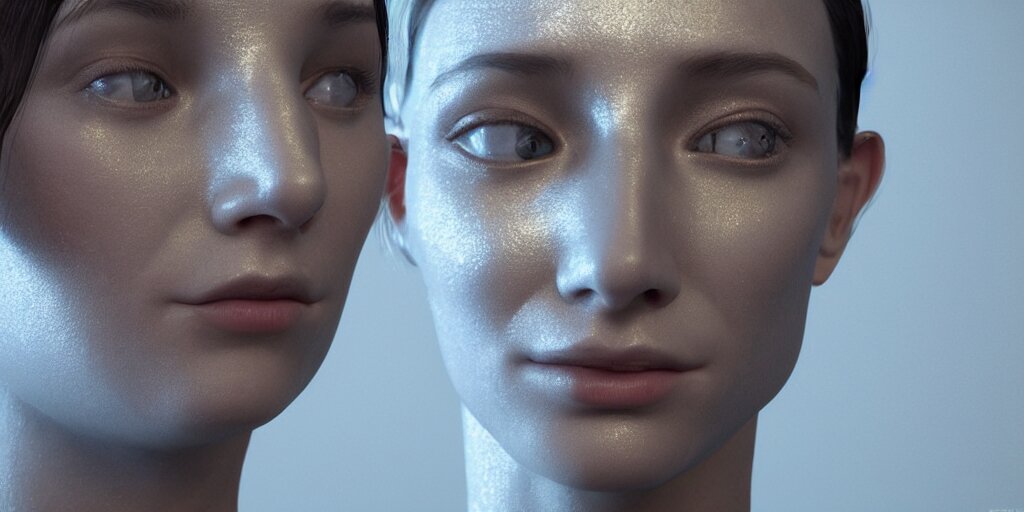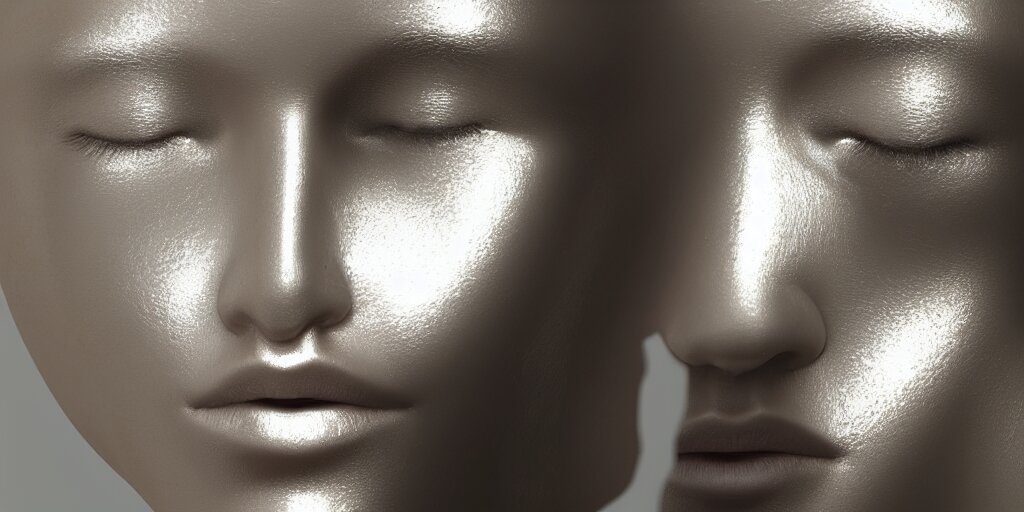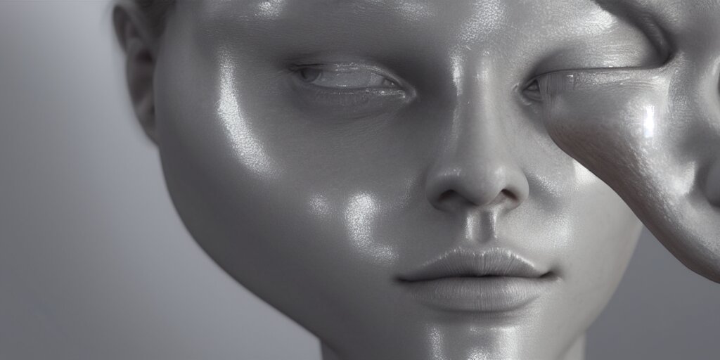 Human face made of perfect mirror, silver mirror, mirror skin, reflections, reflections, 3 d rendering, hdr, hdr, octane rendering, maya rendering, path tracing, occlusion, global illumination, sun flares, vsx, vsx, cgi, smooth shadows, insanely detailed, 8 k, high resolution, kinematics.