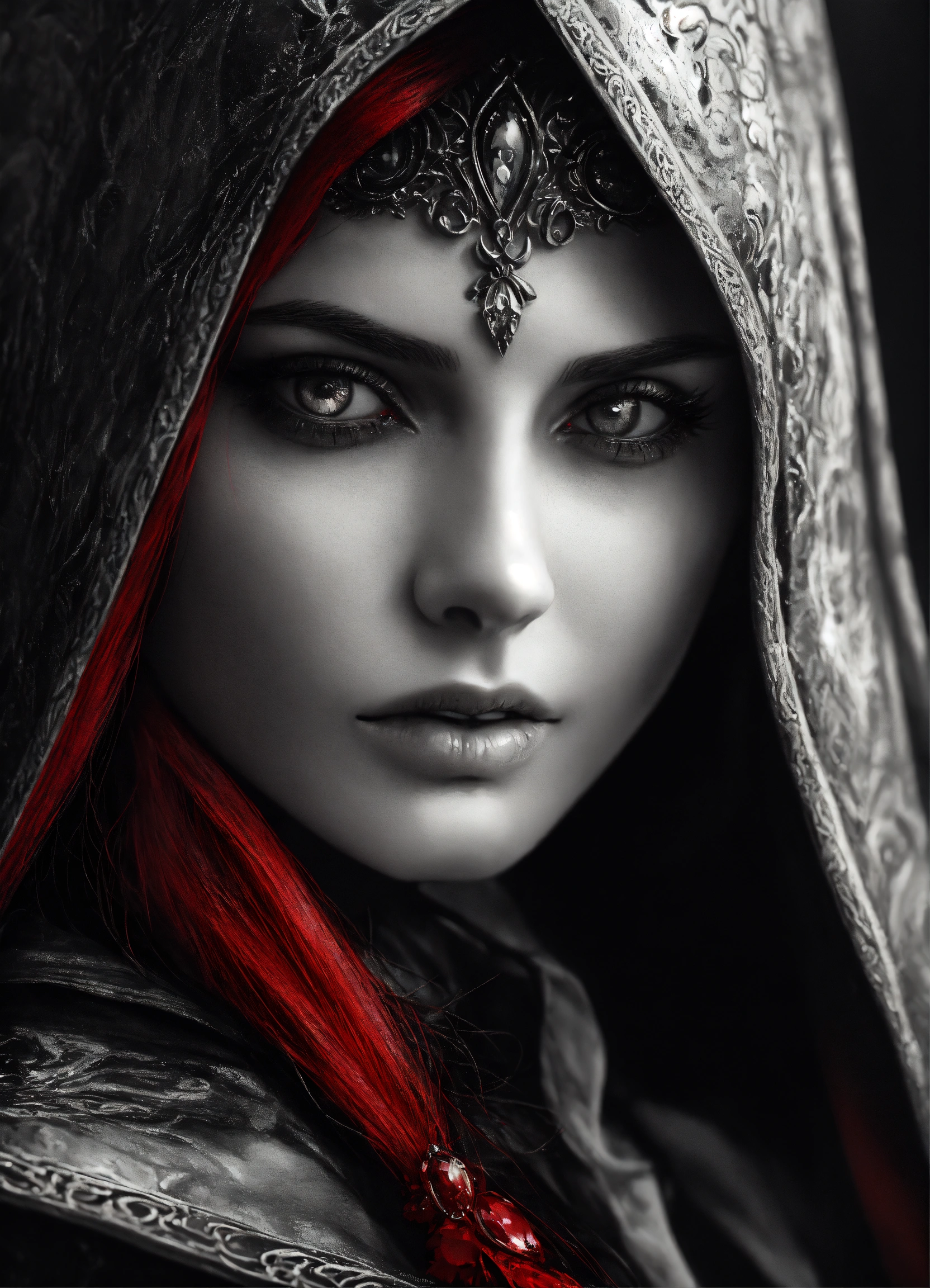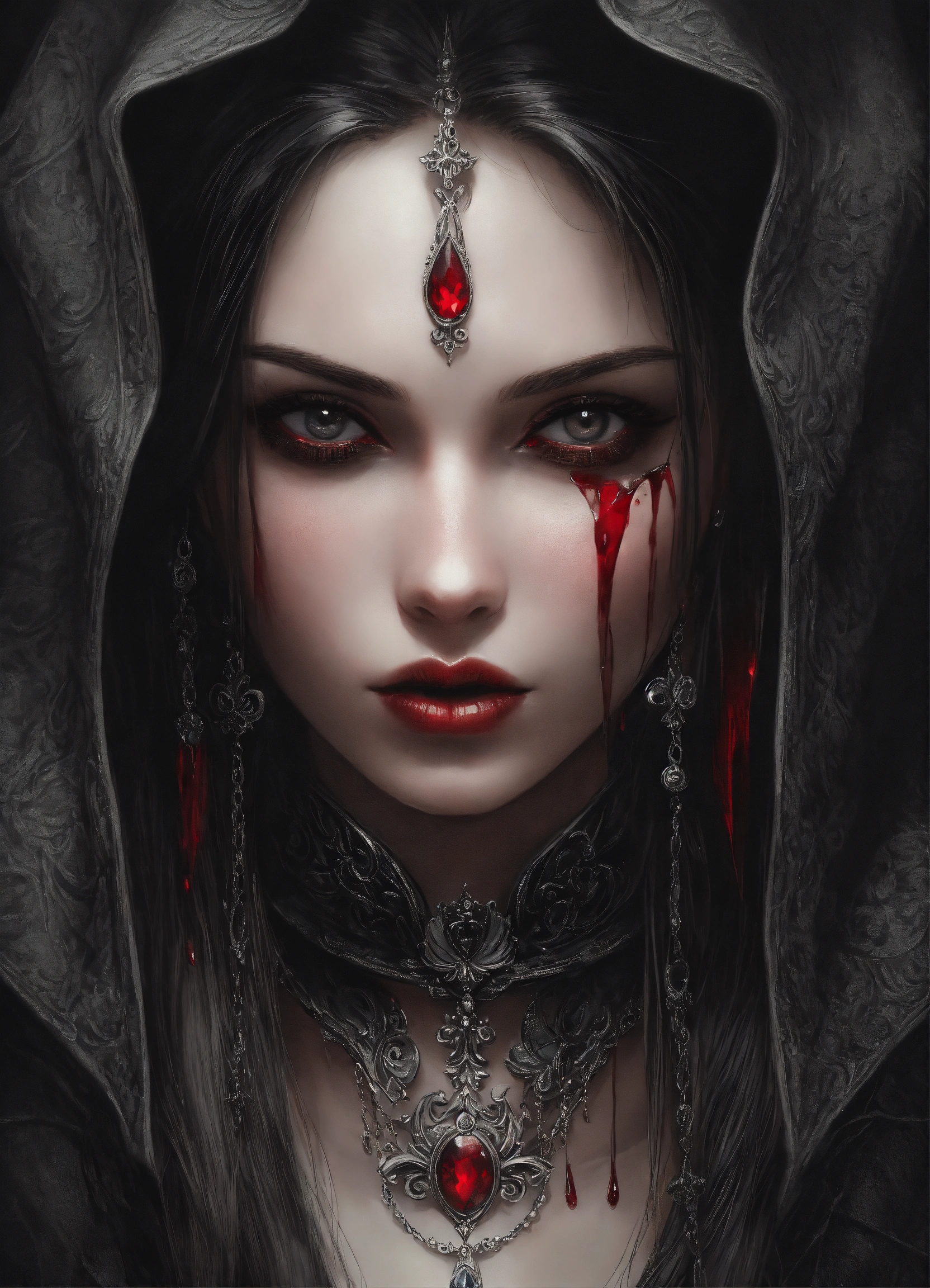 Black and white, close up, gothic, artgerm, beautiful, woman, desperate look to the camera, red tears, anne stokes art, 8k, detailed