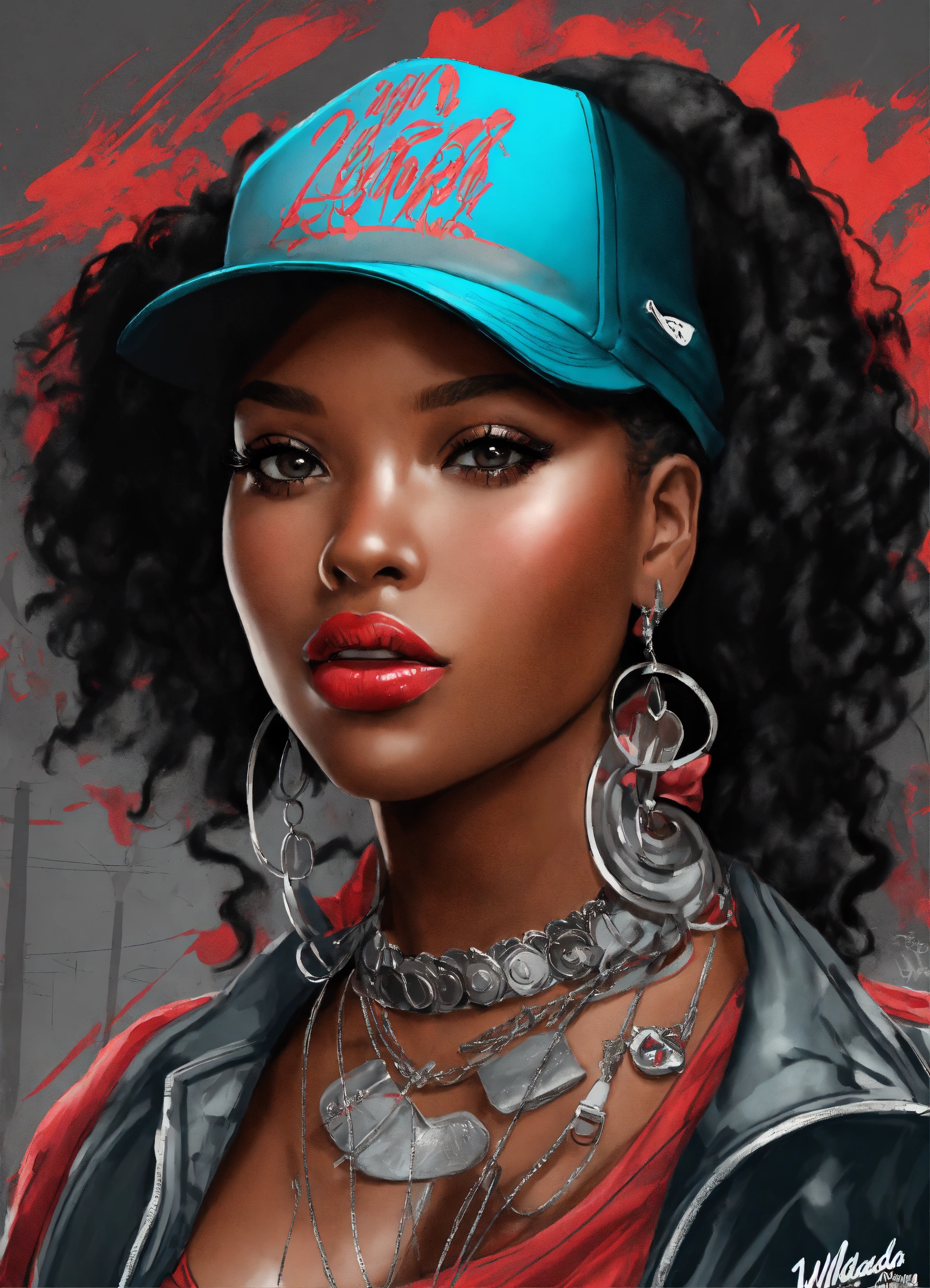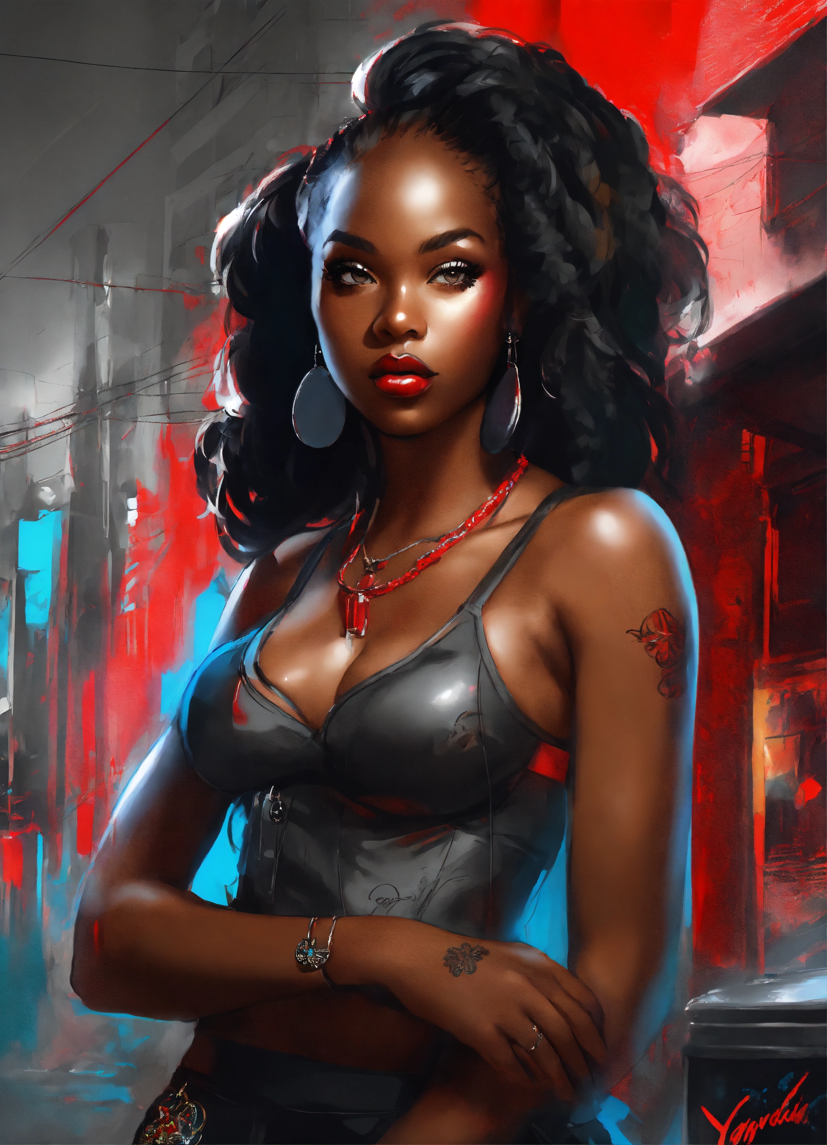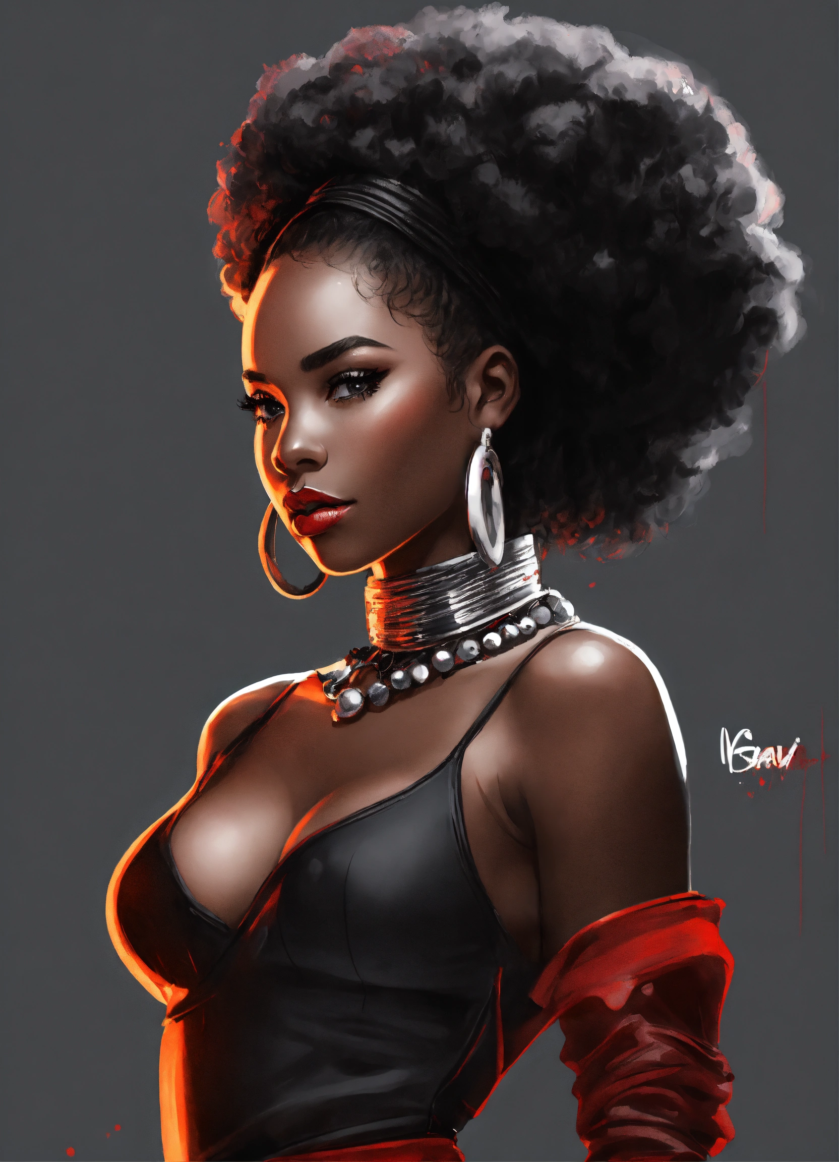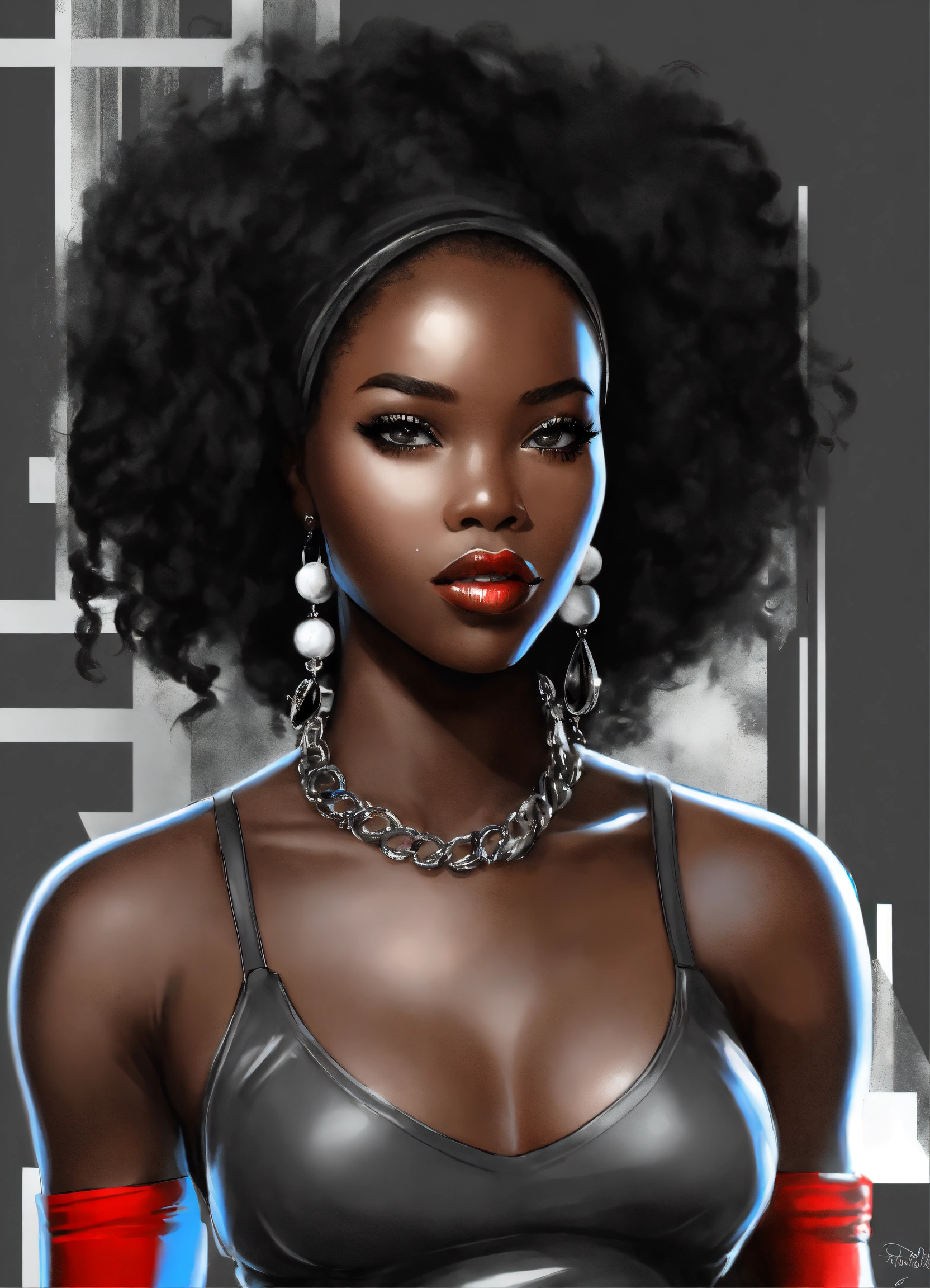 Black beauty girls drawn by ayanda, in the style of grayscale with pops of color, iconic pop culture caricatures, digital airbrushing, white and red, full body, dau al set, wildstyle --v 5.0