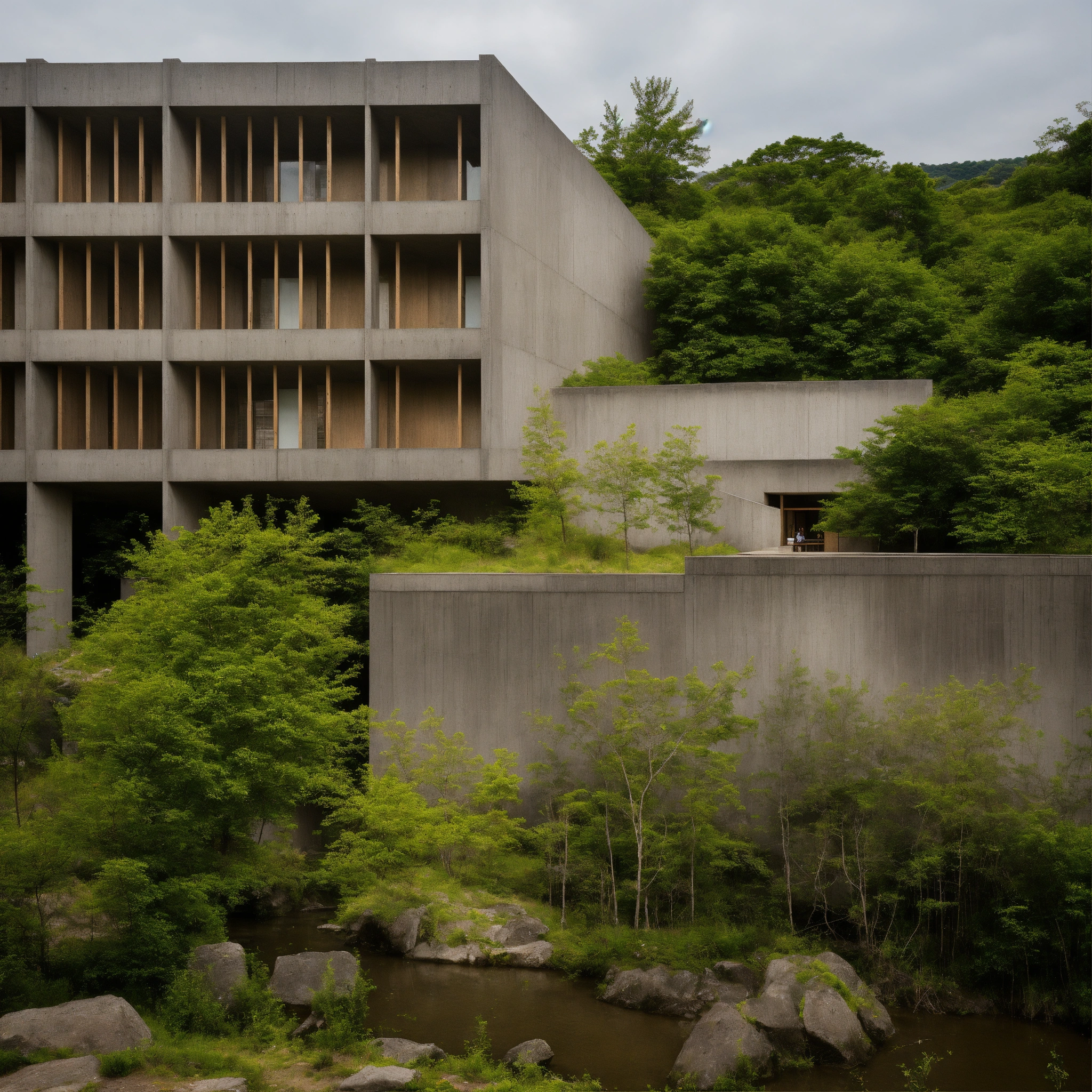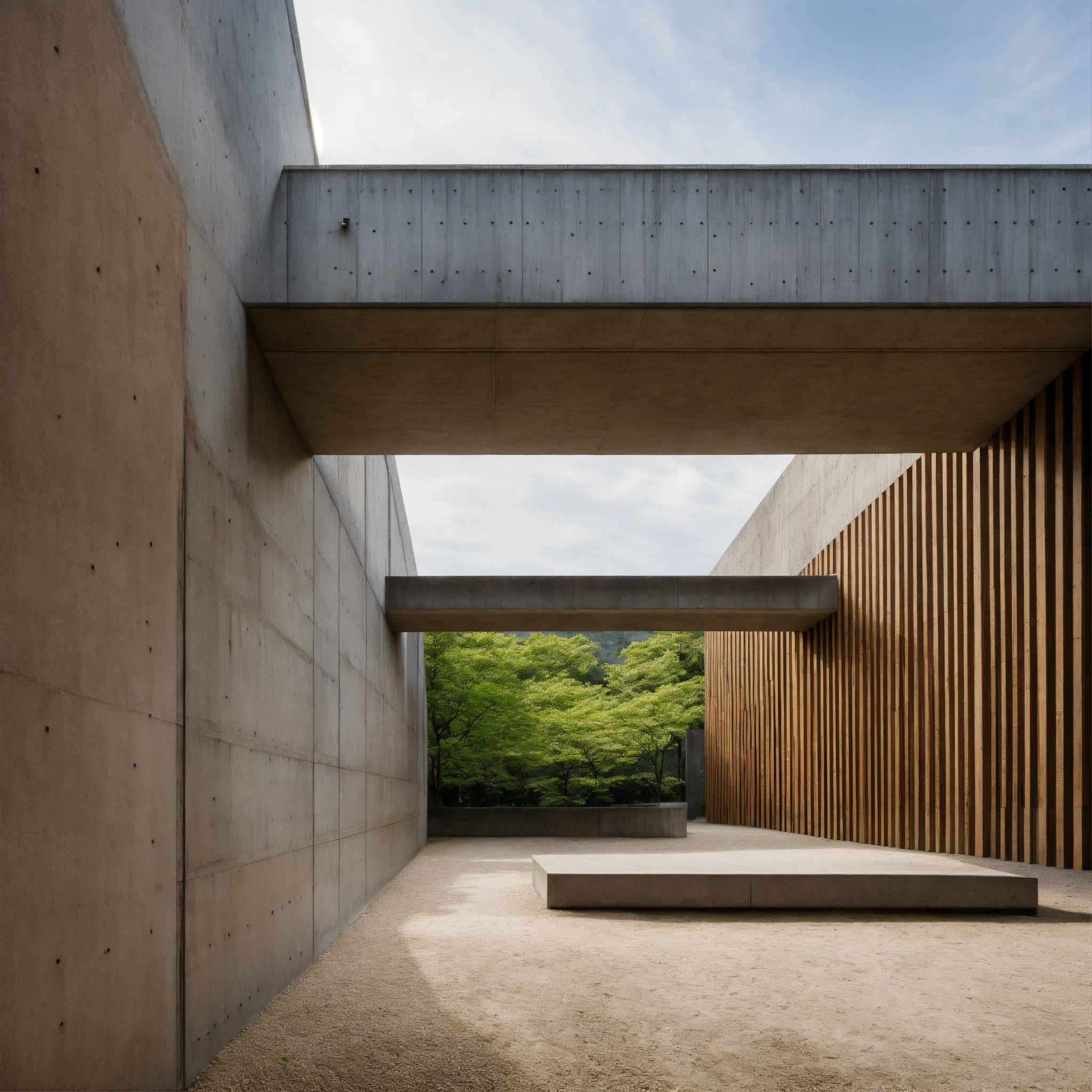 Tadao ando brutalist wood historical site in the megalopolis