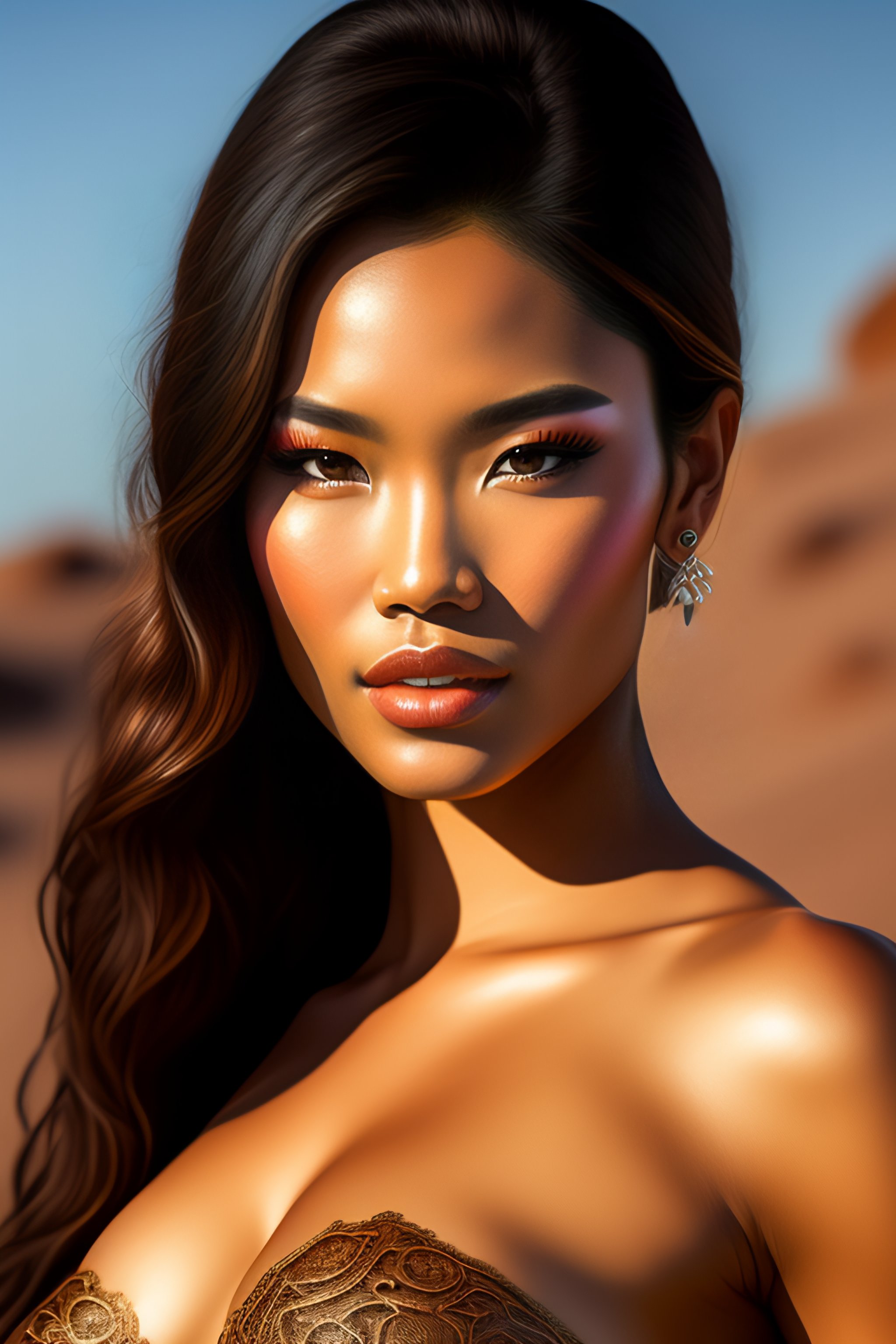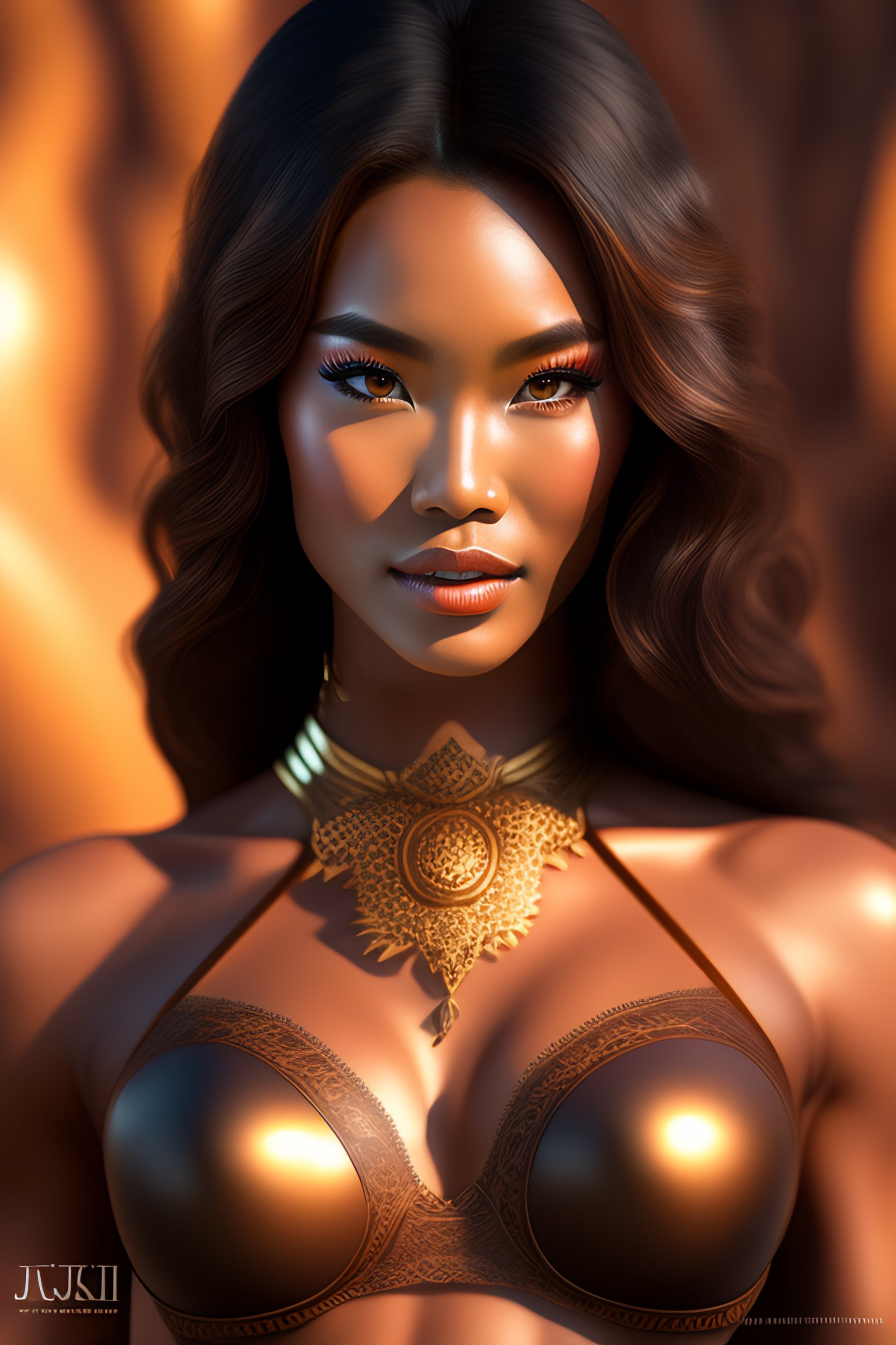 Full body, bronze lace bikini, 34d cup, a gorgeous balinese model photo, professionally retouched, muted colors, soft lighting, realistic, smooth face, perfect eyes, sharp focus on eyes, 8 k, high definition, insanely detailed, intricate, elegant, art by j scott campbell and artgerm.