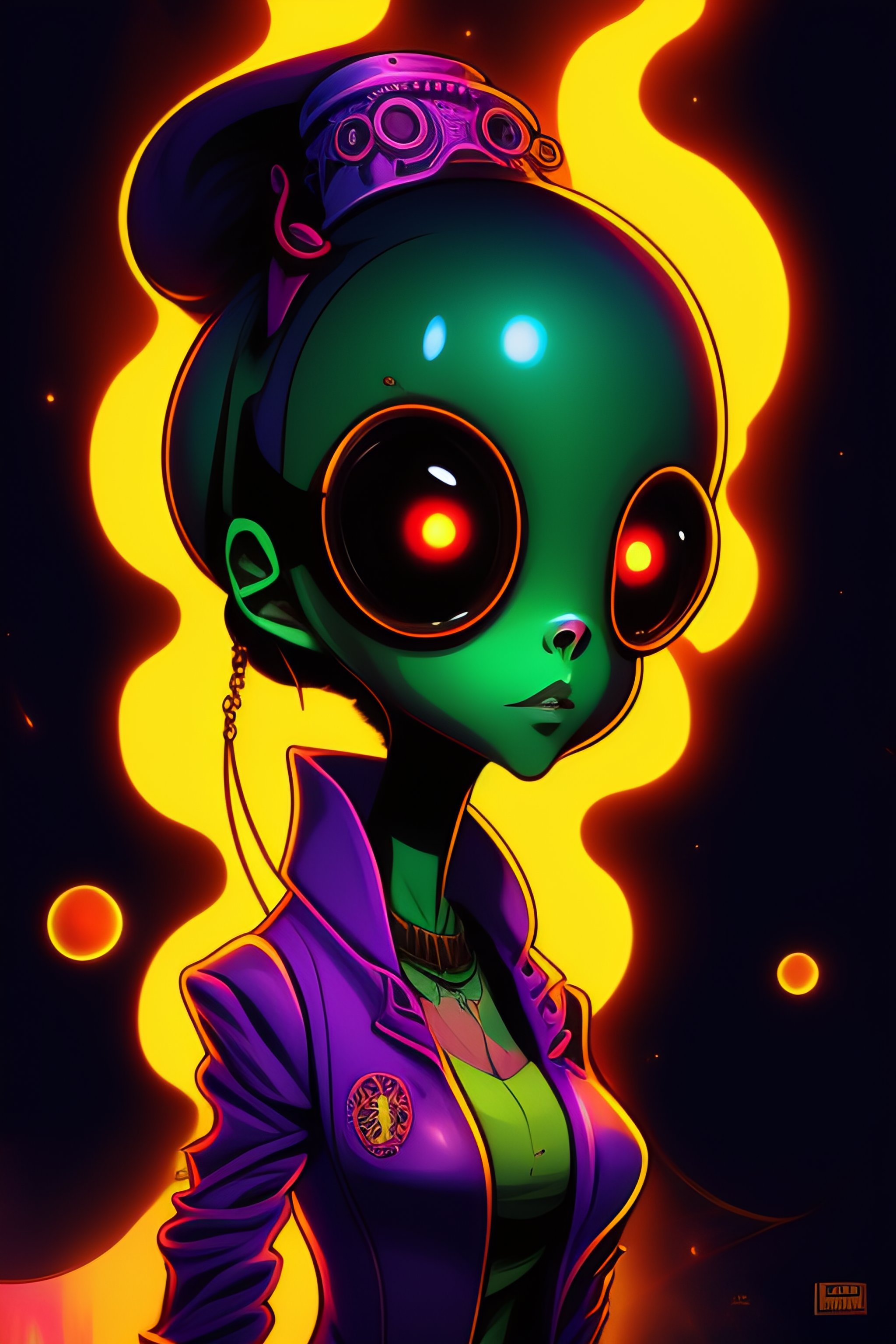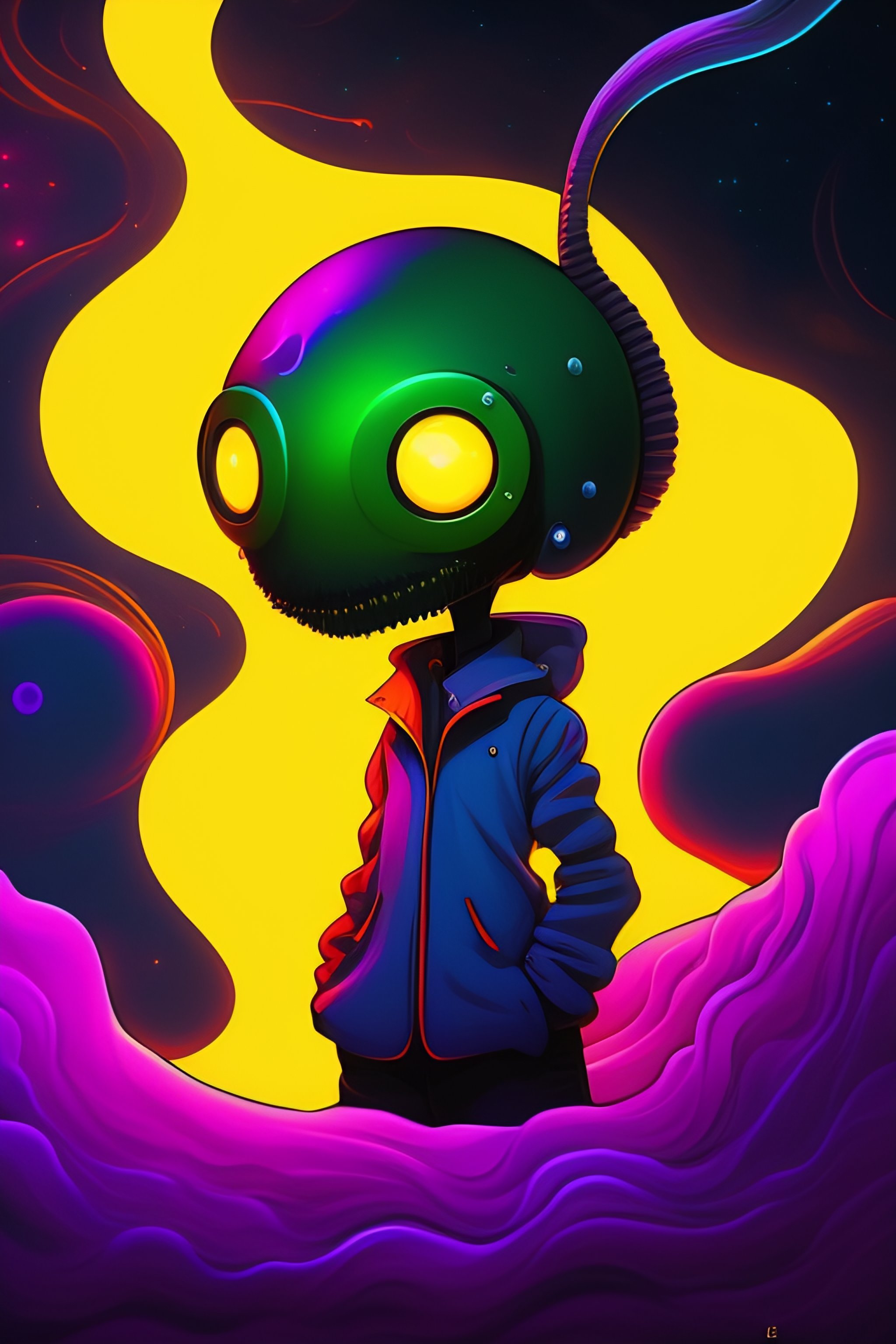 Lovecraftian alien in the style of studio gibli and jhonen vasquez, trending on artstation, chaotic lighting, optical illusion, german romanticism, flcl, 60s kitsch and psychedelia, anime