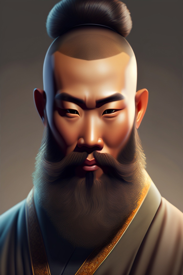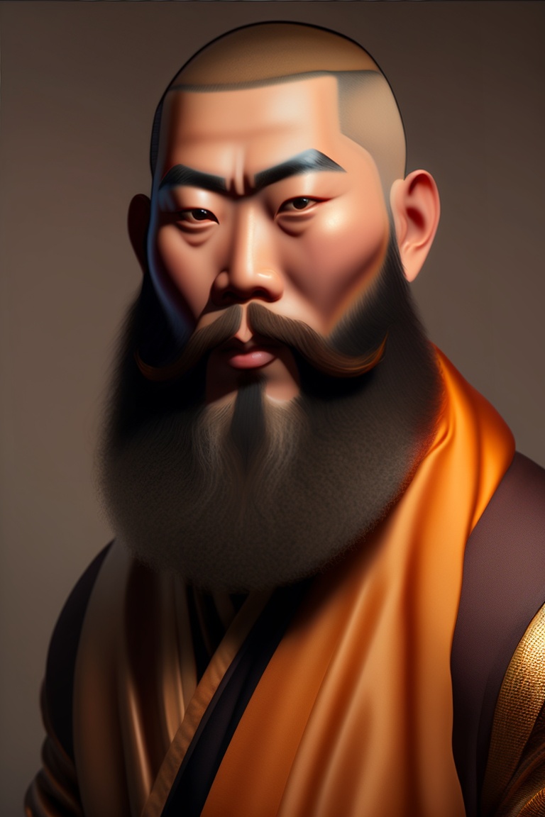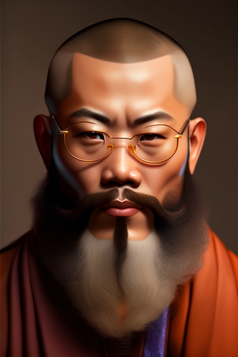 Chinese monk with beard who motivates his diciple