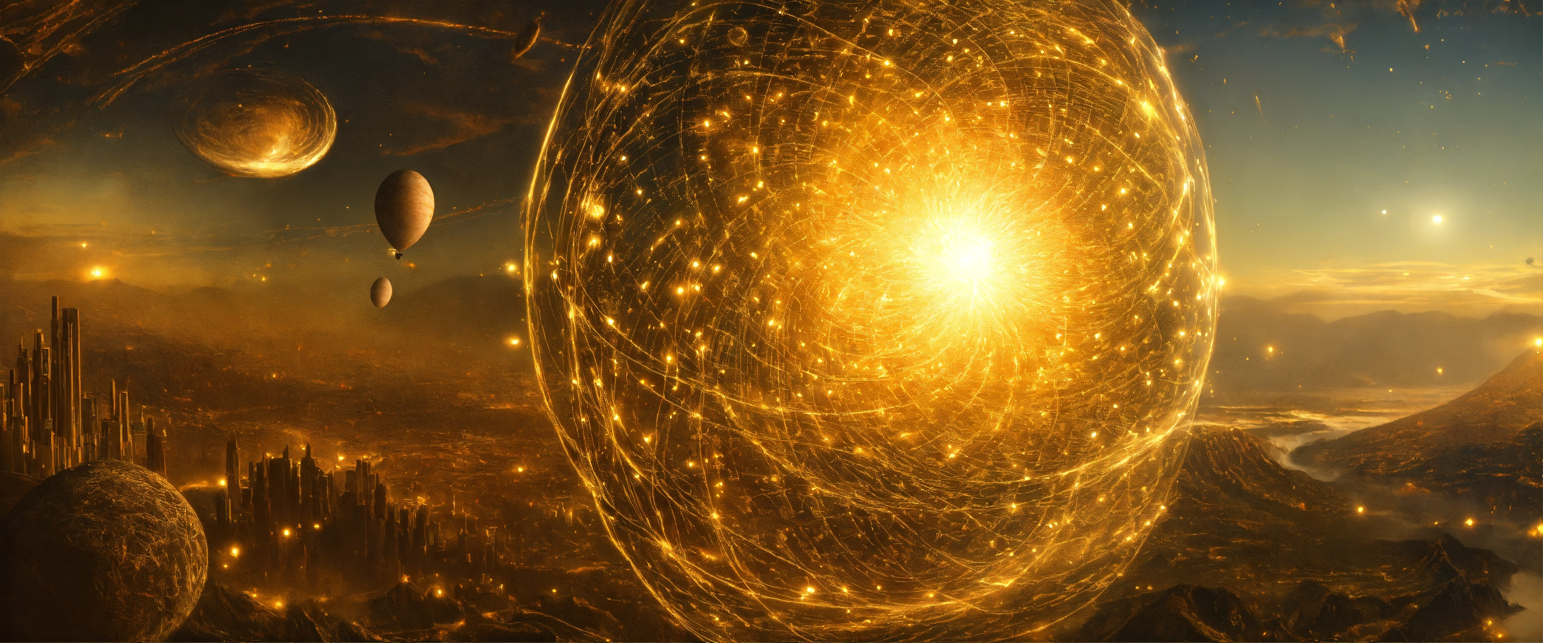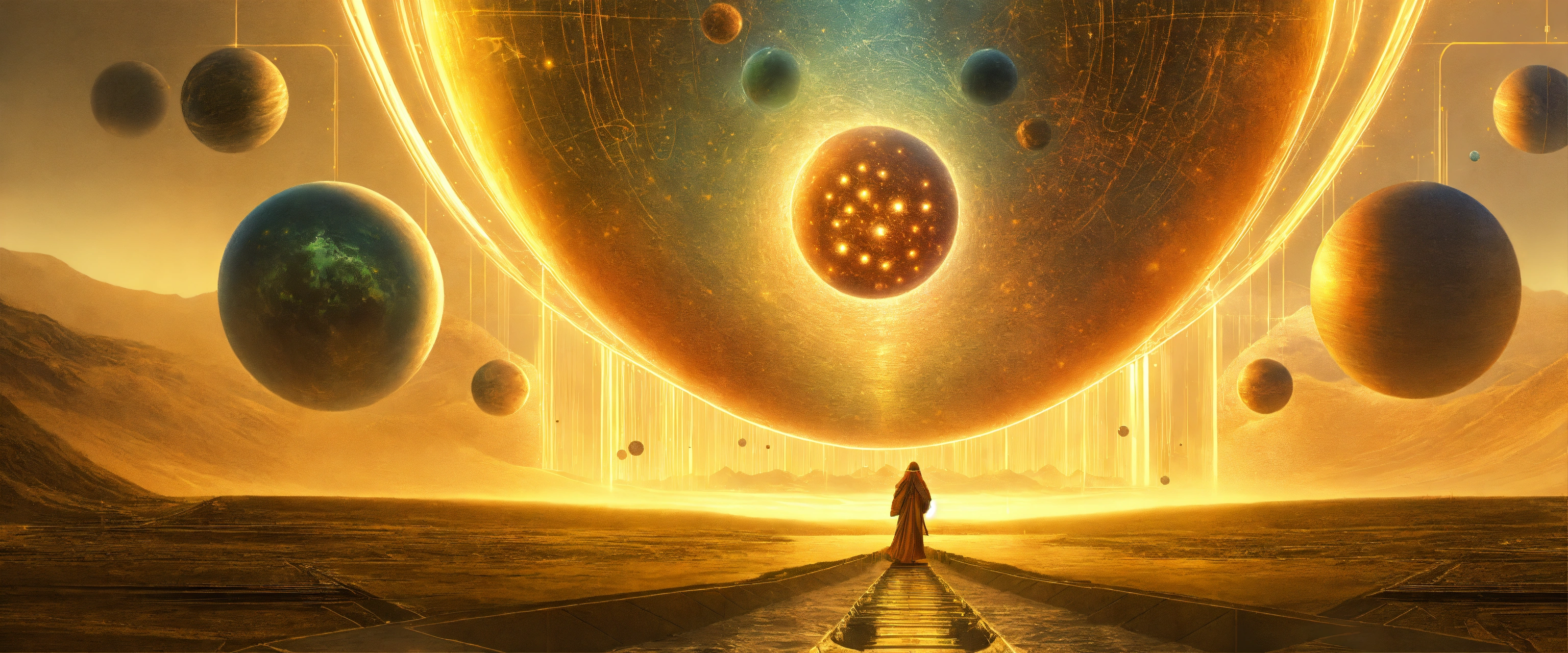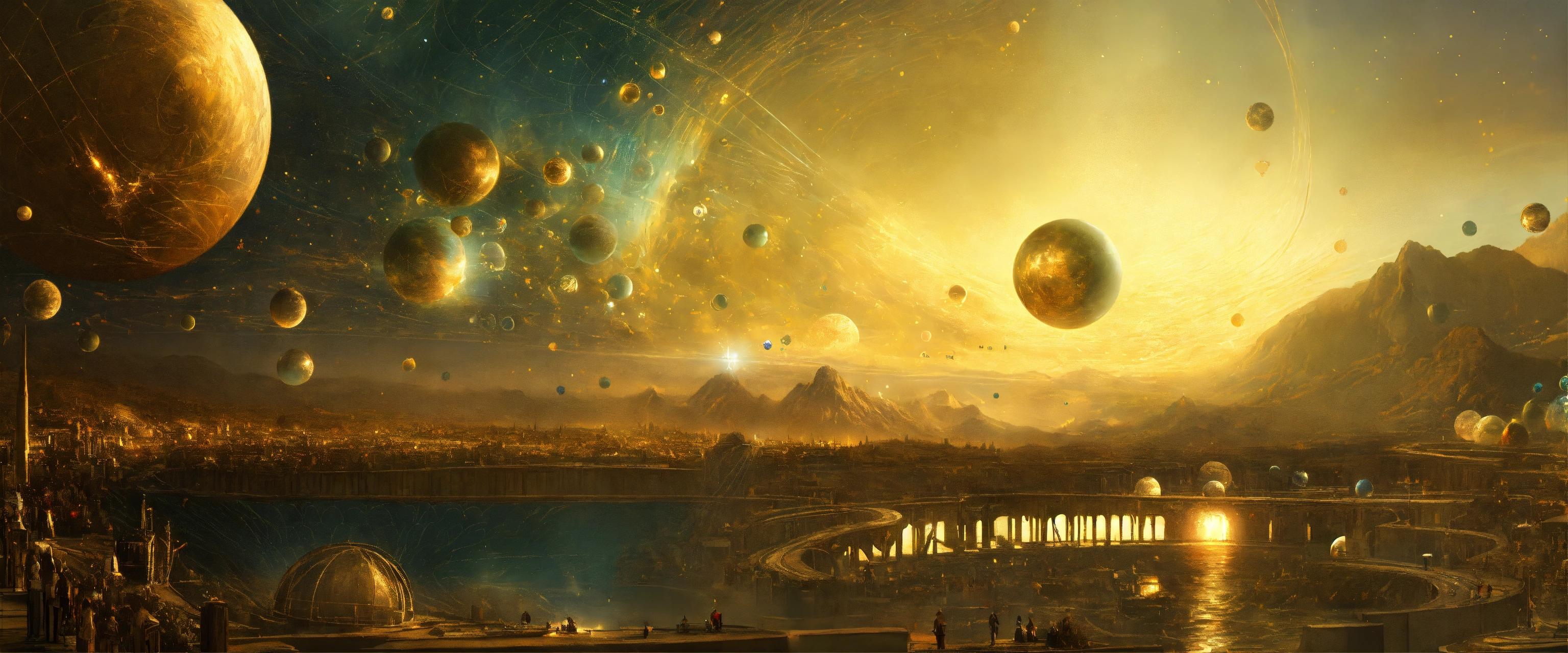 Visualize the possibility of parallel universes in quantum mechanics and aliens, in a digital artwork by leonardo da vinci, 16k resolution.
