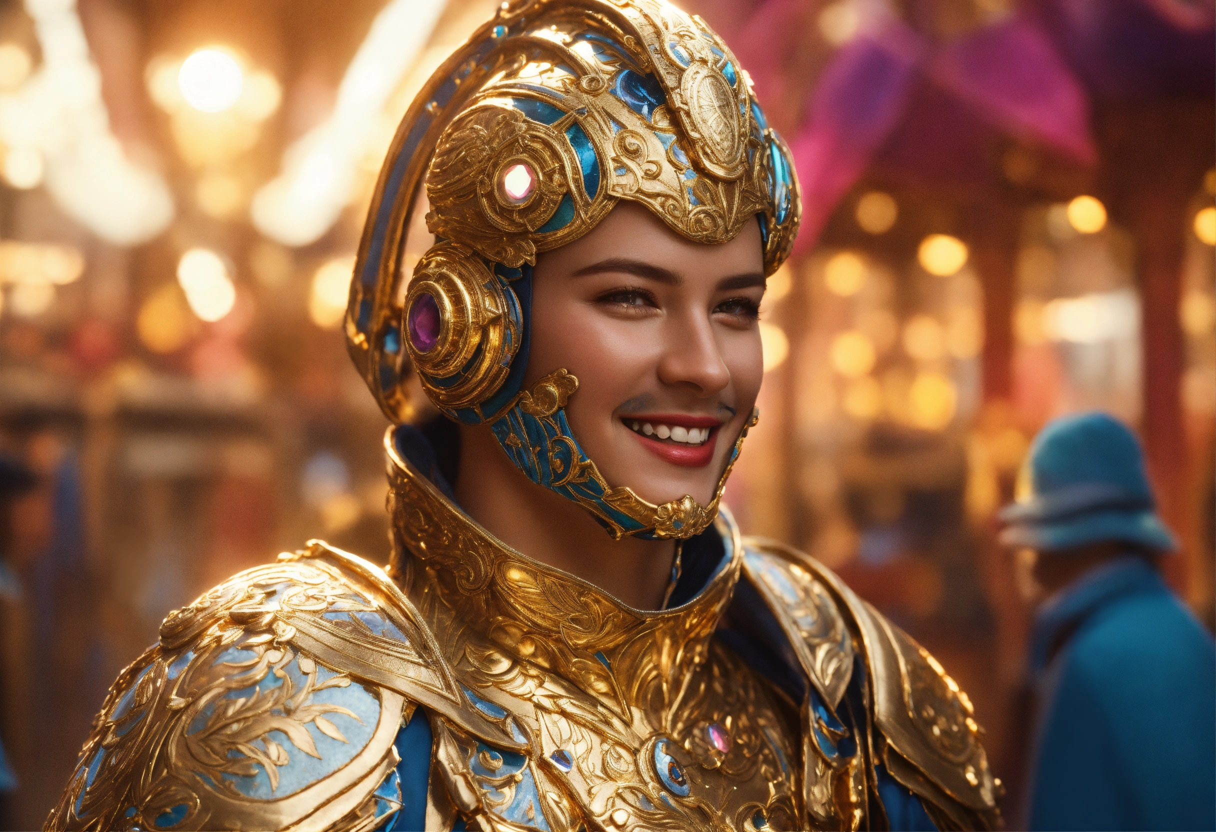 Galactic men, beautiful face, gold, bleu, fuchia, (smiling)+ + galactic colored clothes, (fantastic) + + + realistic, gold, hand with five perfect detailed fingers, smiling mouth, high definition lips, extremely detailed face, ( full portrait)+ + + +, bright and sunny background, very detailed, high contrast, fantastic, high definition 8k, un real engine reflections intricate details intricate scenery hdr elegant complex realistic, photorealistic pastel colorful fantasy, natural lighting sunlight, intricate details intricate scenery octane ultra realistic trending on artstation sharp