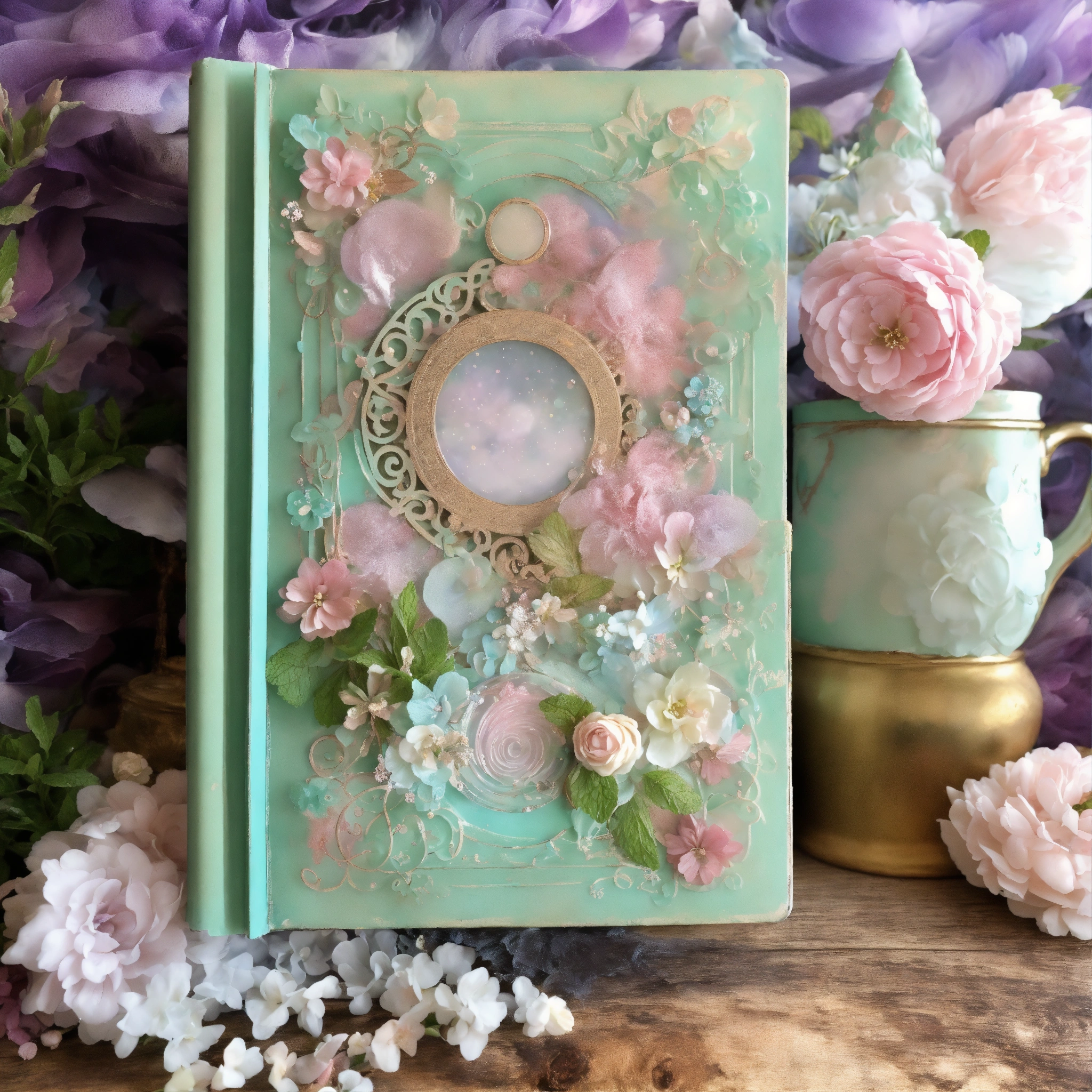 Shabby chic dreamy mist pastel junk journals mint julep swirling magical fairytale abstract art style