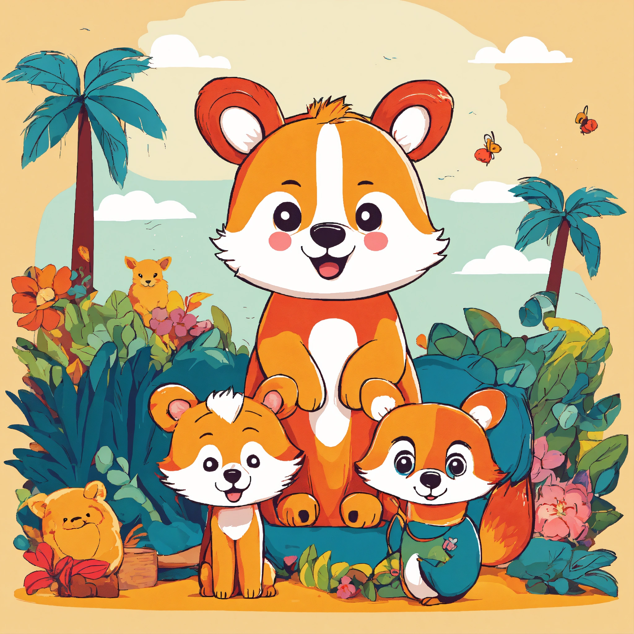 Playful kids animal tshirt design, vector graphic, colorful, adorable, cute, vector illustration, white background