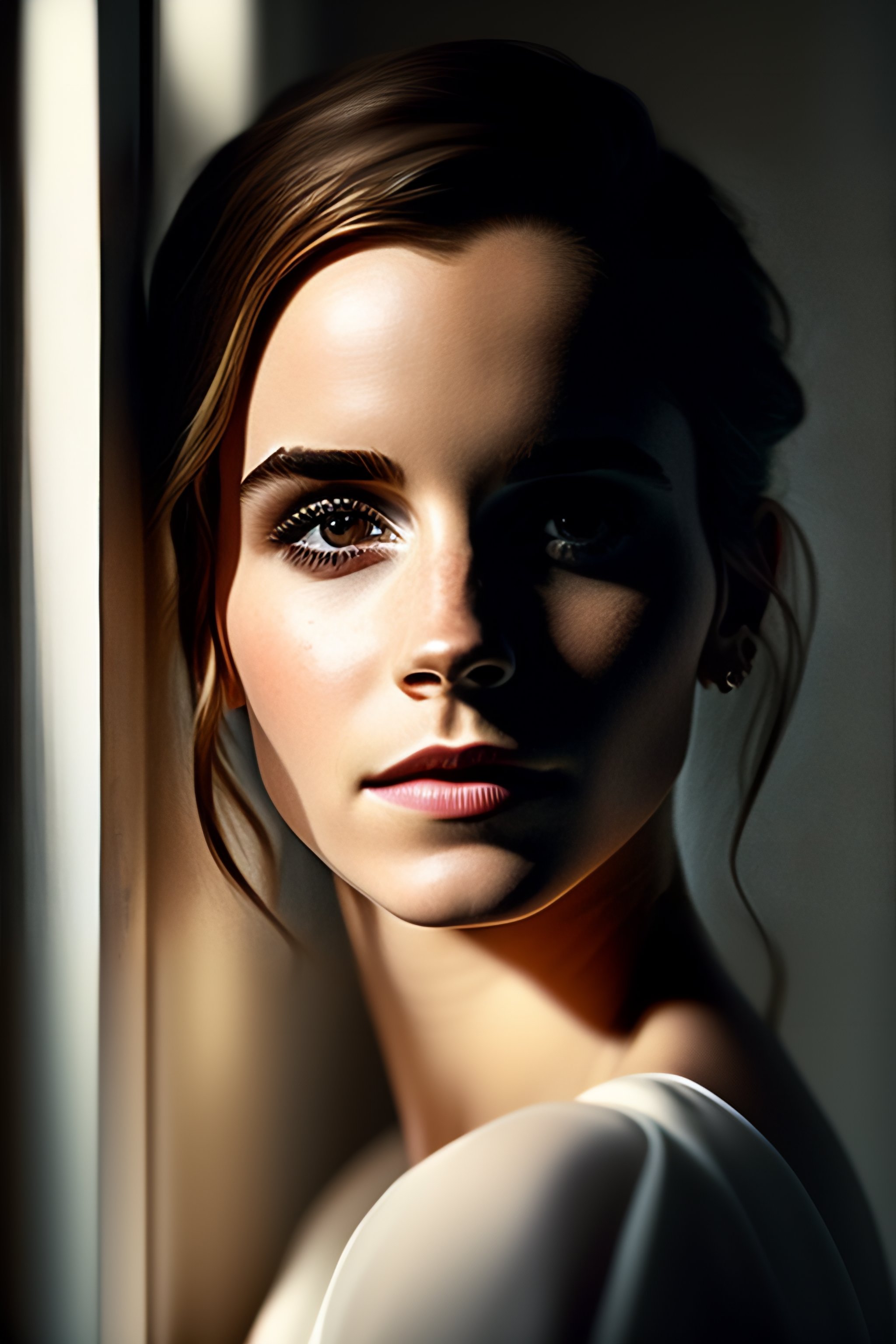 A beautiful close - up shot of emma watson, beautiful soft light falling on her face, studio photography by annie leibovitz
