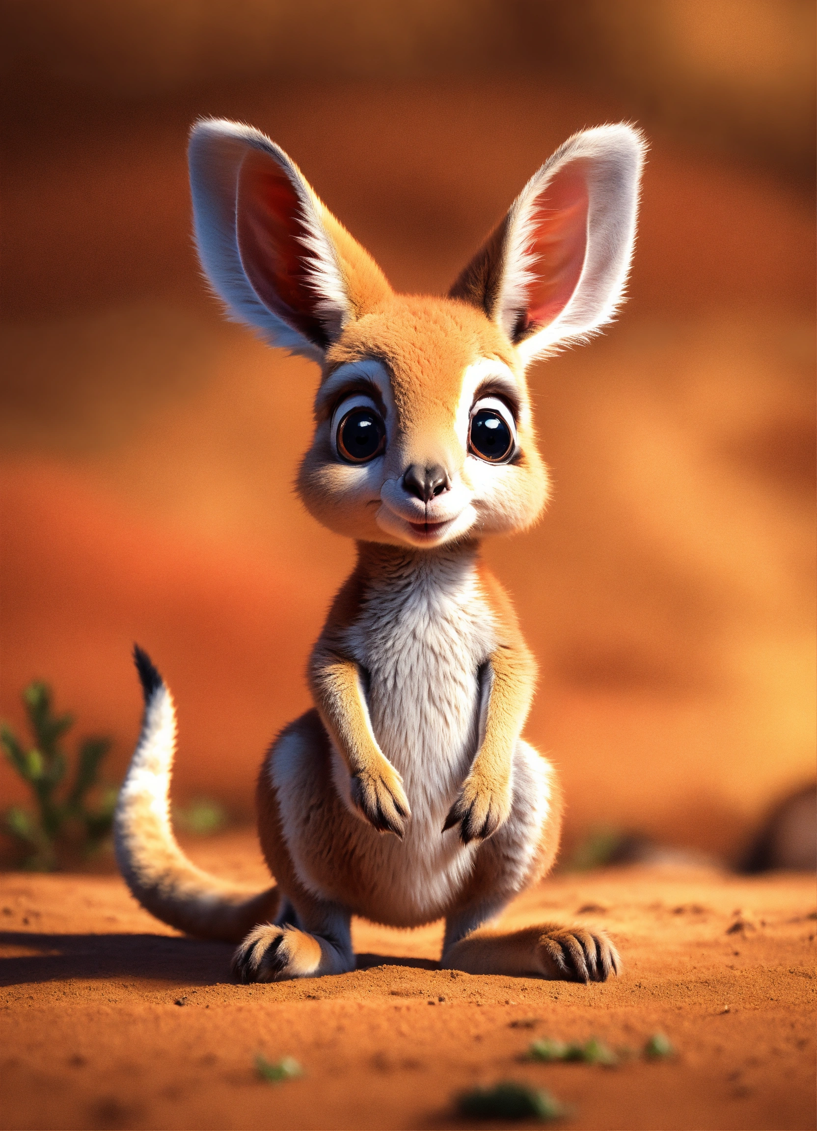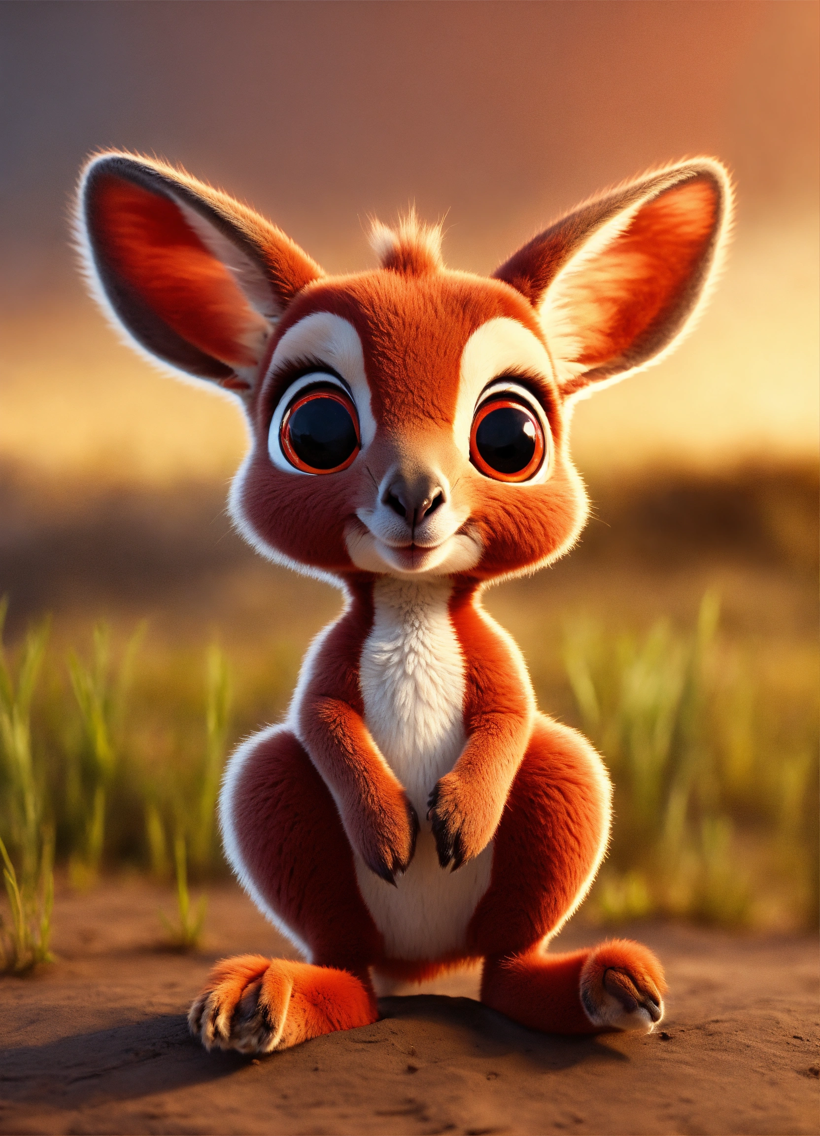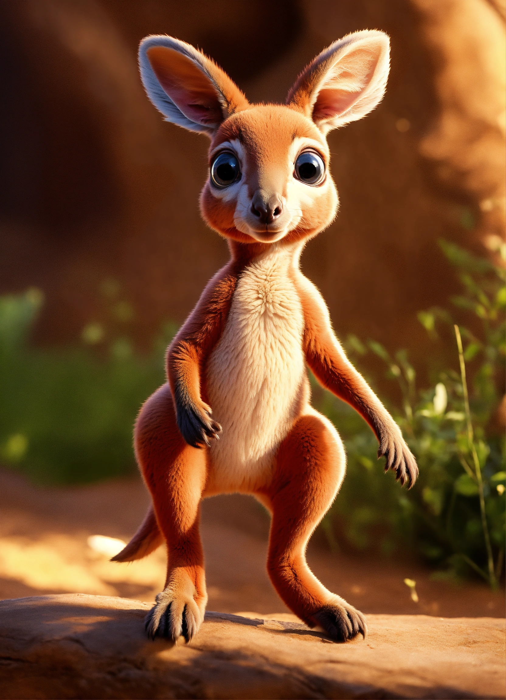 A cute all red baby kangaroo with big eyes