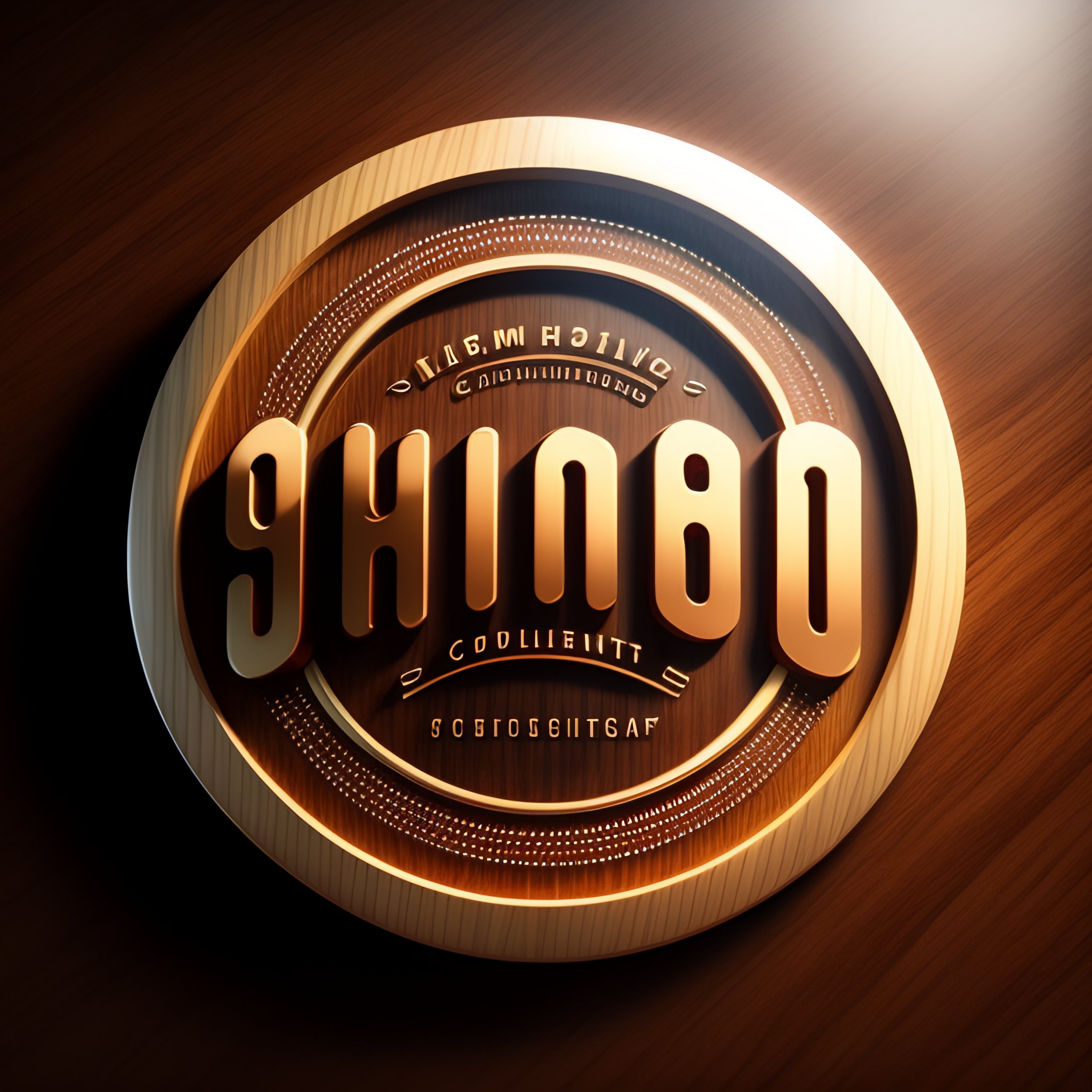 Floating 3d circular logo png, light brown varnished wood texture with wheat embroidery, 4k, rich color, full color, sharp, focused, highly detailed, high definition, soft light
