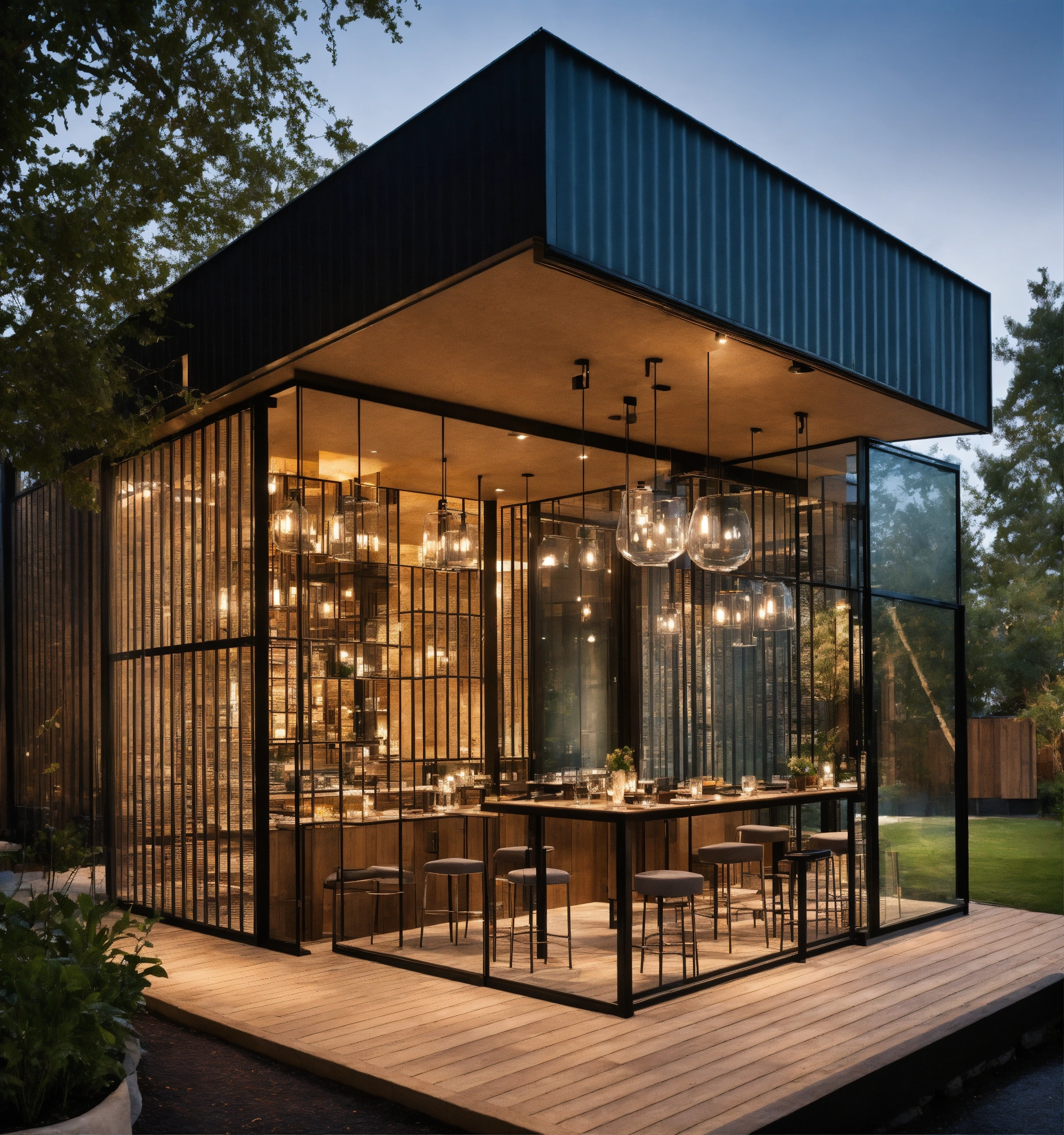Design modern glass bistro in an eco envelopment