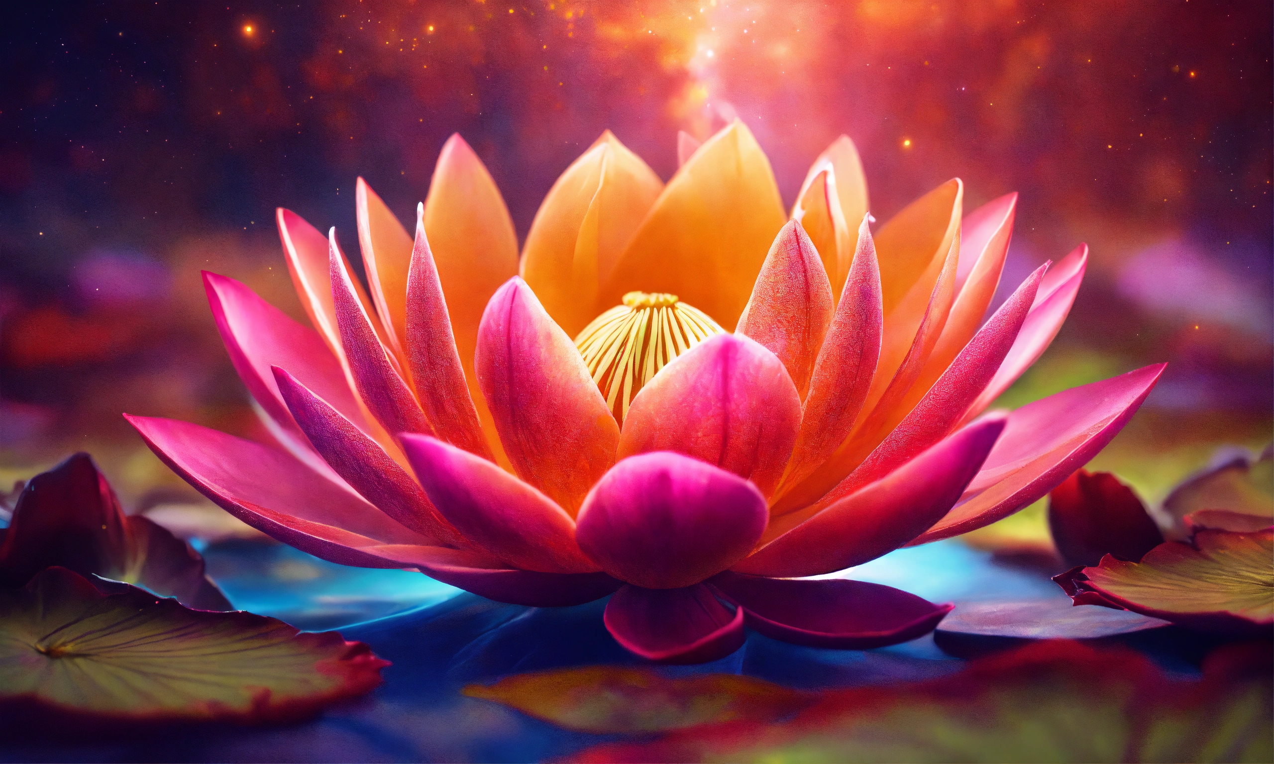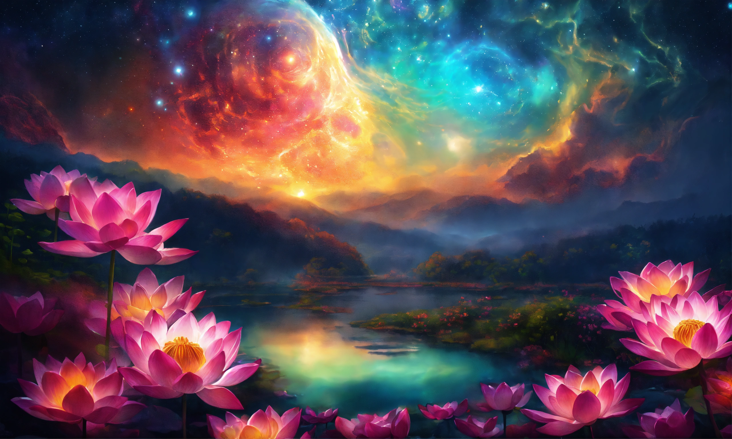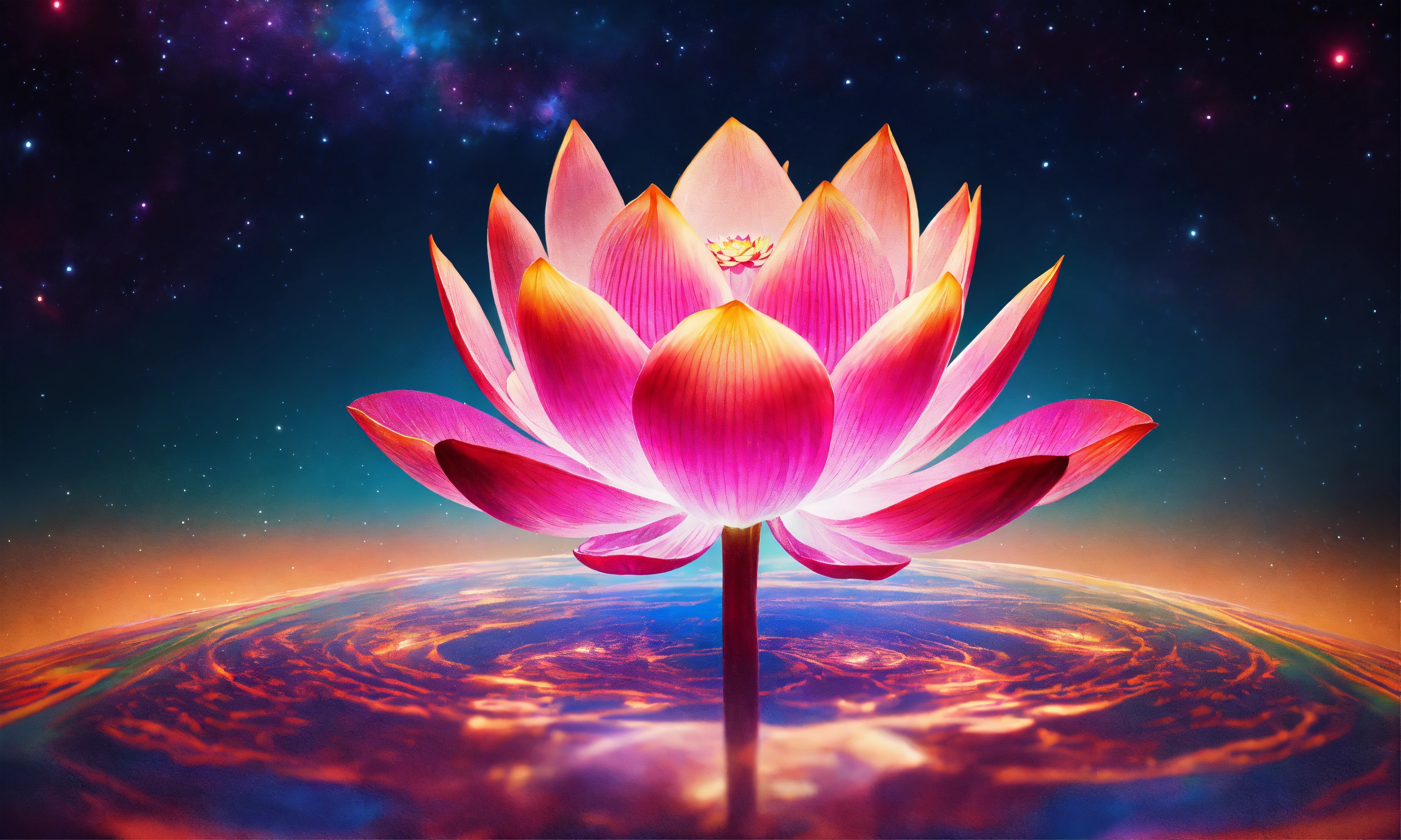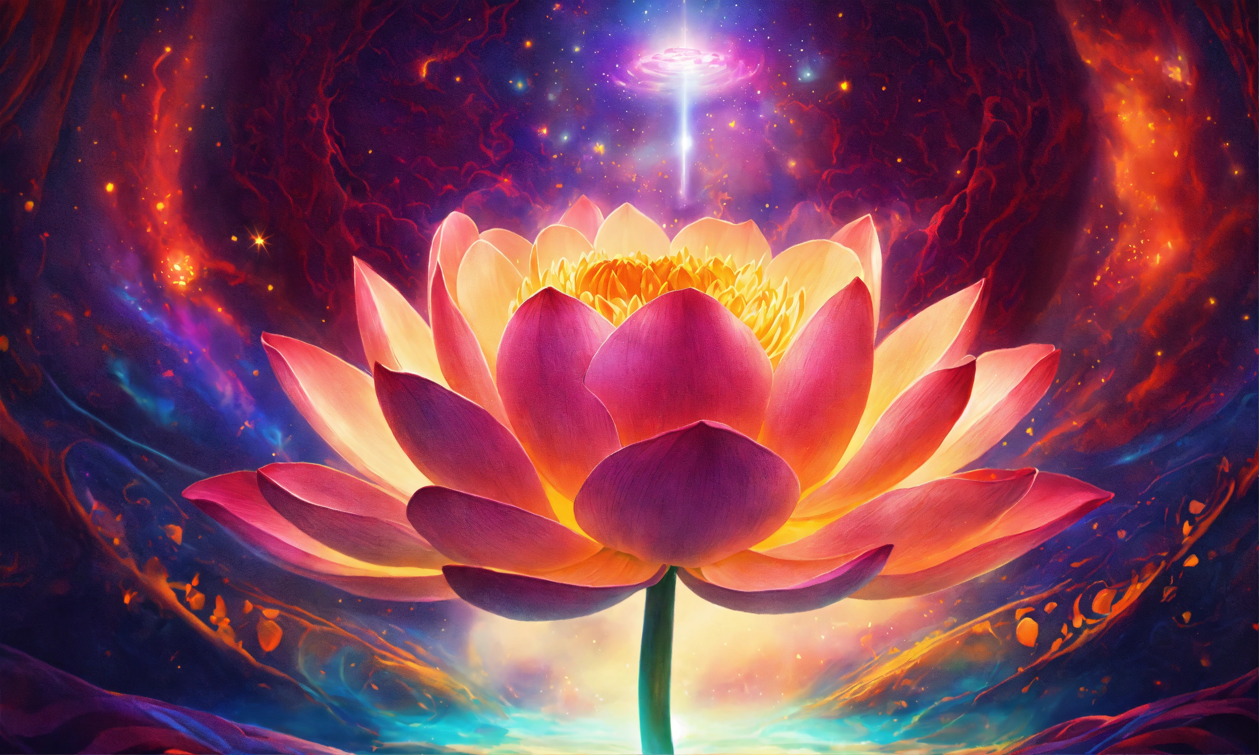 Her brain is exuding magical light of vibrant colors, a vibrant lotus flower inside brain, a mesmerizing universe